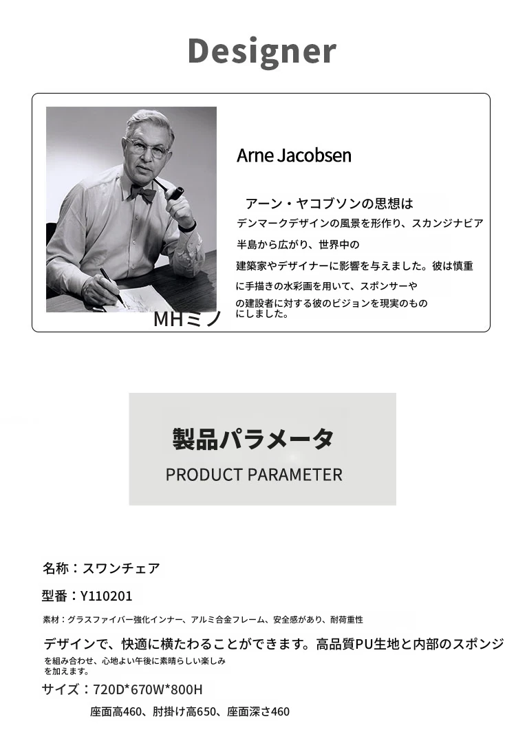 北欧デザインのクリエイティブな軽奢単人用ソファチェア・スワンチェア。おしゃれで快適な布製の椅子、会議や接客にも最適な一品!