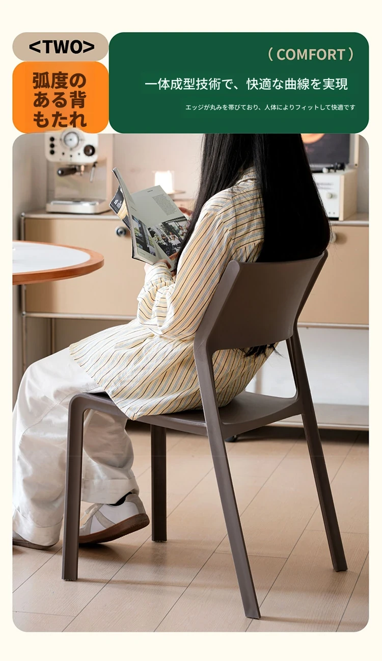 北欧風のドーパミンチェア|小型住宅に最適なプラスチック製・厚背もたれ|シンプルでモダンなデザイン|スタッキング可能なリラックスチェア!