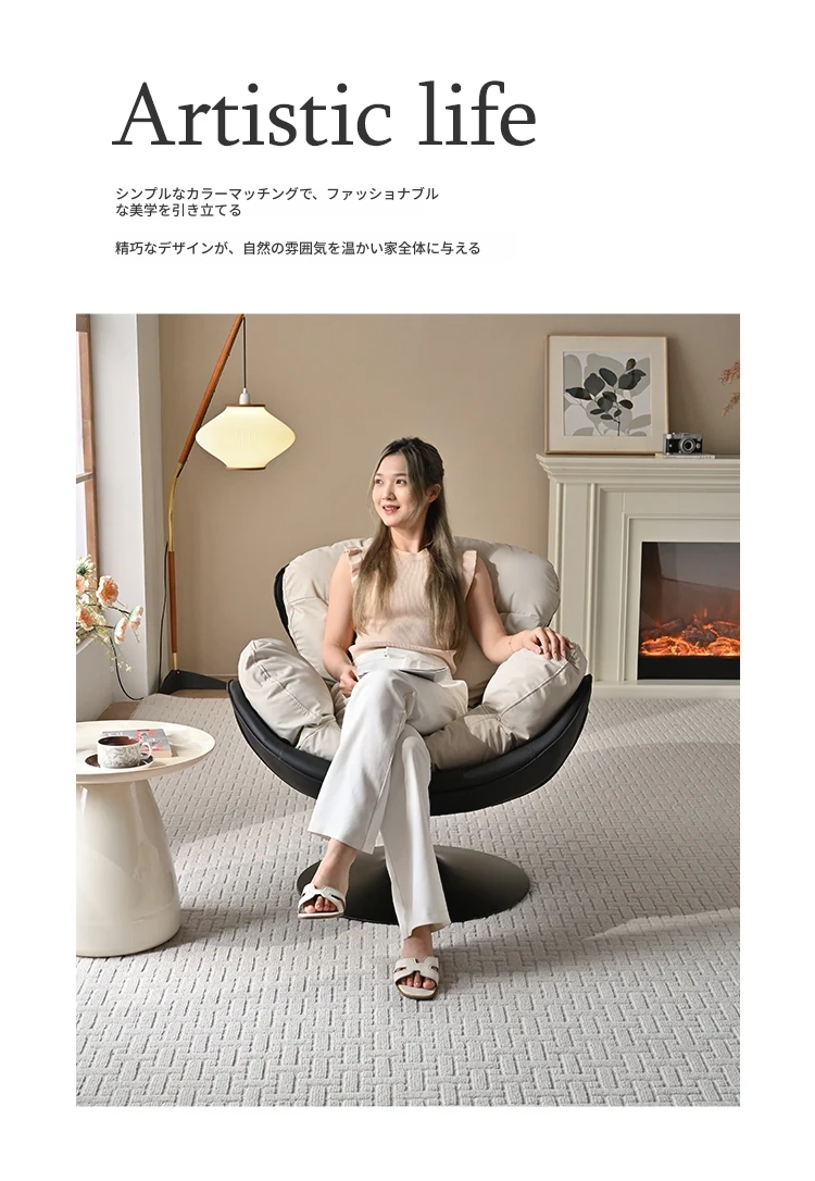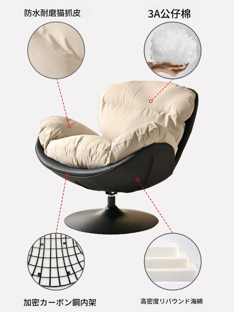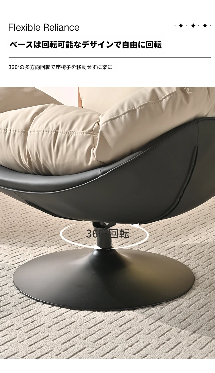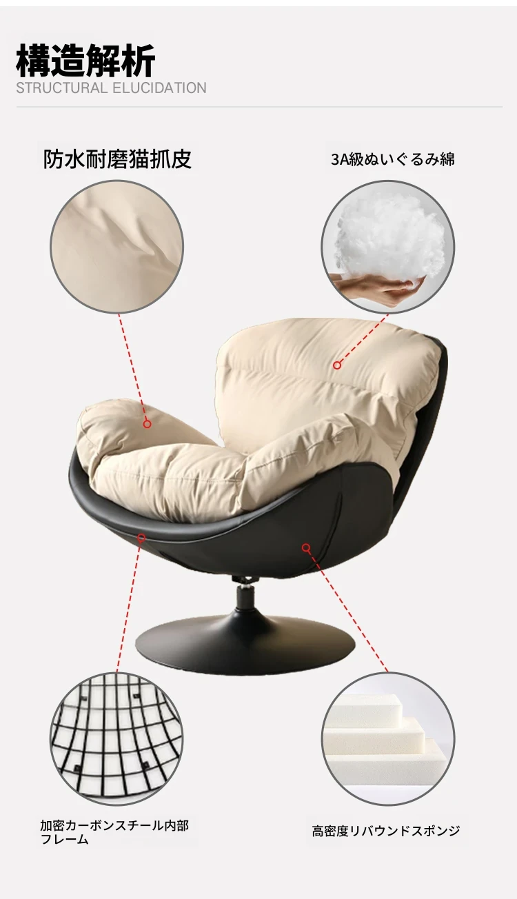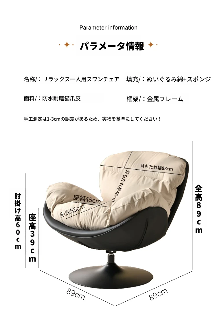 北欧風シンプルデザインの一人掛けソファチェア|モダンでおしゃれなリビングやバルコニーに最適!快適な卵型リクライニングスワンチェアで、リラックスした時間をお楽しみください。