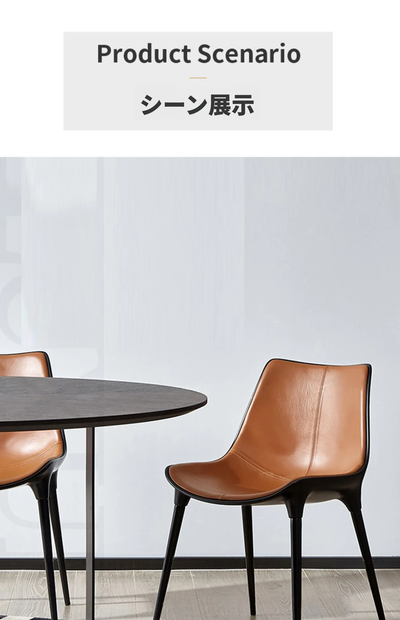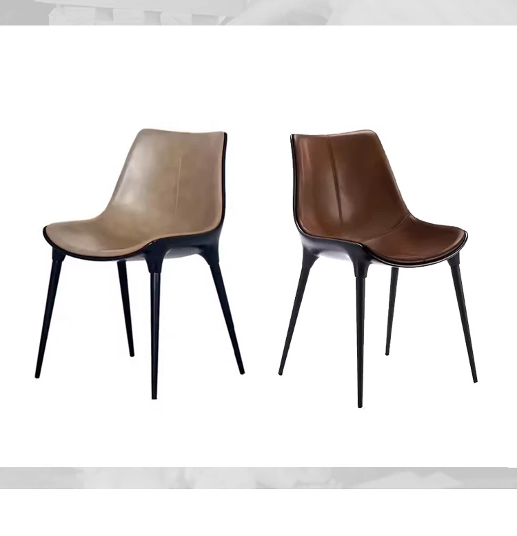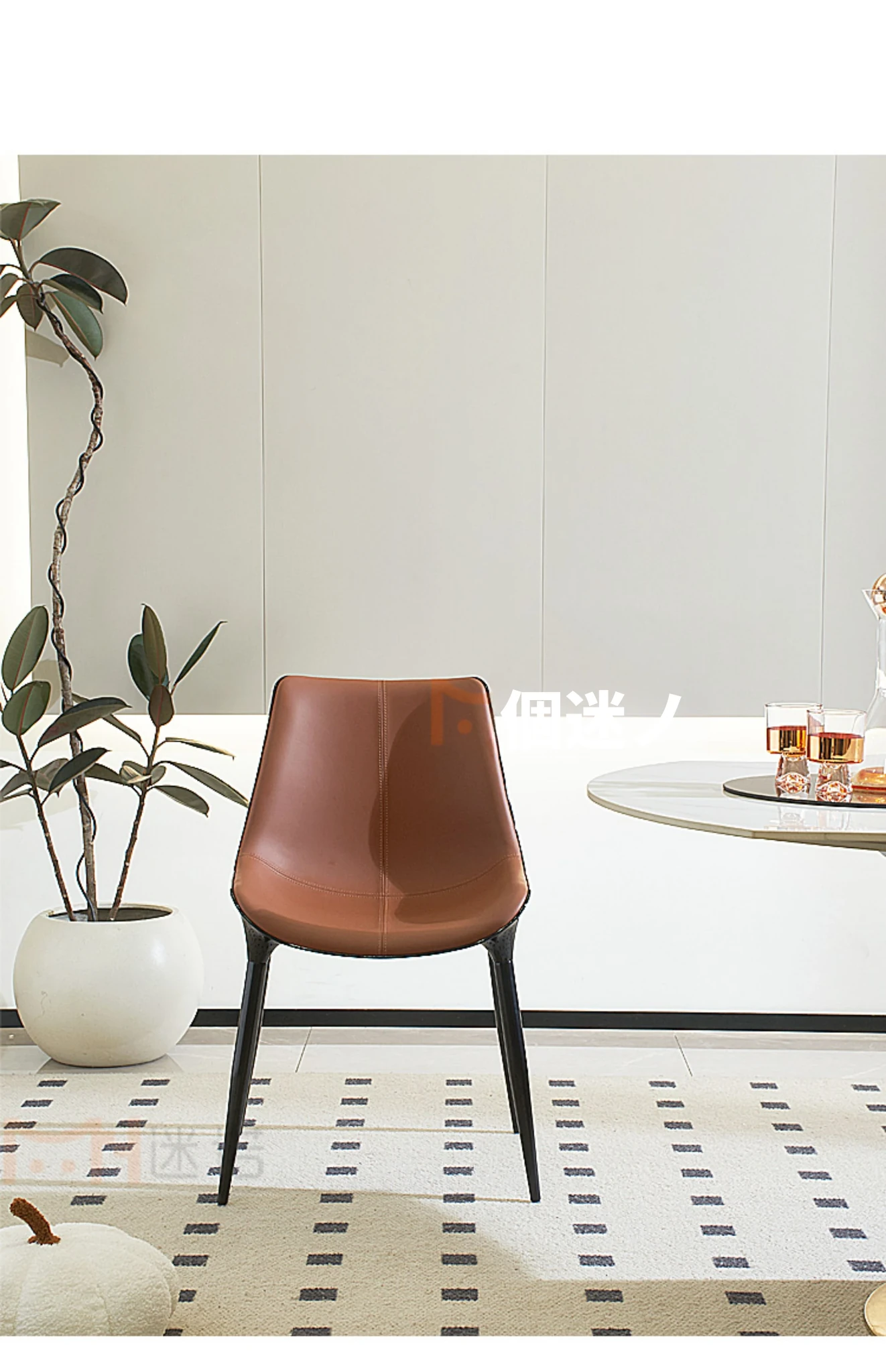 北欧風のラグジュアリー食卓チェア|デザイナーズ家用|レストランやカフェに最適|本革&メタル製|快適な座り心地と高級感溢れる背もたれ付き