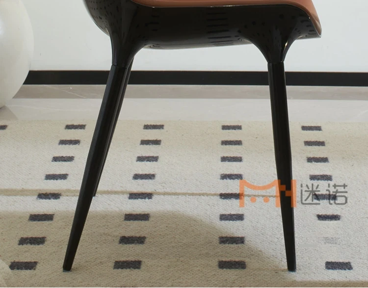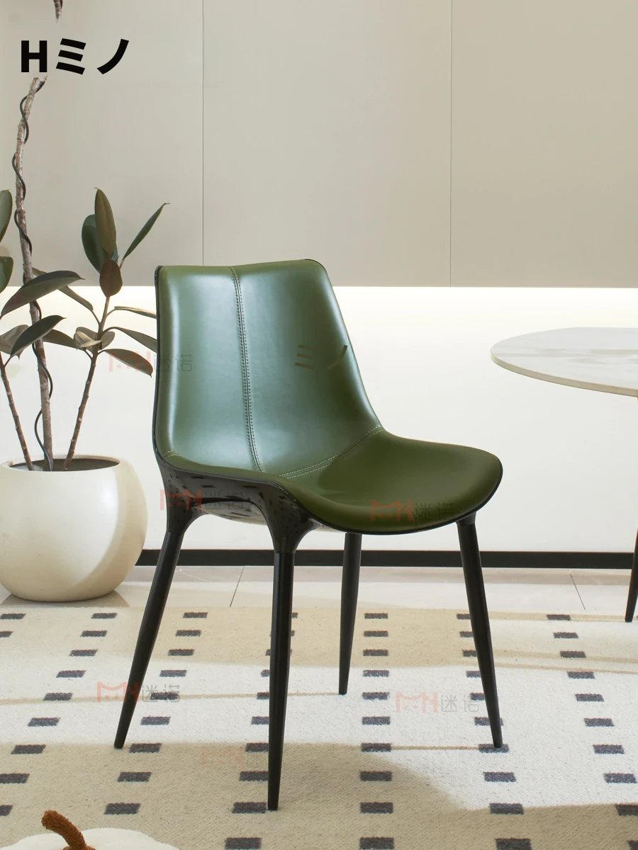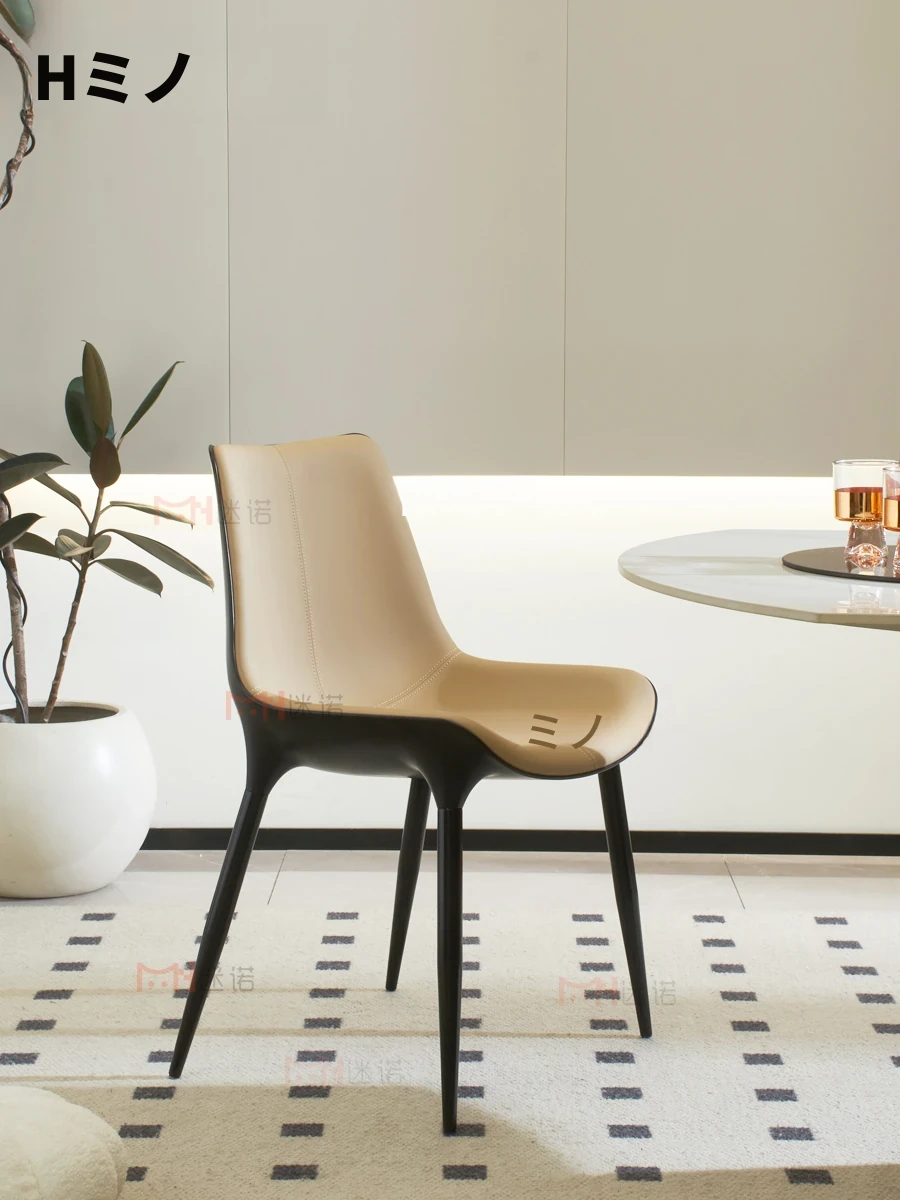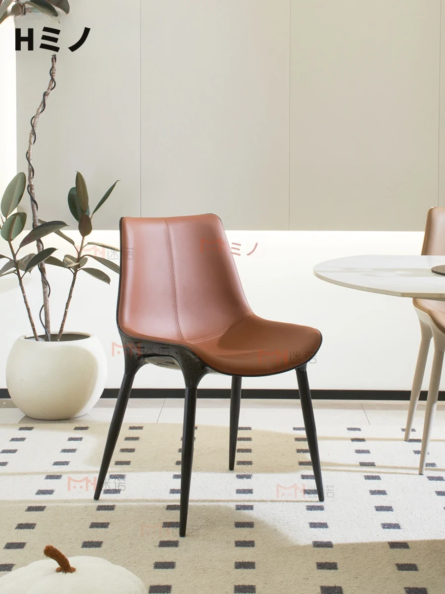 北欧風のラグジュアリー食卓チェア|デザイナーズ家用|レストランやカフェに最適|本革&メタル製|快適な座り心地と高級感溢れる背もたれ付き