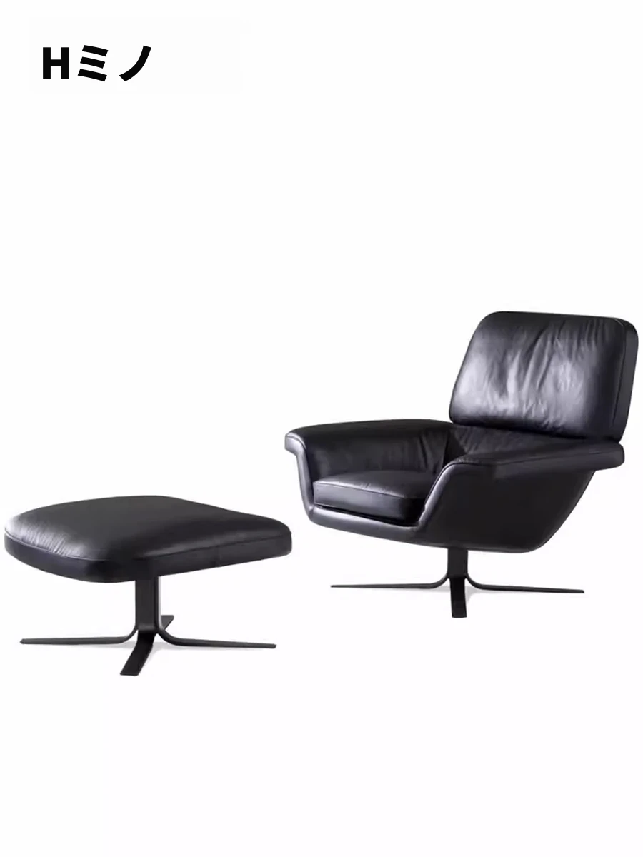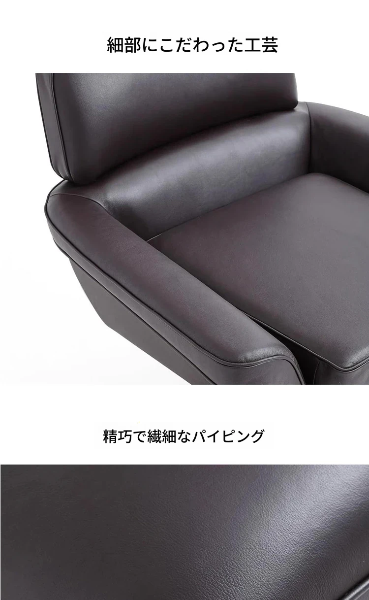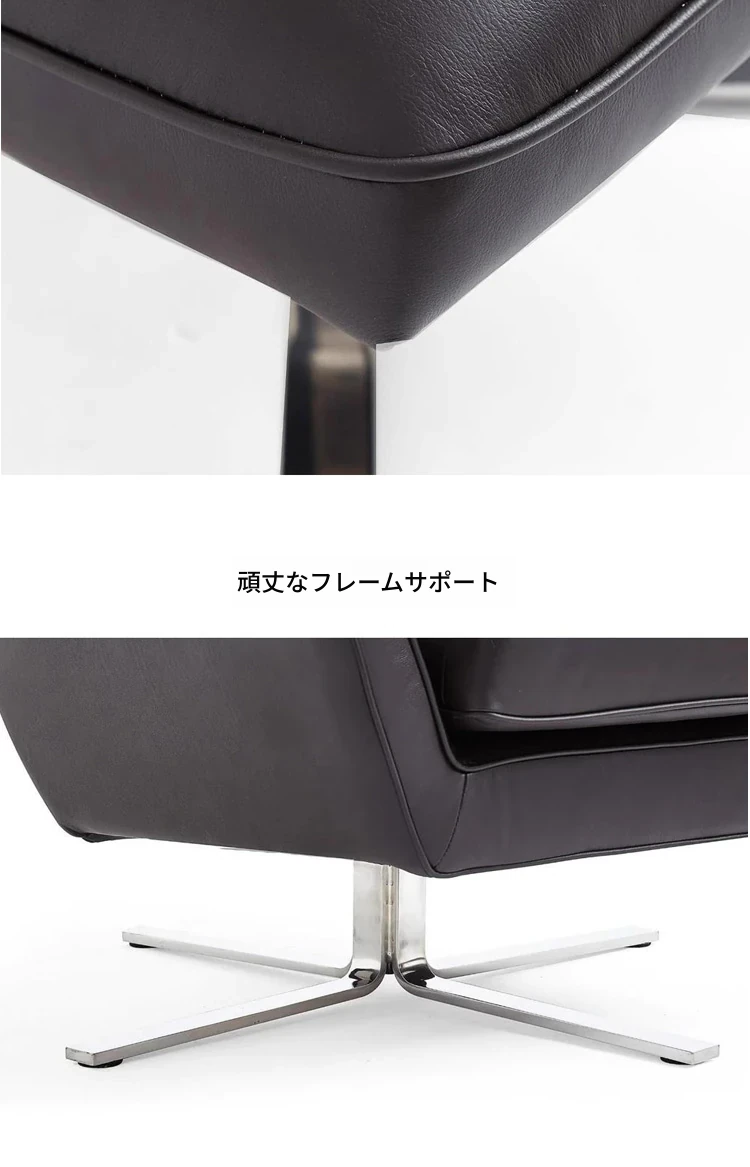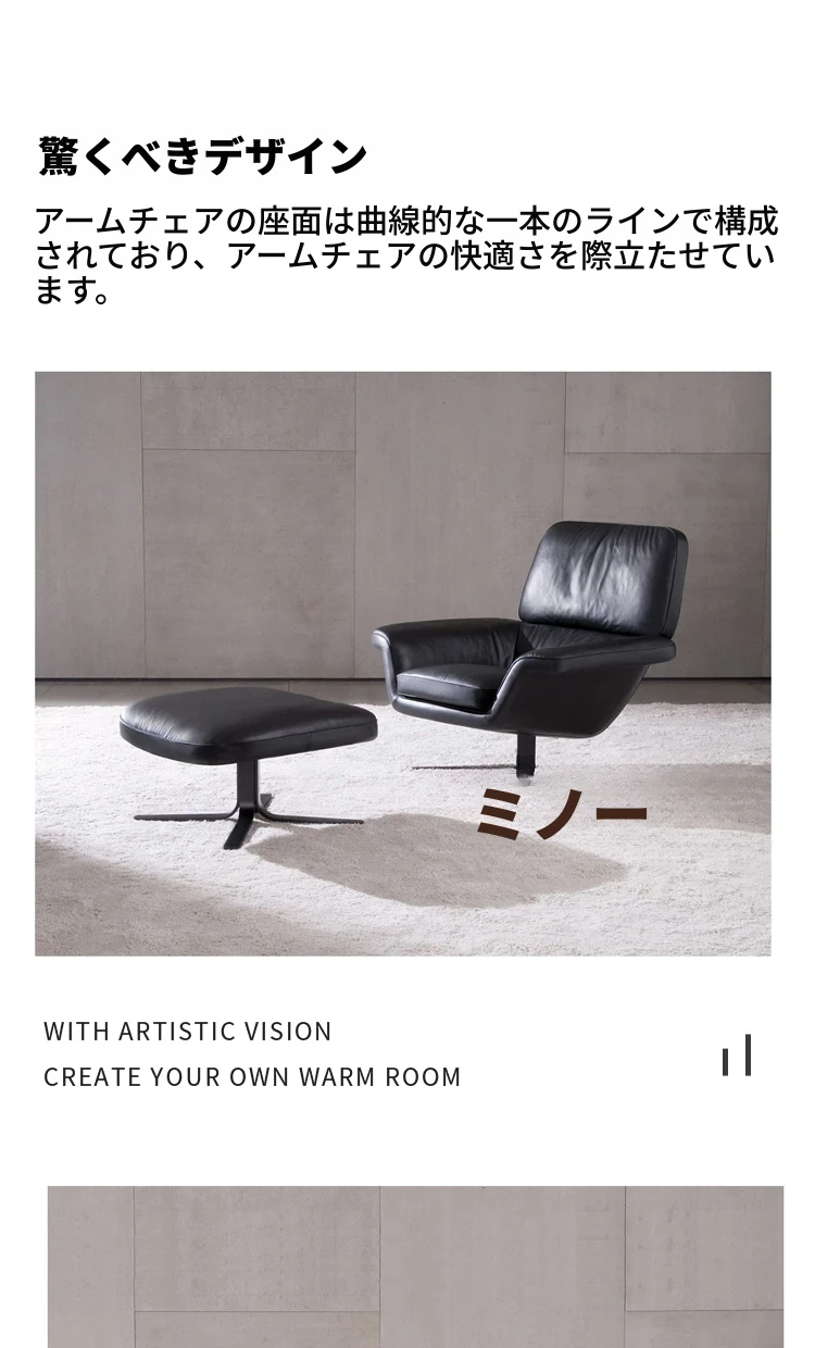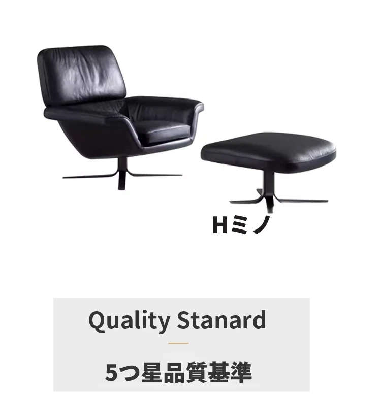 黒の一人掛け椅子+オットマン(輸入のトップグレイン牛革)