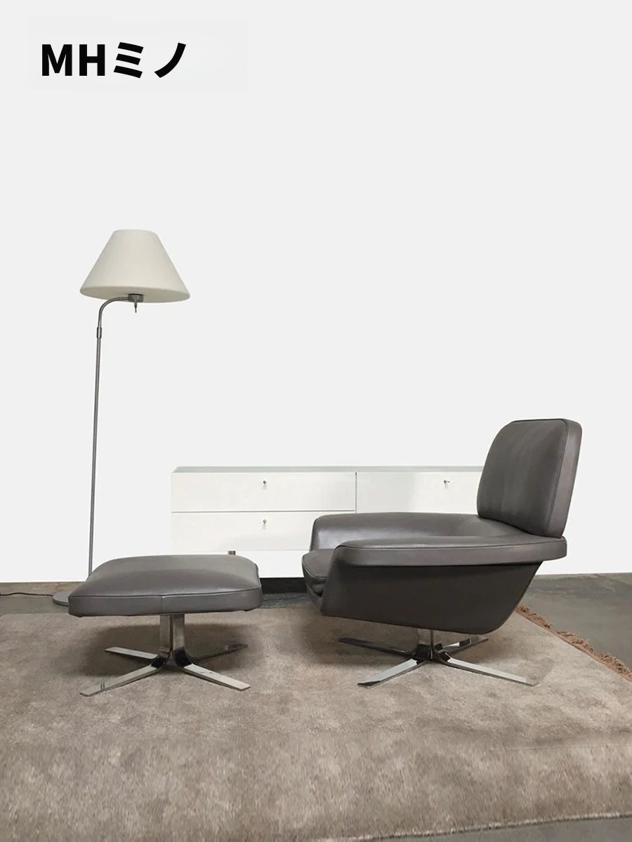 ライトベージュの一人掛け椅子+オットマン(輸入のトップグレイン牛革)