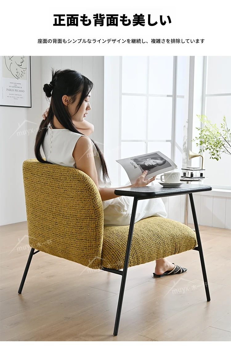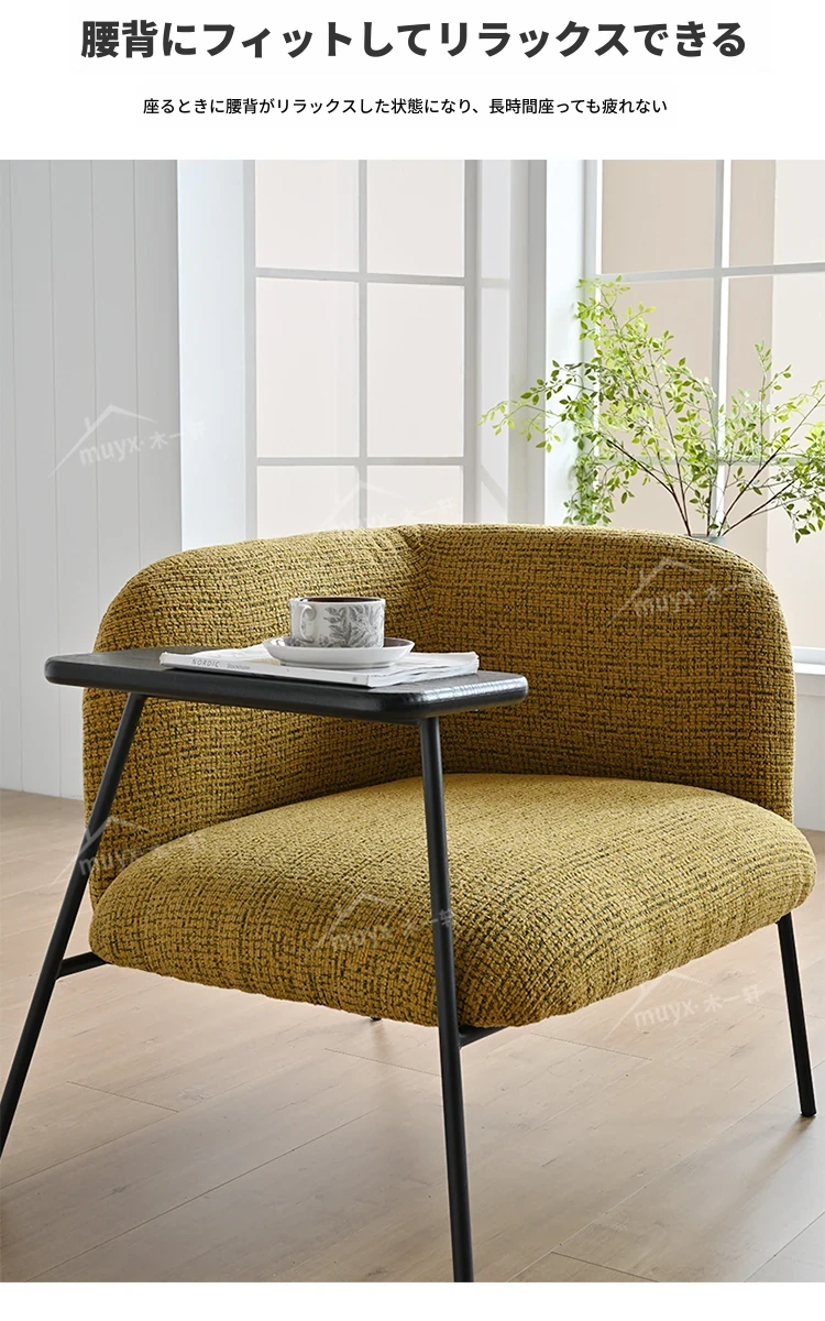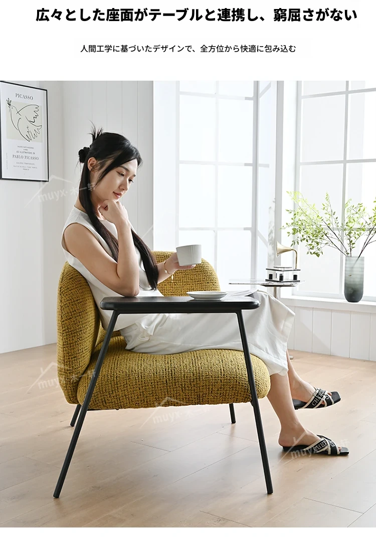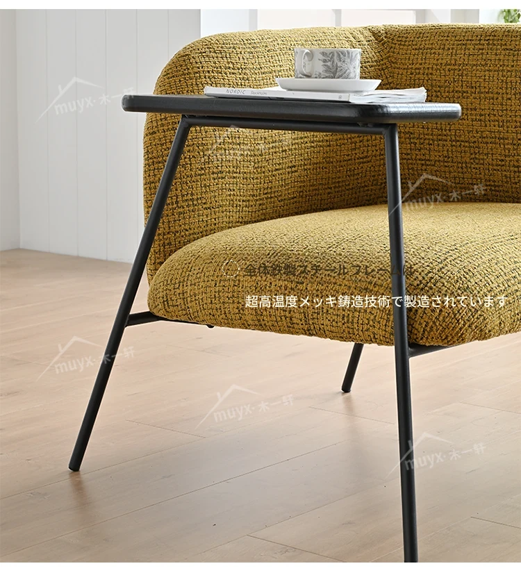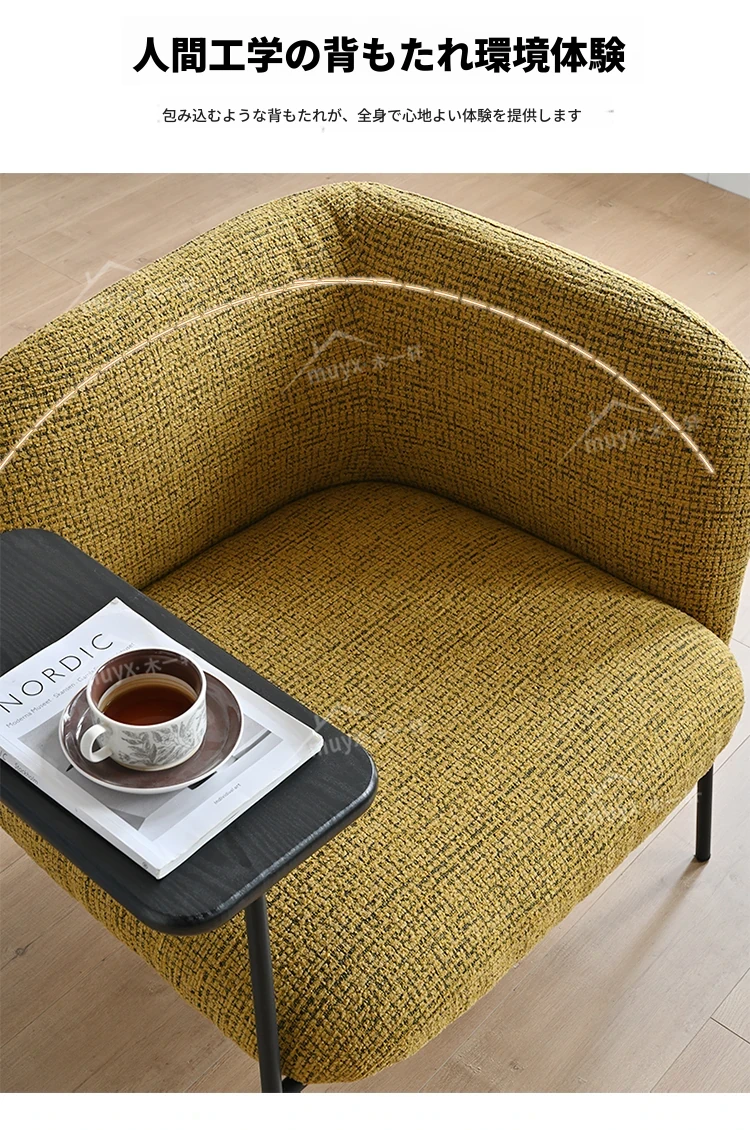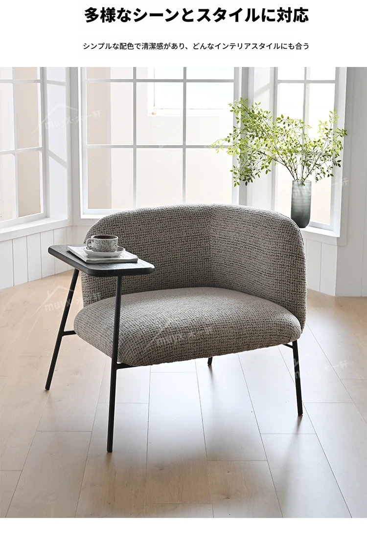 北欧風のリビング&バルコニー用デザイナーズソファ!シンプルでモダンな休息用ファブリック一人掛けソファ。おしゃれなティーテーブル付きで、リラックスしたひとときを演出します。