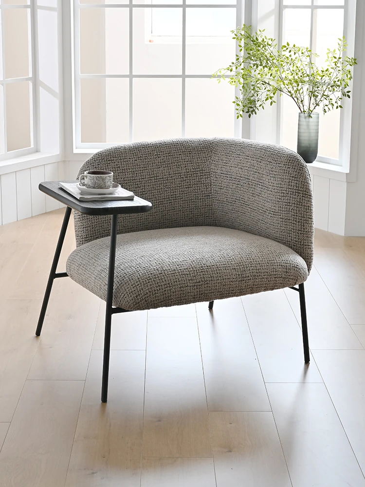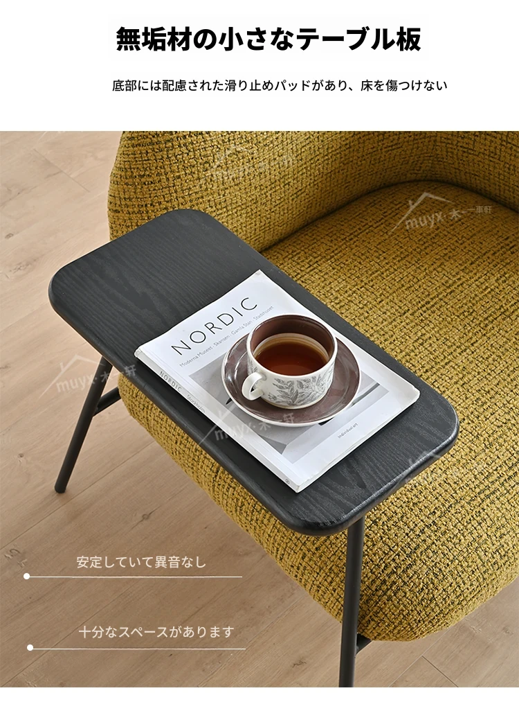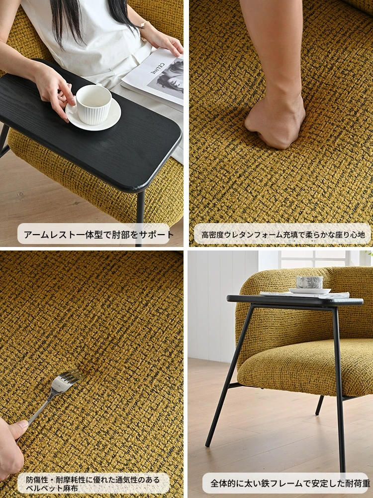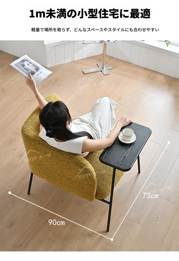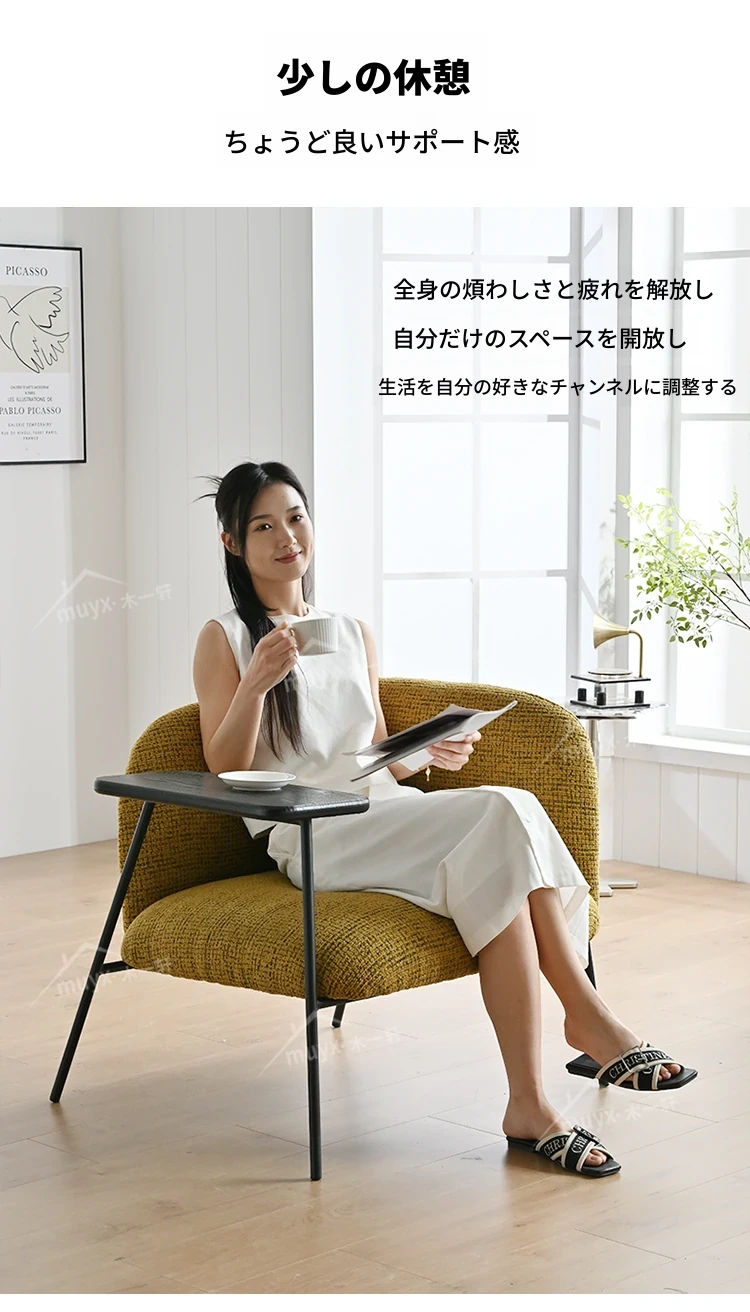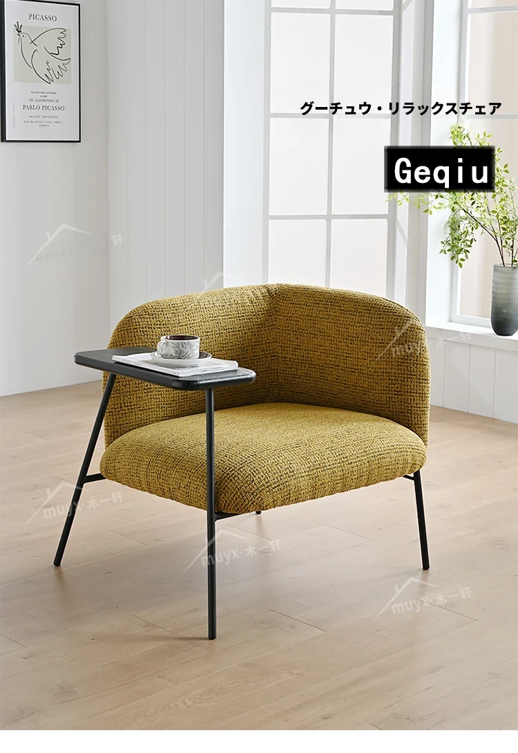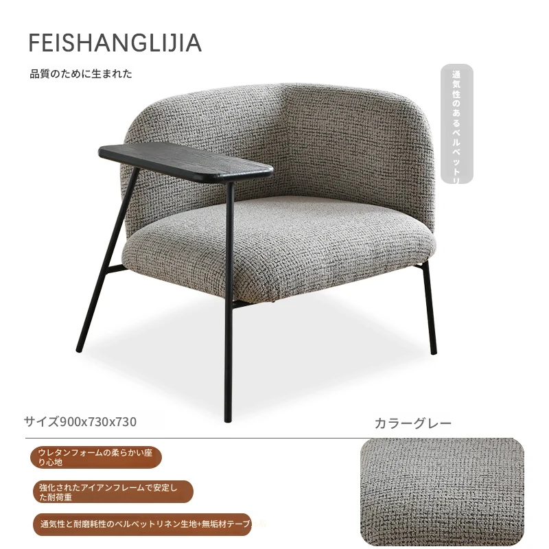 北欧風のリビング&バルコニー用デザイナーズソファ!シンプルでモダンな休息用ファブリック一人掛けソファ。おしゃれなティーテーブル付きで、リラックスしたひとときを演出します。