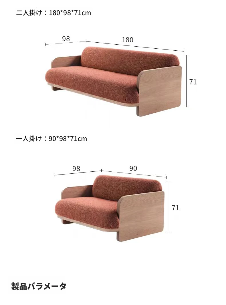 北欧風シンプルデザインの無垢材3人掛けソファセット|スタイリッシュなリビングに最適!民宿や会所にもぴったりな侘寂スタイルの家具で、心地よい空間を演出します。