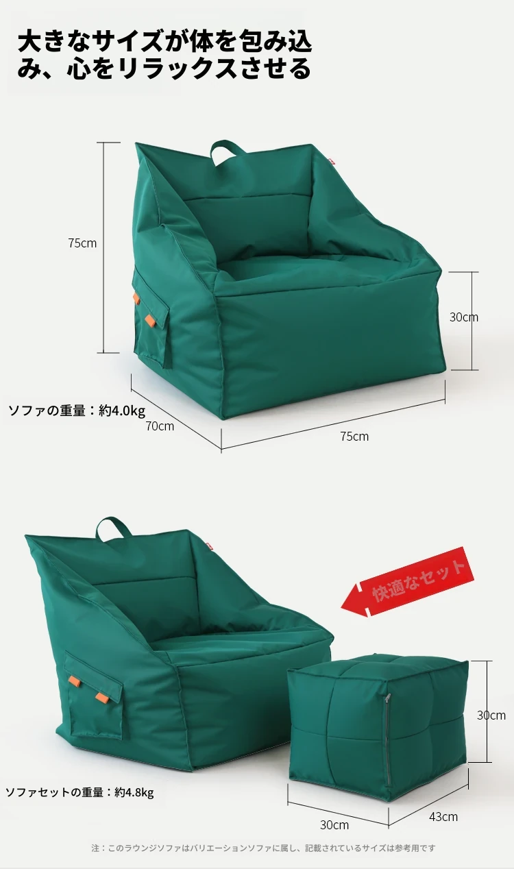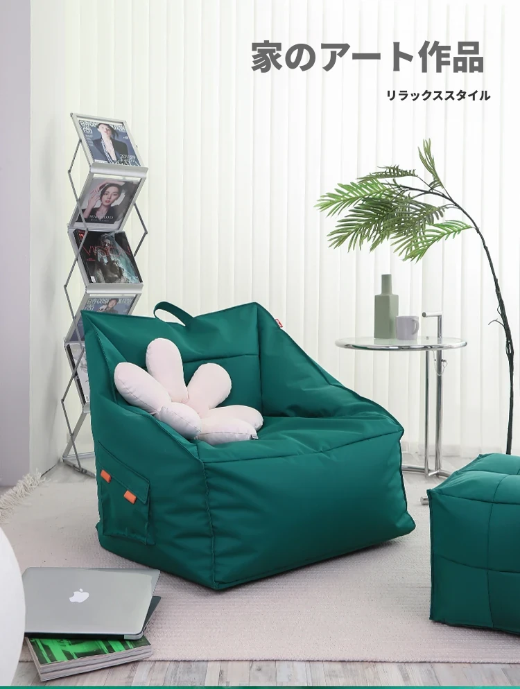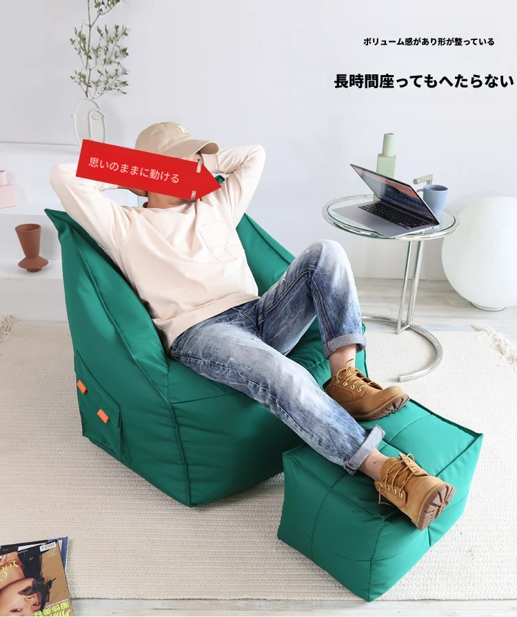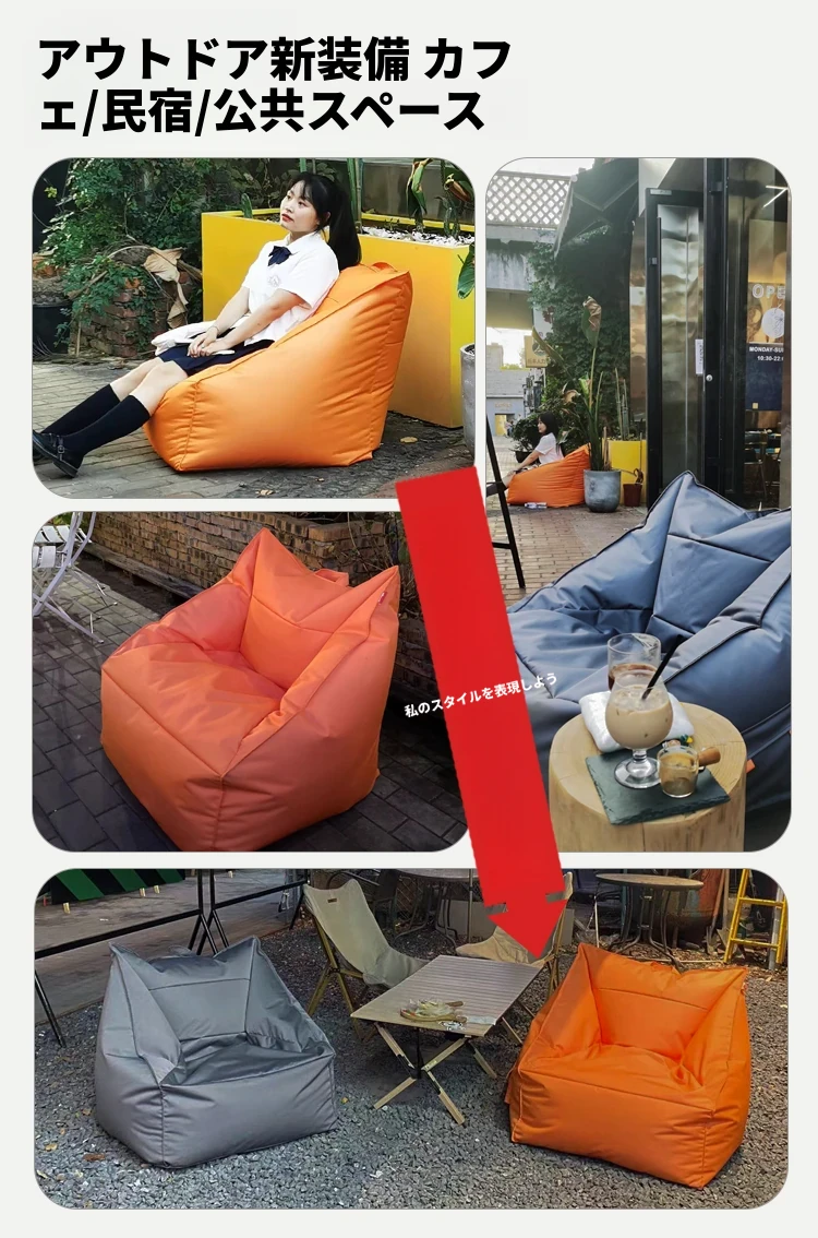 ohwo豆袋ソファー - バルコニーに最適なリラックスチェア!寝転びもできる一人用、耐水・耐塵・耐摩耗の新しいカバー付き。快適さとスタイルを兼ね備えた、あなたのくつろぎ空間にぴったり!