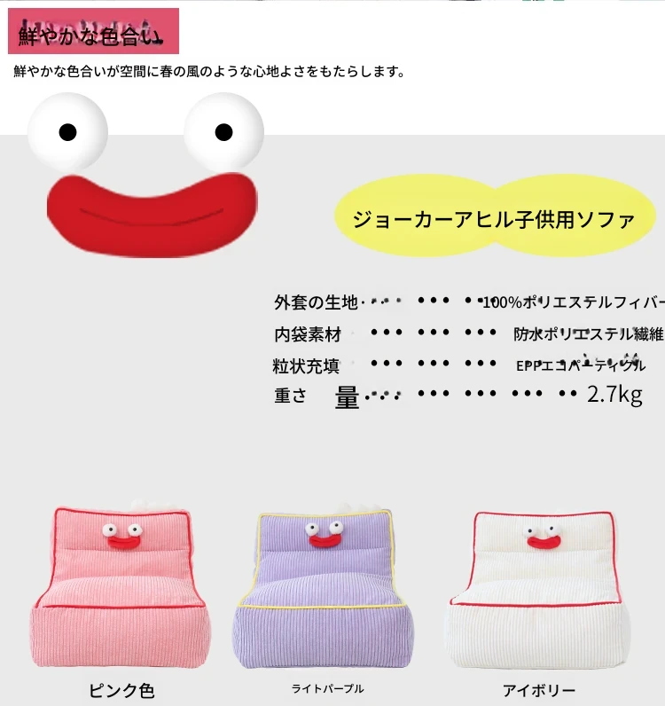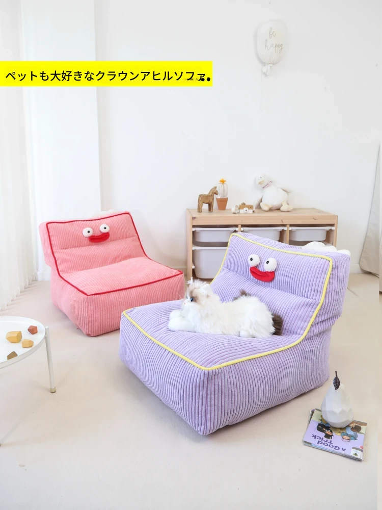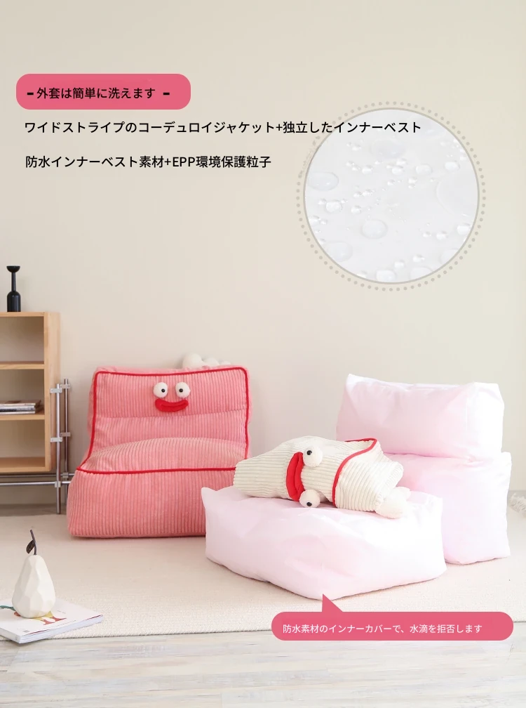 ohwoカートゥーン表情の怠け者ソファ、豆袋ライティングチェア!小型住宅に最適な一人掛け椅子。寝室やリビングにぴったりのクリエイティブでリラックスできるソファ。あなたの空間に楽しさをプラス!
