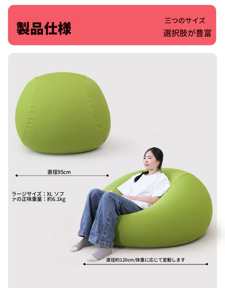 ohwoエラスティックマジックボール!リラックスできる一人用ソファ、豆袋デザインで座っても寝ても快適。狭いスペースにもぴったりなタタミスタイルのラクラクソファチェア!