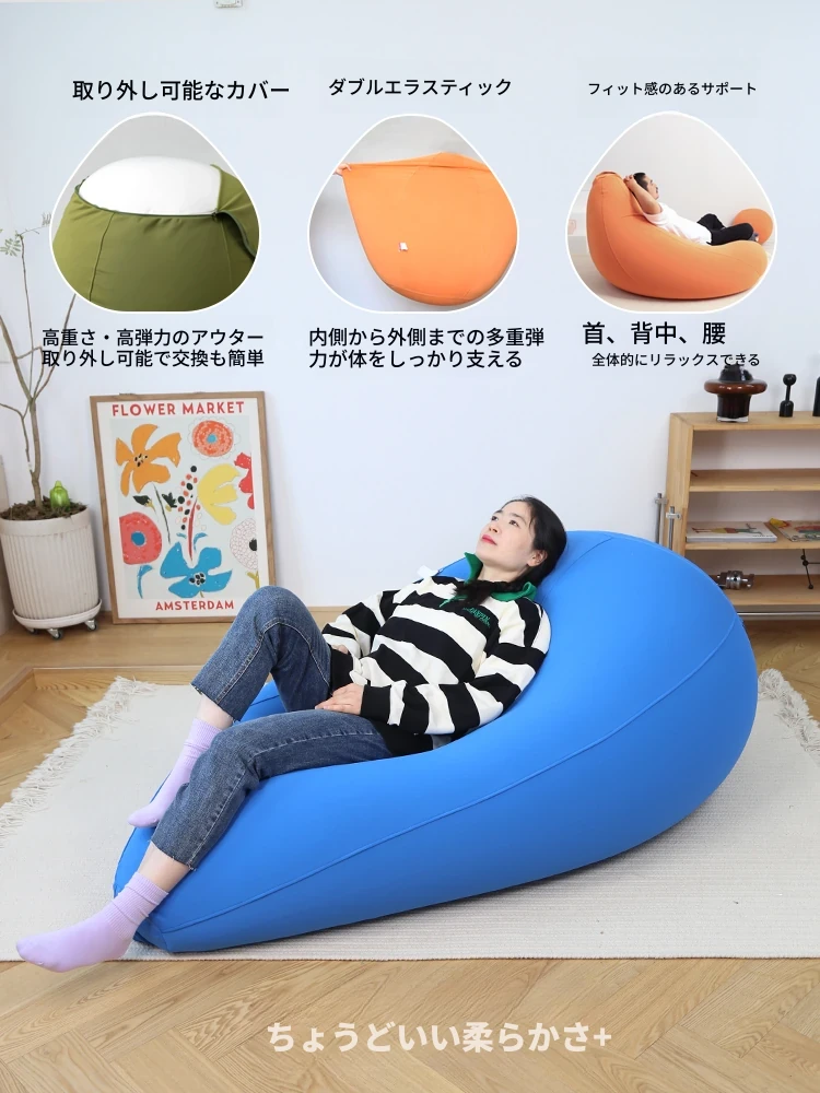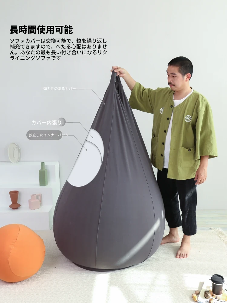 ohwoラウンジソファ特大サイズ!便利なビーンバッグ、民宿や一人暮らしに最適。背もたれ付きで快適、さらにカバーは洗濯可能!日式畳スタイルでリラックス空間を演出。
