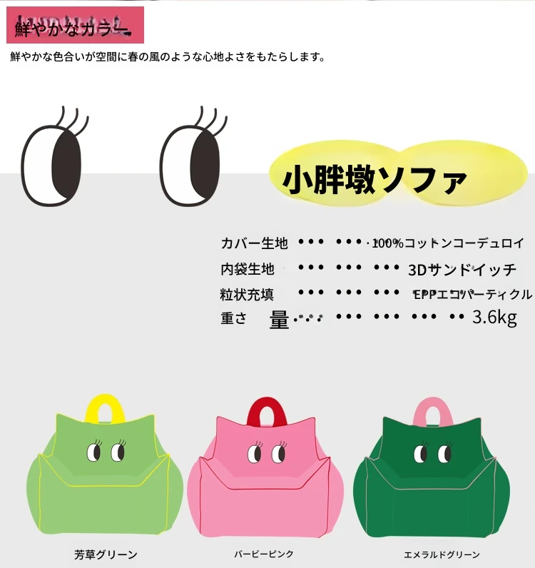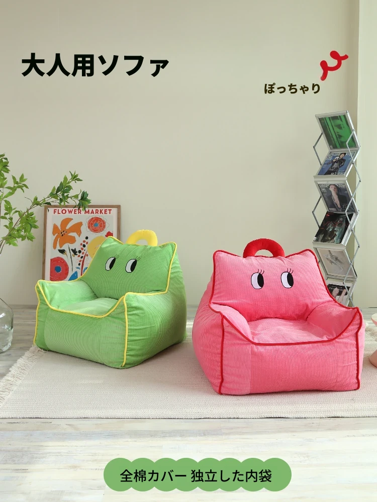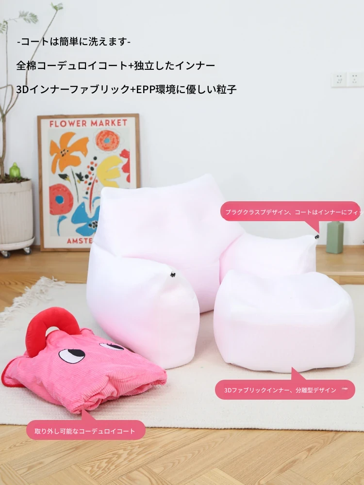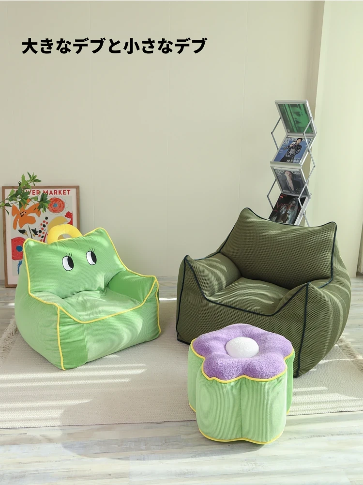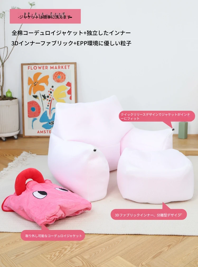 ohwo子供用リラックス豆袋ソファー!可愛いキャラクターがデザインされたクリエイティブな一人掛けソファ。リビングにぴったりで、洗濯可能なカバー付きで清潔さもバッチリ!お子様のくつろぎタイムを楽しく演出します。