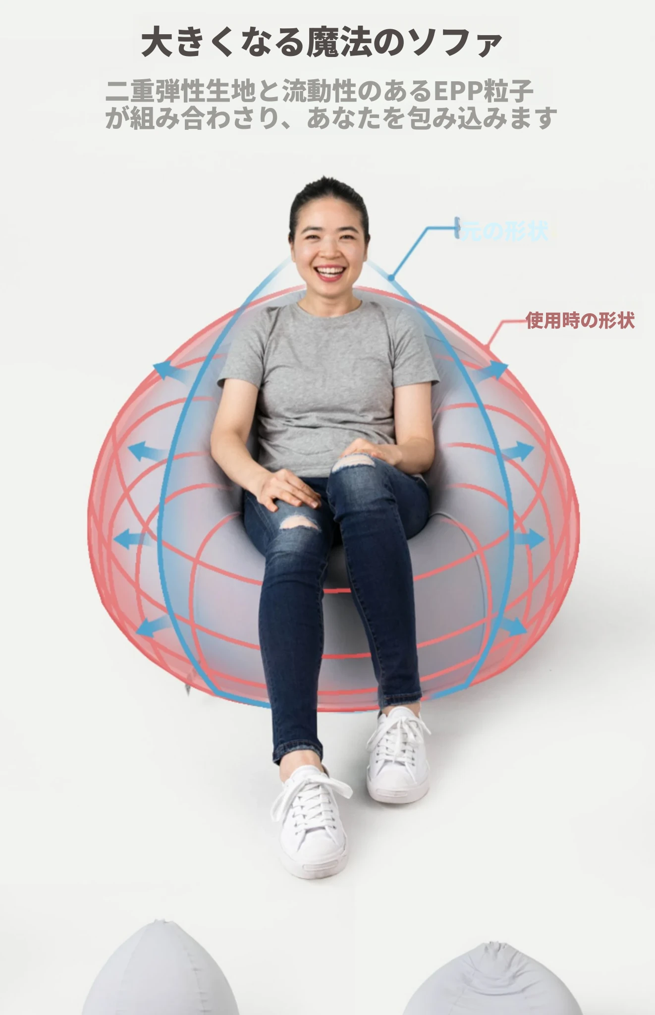 ohwo ラクラクソファ 豆袋型 シングル ライクラ弾力性 人気の小型ハウス用 タタミスタイル 簡易リラックスソファ 快適さ抜群!