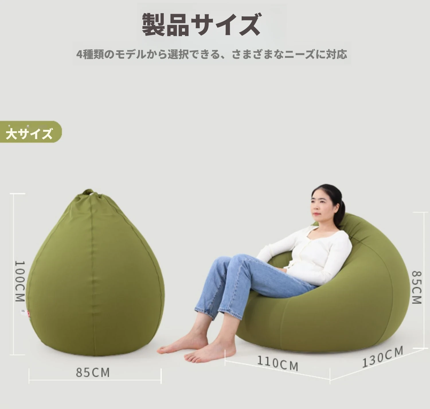 加大号水滴:アボカドグリーン 【110*130cm】
