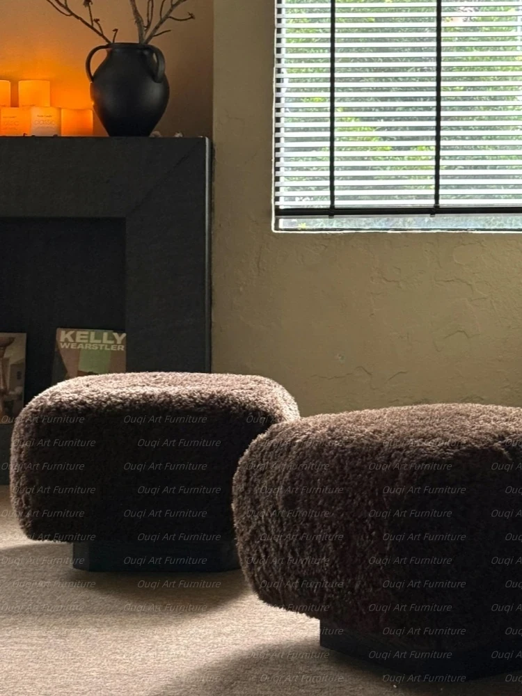 Ouqi. ヴィンテージ風シープスキンメイクアップスツール - おしゃれな靴置き、化粧台に最適なレトロデザインの便利なスツール!