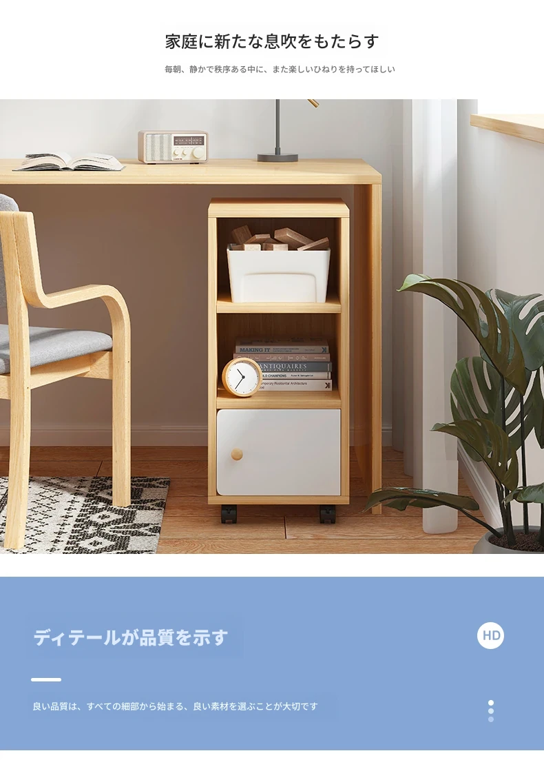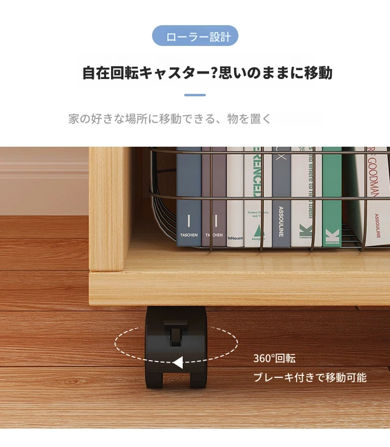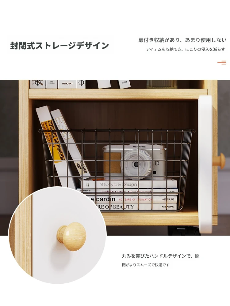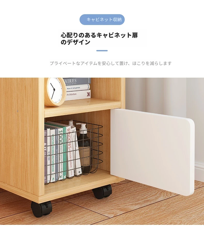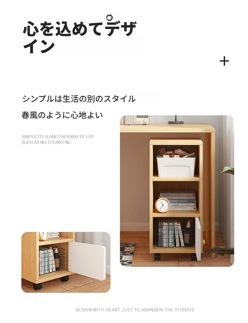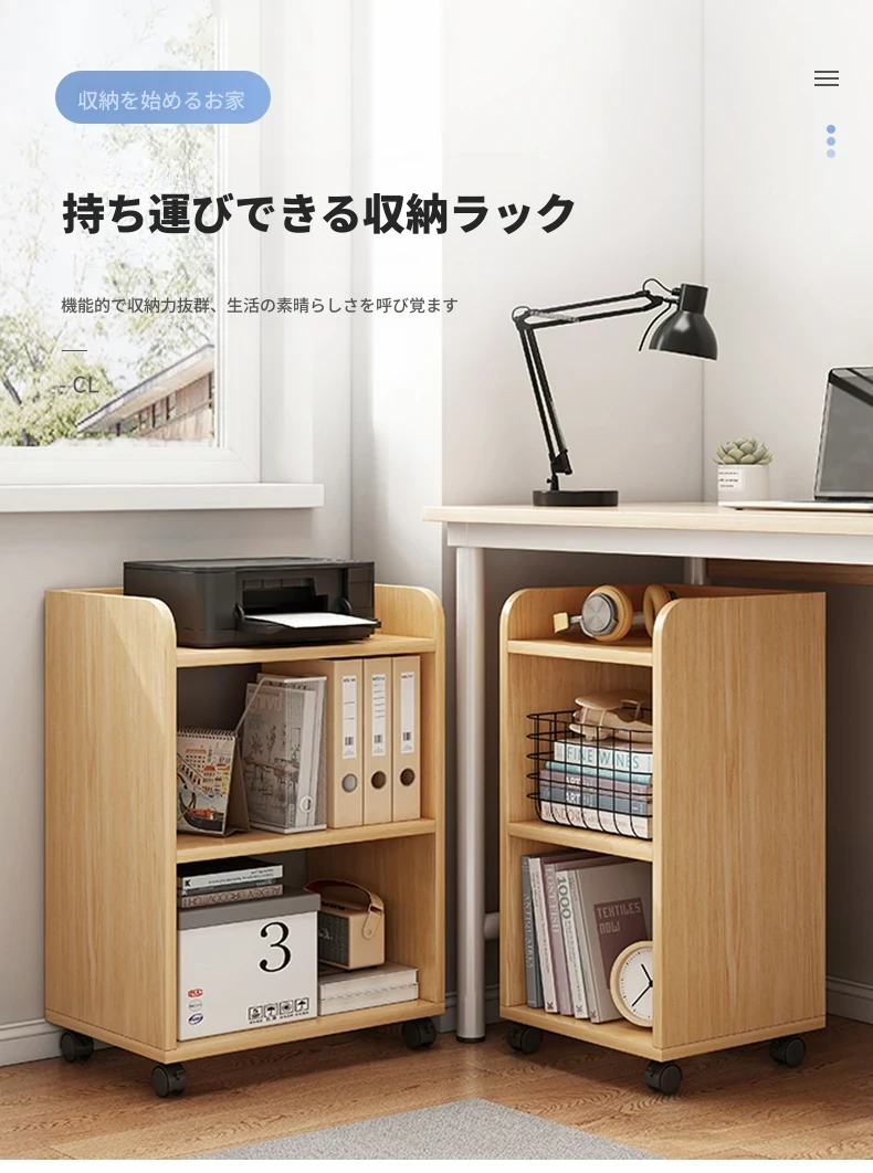 移動式キャスター付き小型書棚 - 書 desk の横にぴったり!収納力抜群のコンパクトなキャビネットで、デスク周りをスッキリ整理。簡単に移動できるので、使い勝手も抜群!おしゃれで実用的な収納アイテムです。