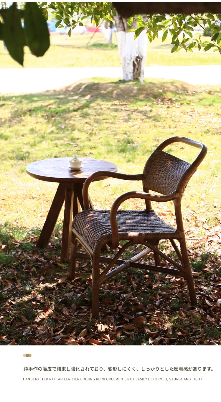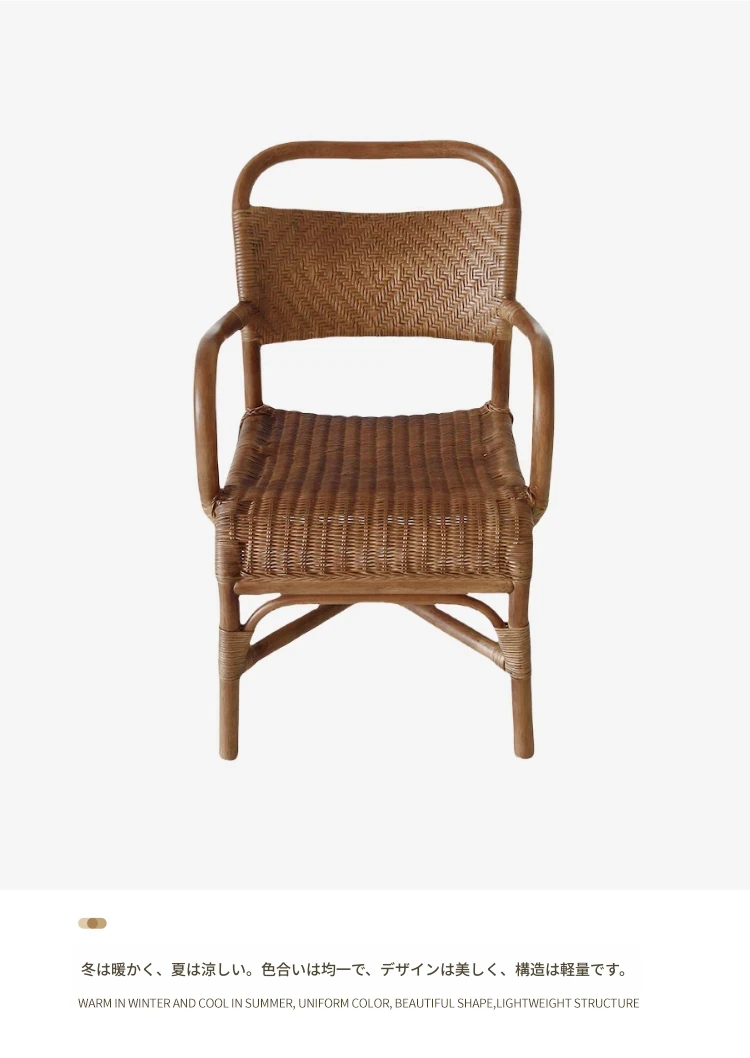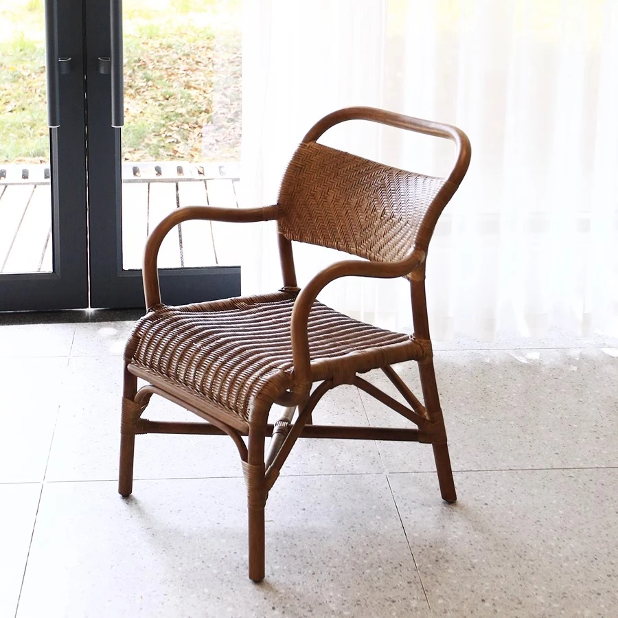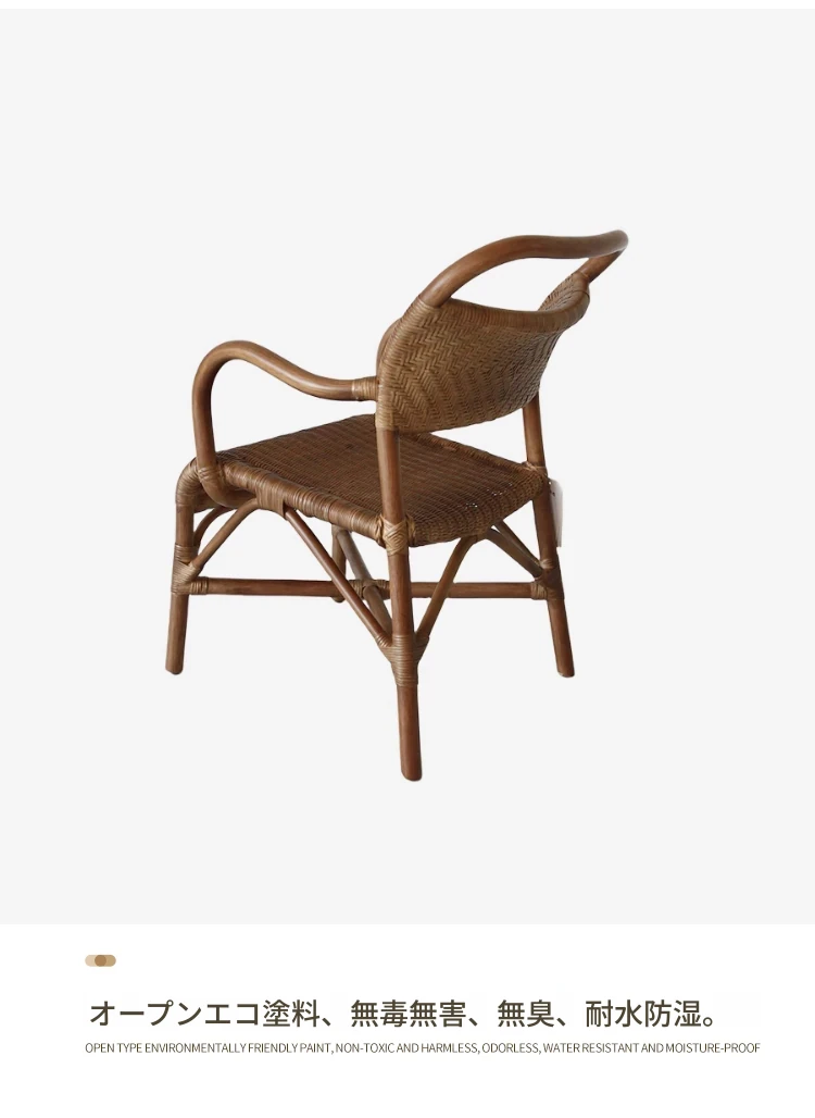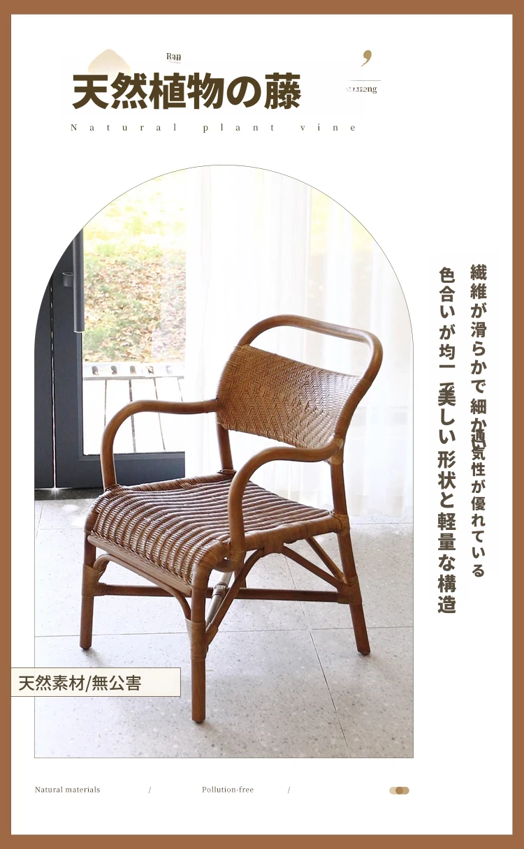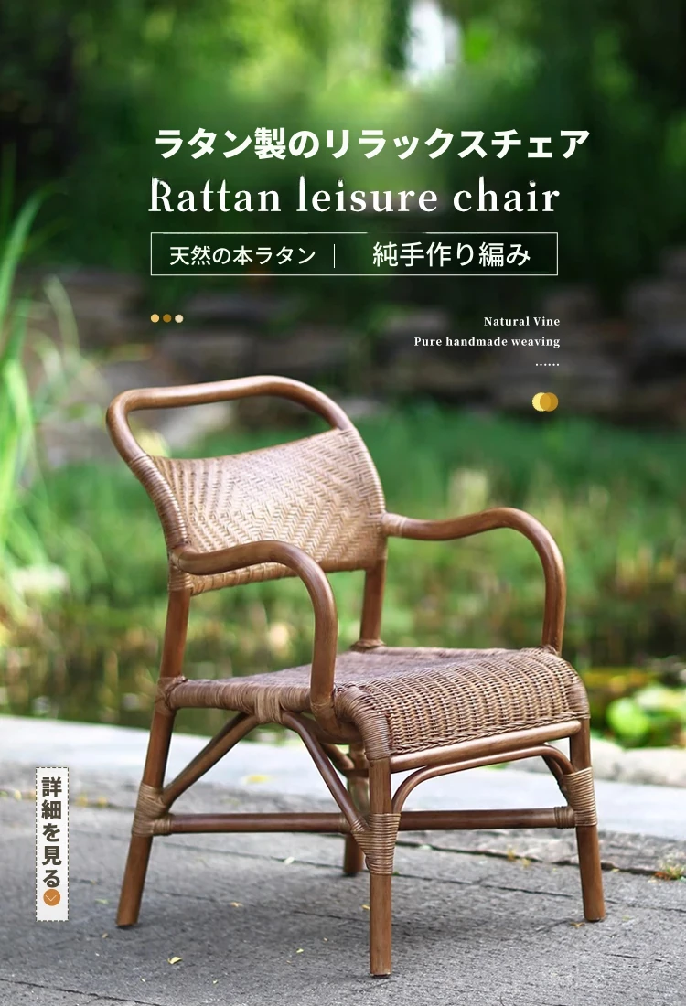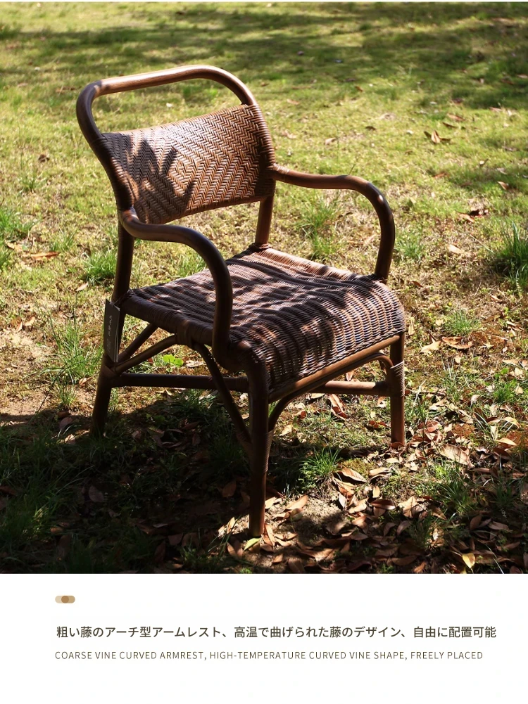 自然の風合いを楽しむ真藤リラックスチェア|おしゃれなオフィスや家庭用、バルコニーにも最適|背もたれ付きで快適なサポート|禅の心を感じる藤編みデザインのアームチェア