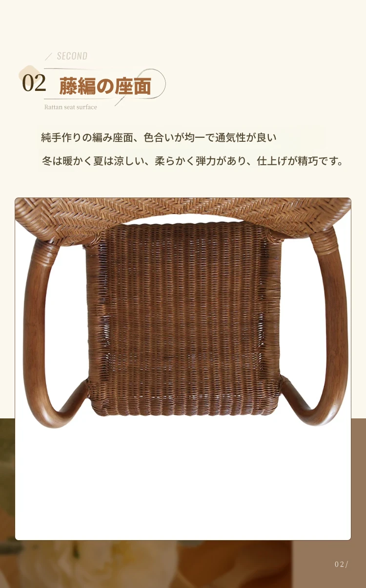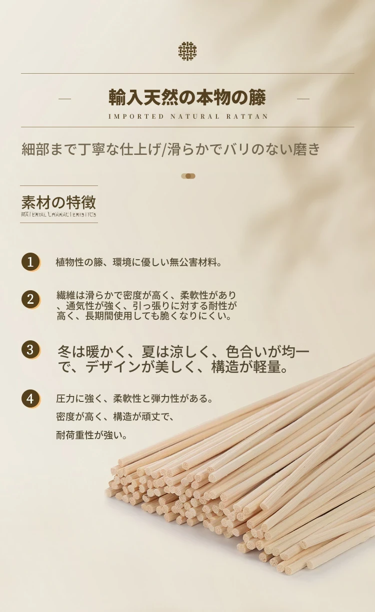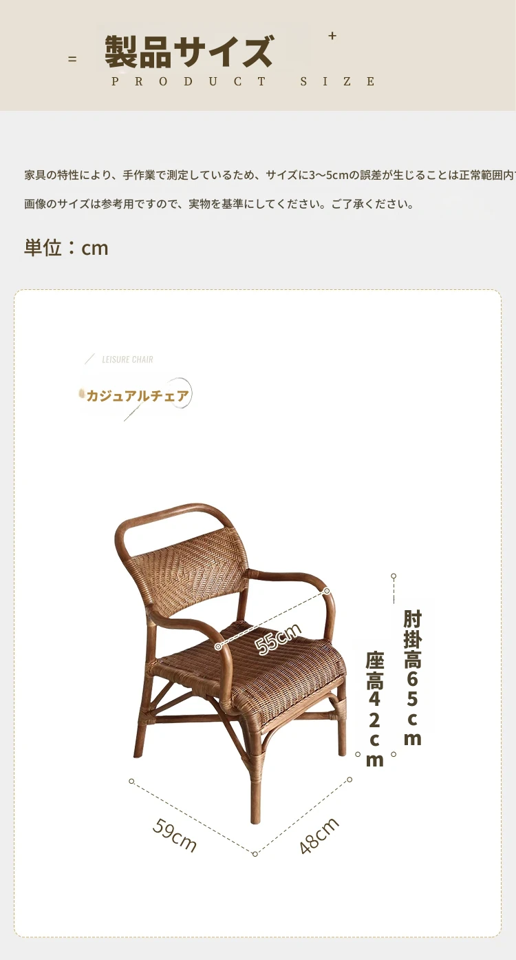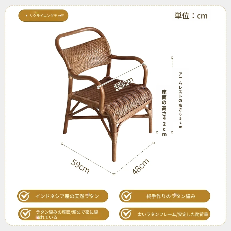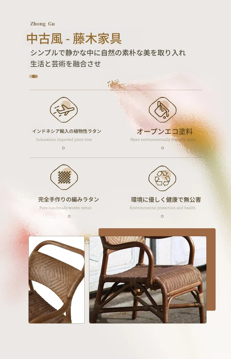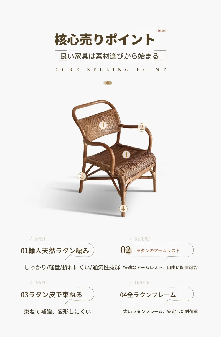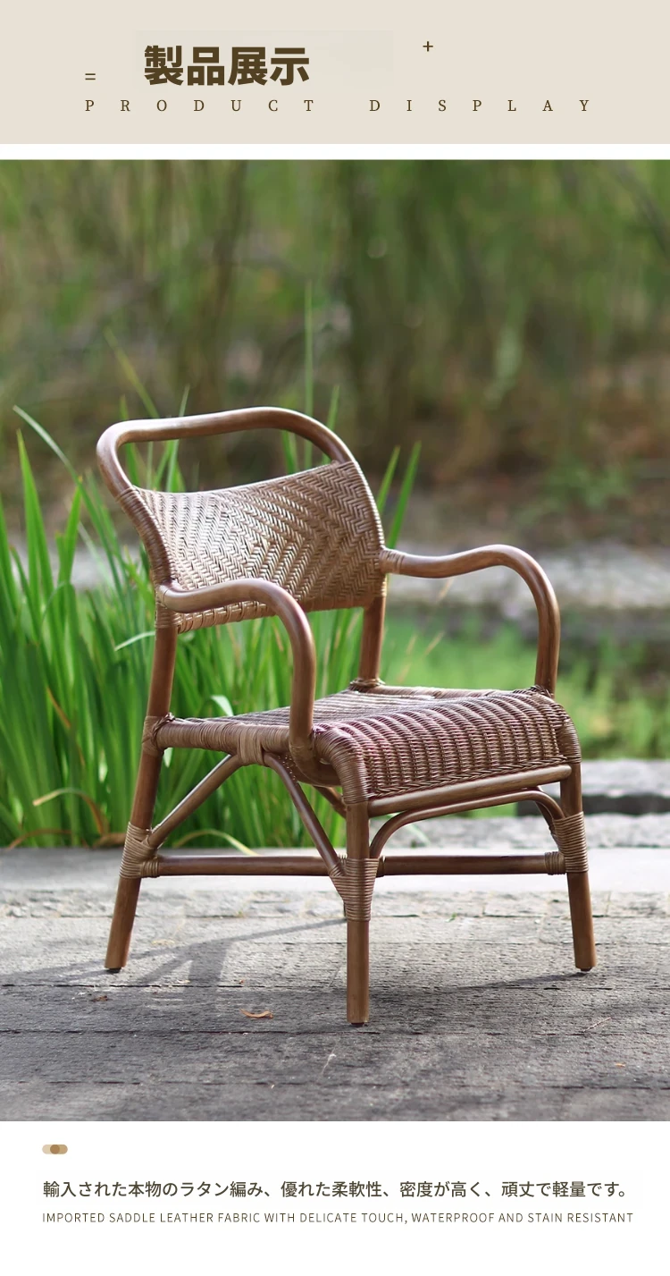 自然の風合いを楽しむ真藤リラックスチェア|おしゃれなオフィスや家庭用、バルコニーにも最適|背もたれ付きで快適なサポート|禅の心を感じる藤編みデザインのアームチェア