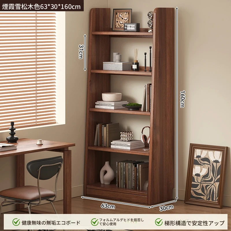 【主図モデル☆五層☆家装品質無垢エコボード】煙霞スプルース木色63*30*160CM-背板なし