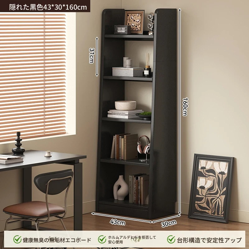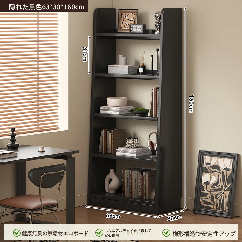 【主図モデル☆五層☆家装品質無垢エコボード】隠密スプルース黒色63*30*160CM-背板なし
