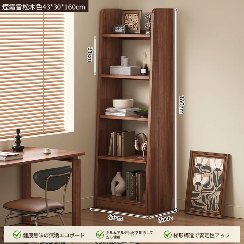【主図モデル☆五層☆家装品質無垢エコボード】煙霞スプルース木色43*30*160CM-背板なし