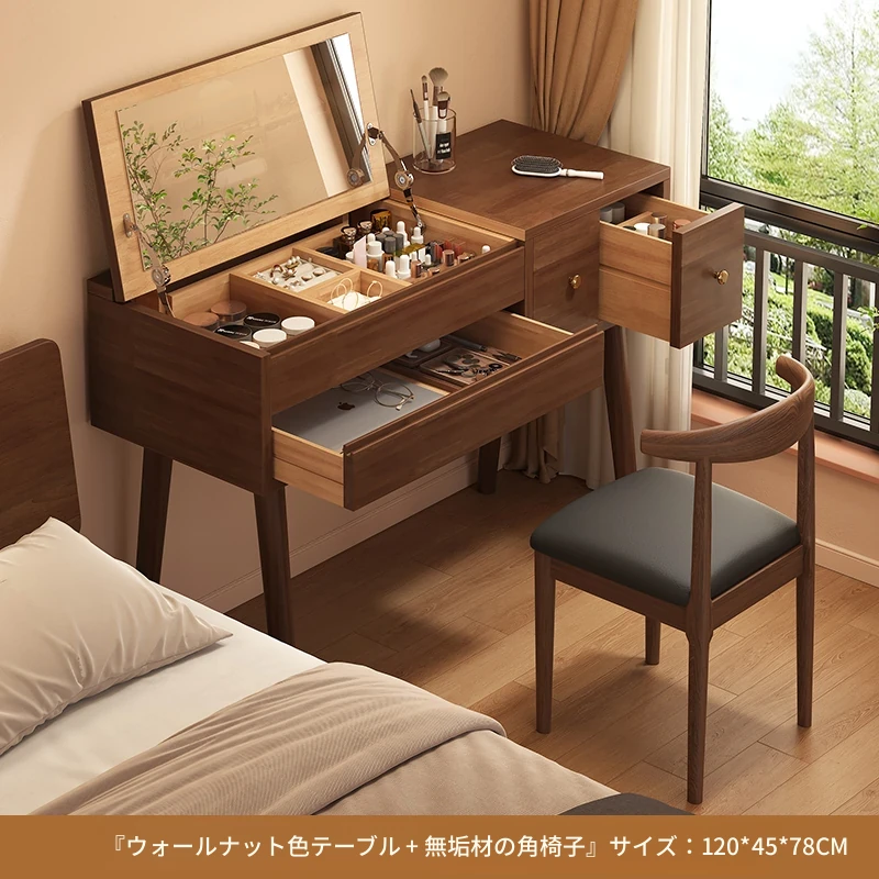 【卓+無垢材ドレッシングチェア⭐整装発送】ウォールナット色120*45*78cm
