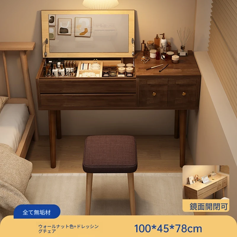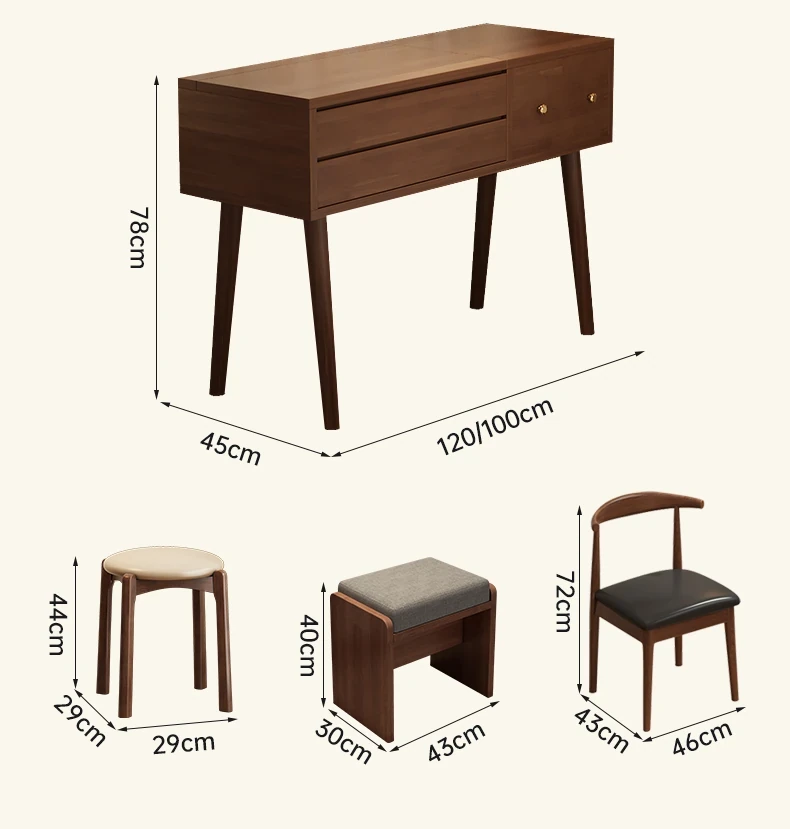 【卓+無垢材ドレッシングスツール⭐整装発送】ウォールナット色100*45*78cm