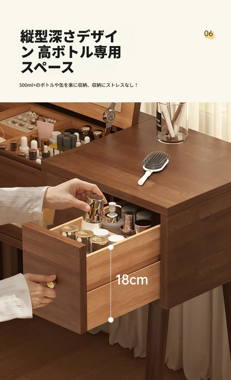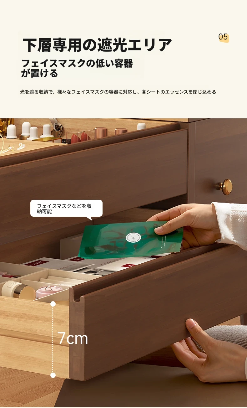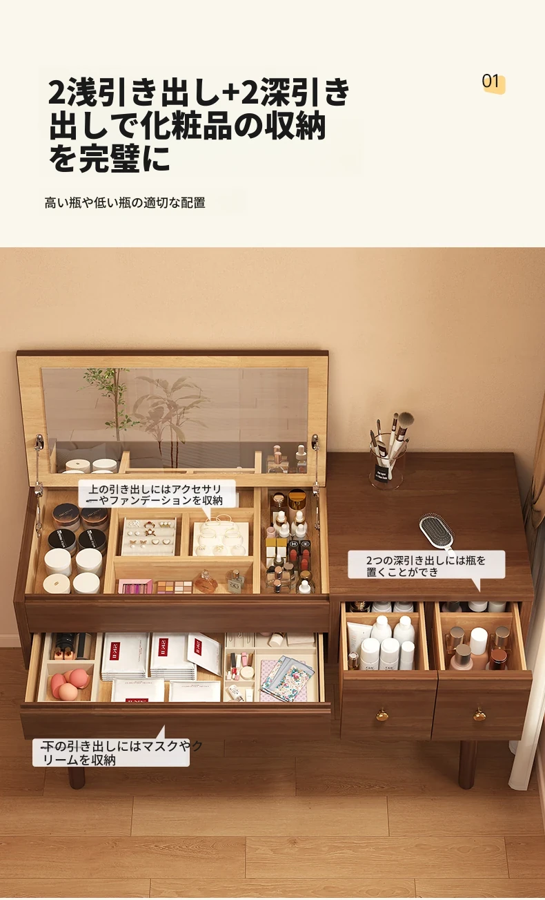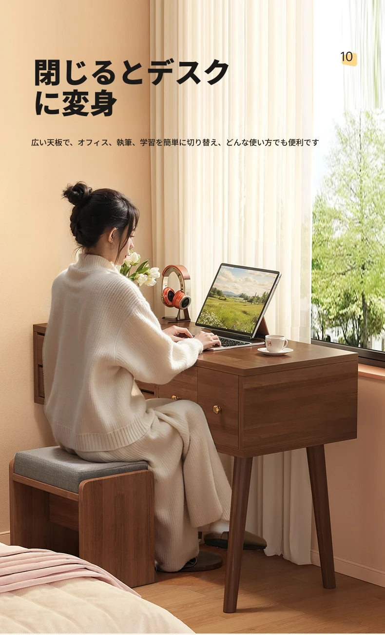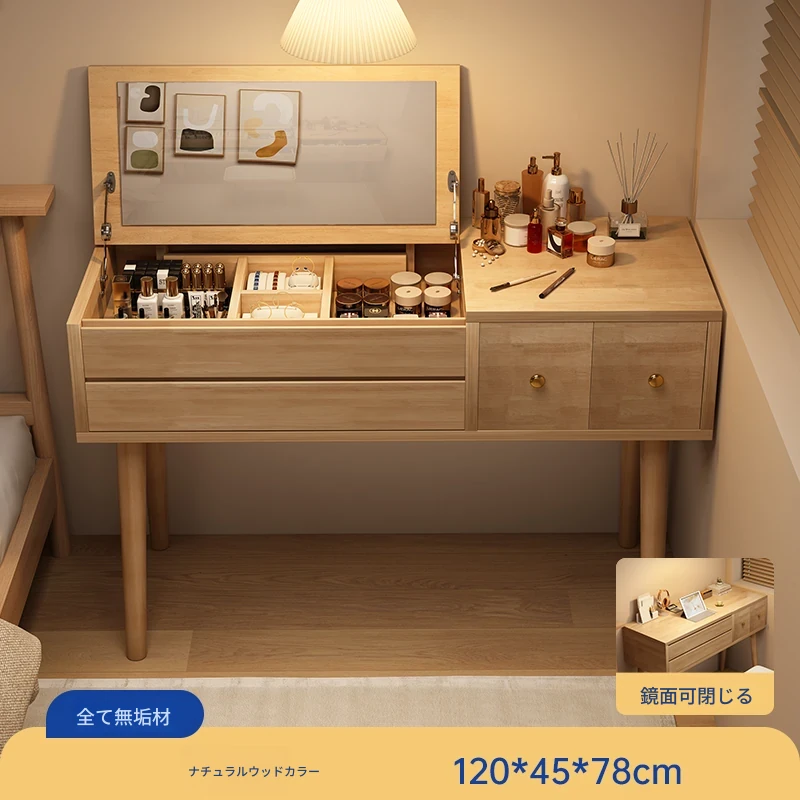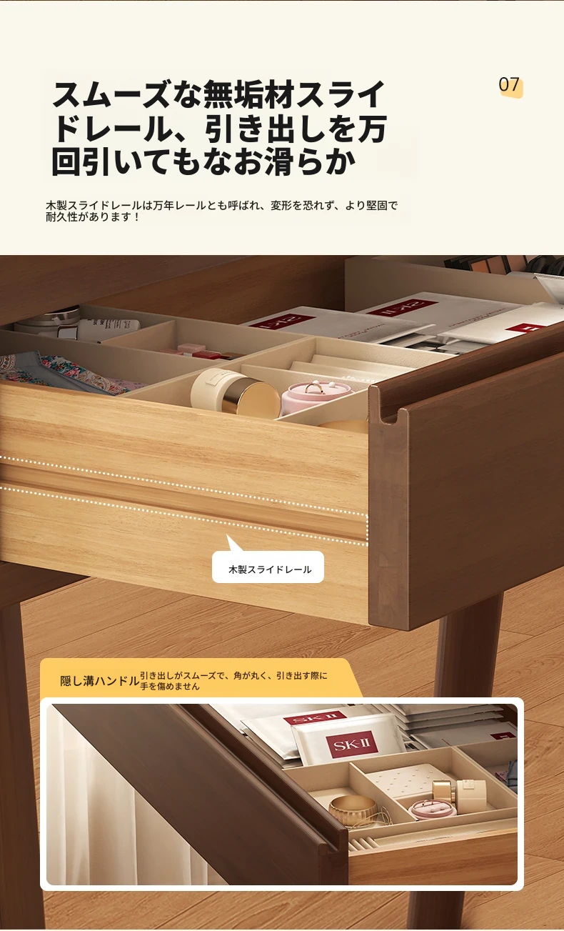 天然木材使用の魅力的なドレッサー!新しい2025モデル、コンパクトな角型デザインの実木製ベッドサイドテーブル。寝室の収納に最適で、あなたのメイクアップを引き立てる美しい化粧台です。