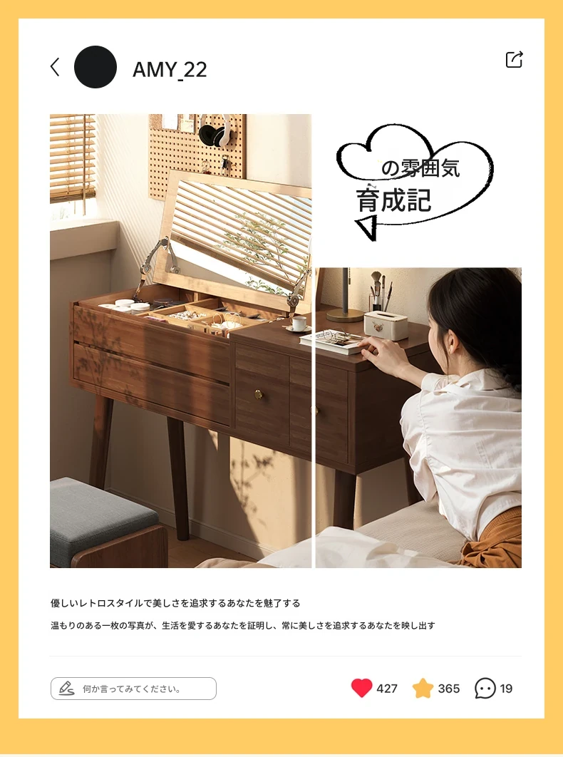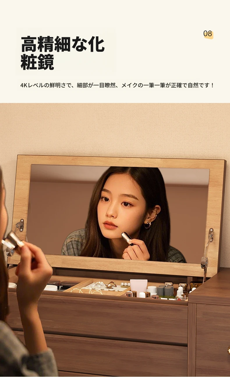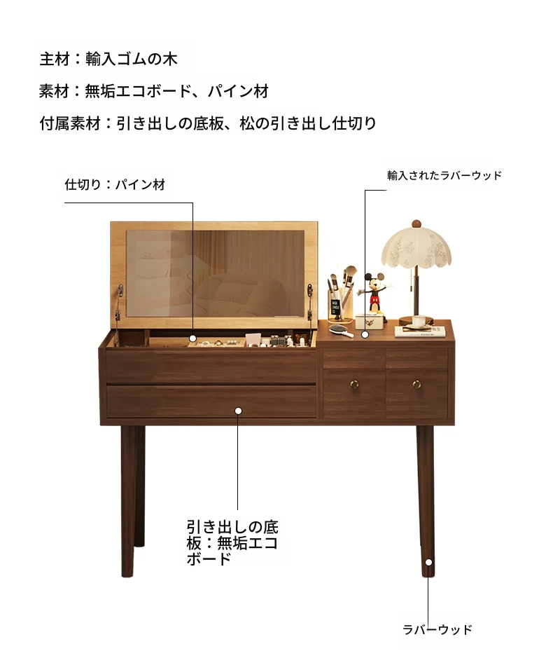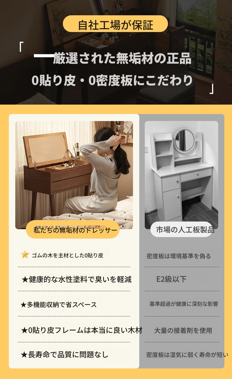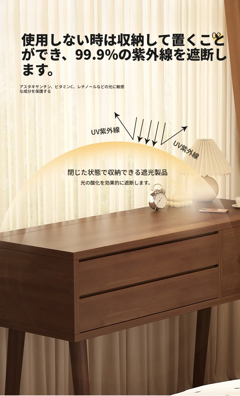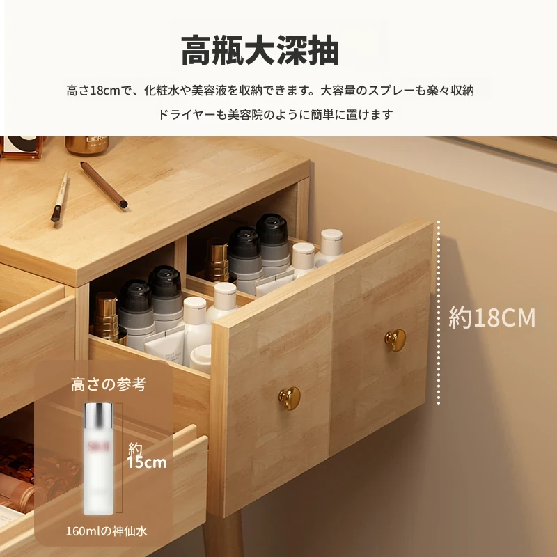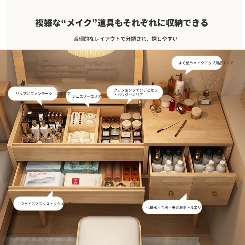 天然木材使用の魅力的なドレッサー!新しい2025モデル、コンパクトな角型デザインの実木製ベッドサイドテーブル。寝室の収納に最適で、あなたのメイクアップを引き立てる美しい化粧台です。
