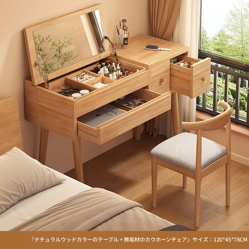 【卓+無垢材ドレッシングチェア⭐整装発送】ナチュラル色120*45*78cm