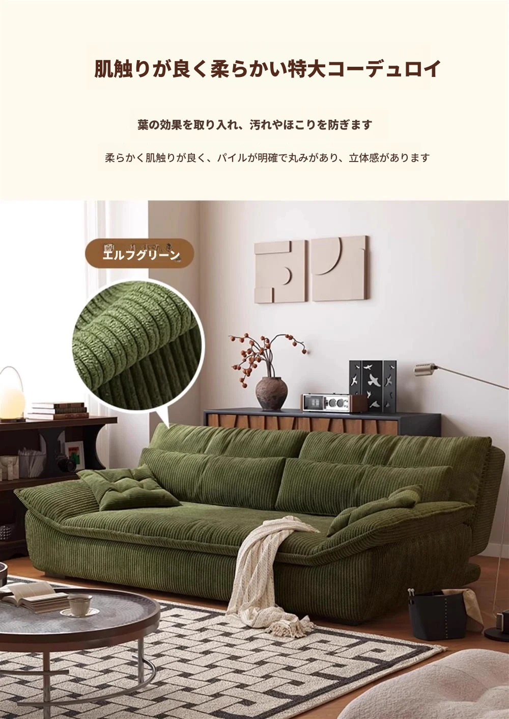 レトログリーン【肌触りの良いシェニール】 配送サービスあり