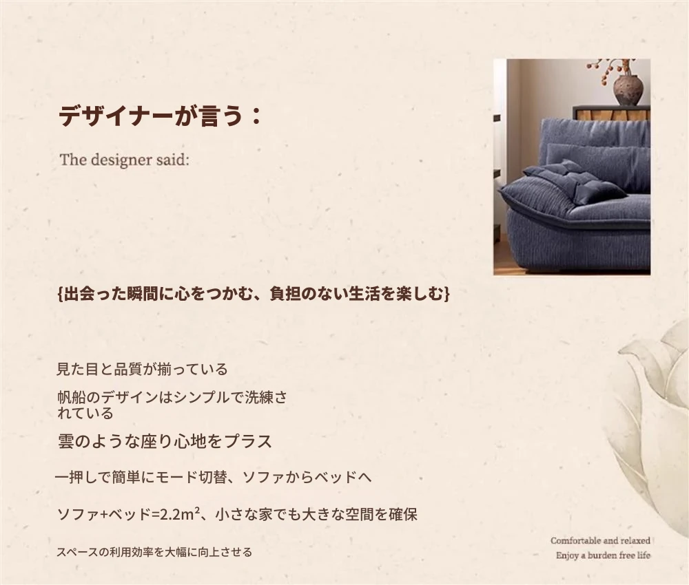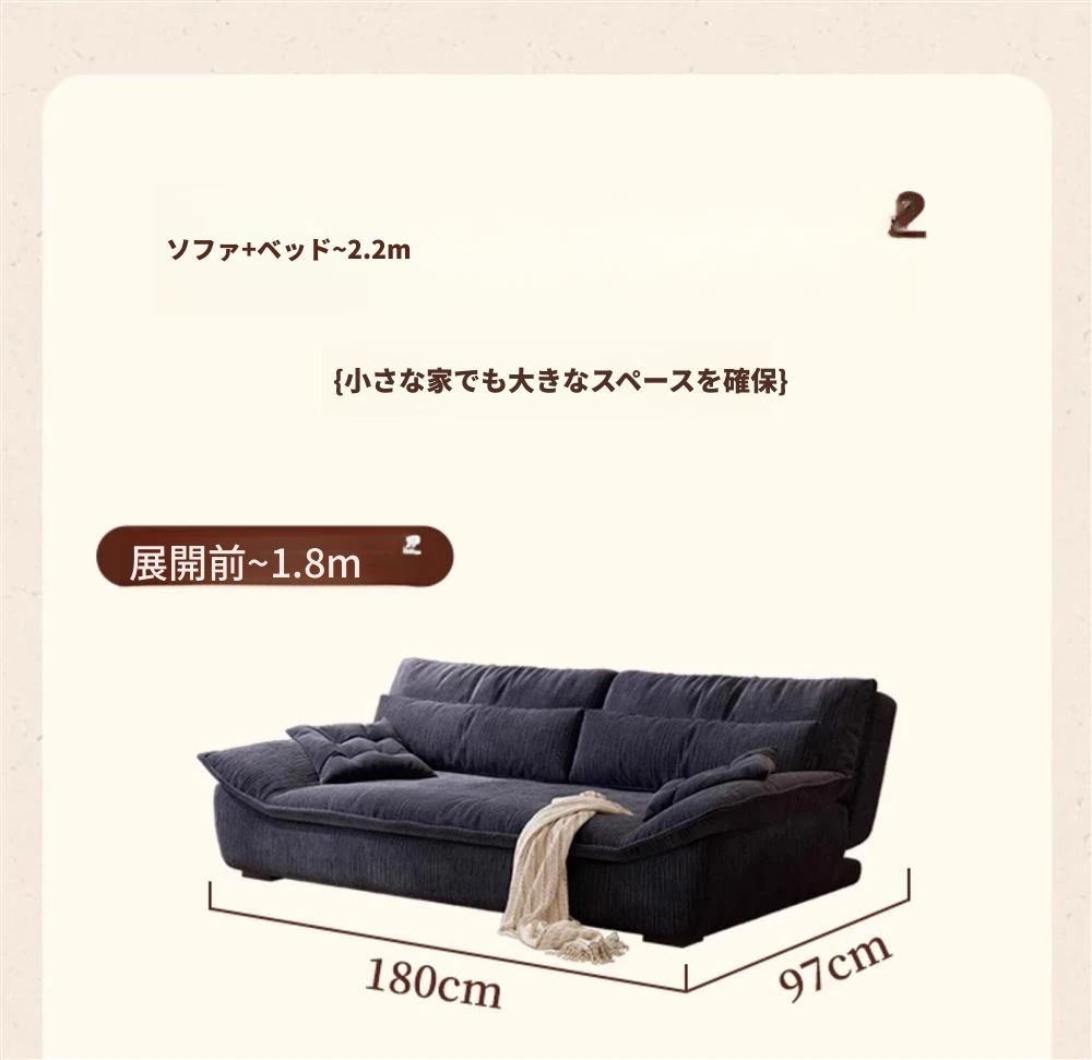 新しい帆船デザインのソファベッド、折りたたみ可能で多機能!布製のデュアルユース、コンパクトな2人用、小さなリビングに最適なクリーム風のおしゃれなアイテム。インテリアを格上げするネット人気商品!