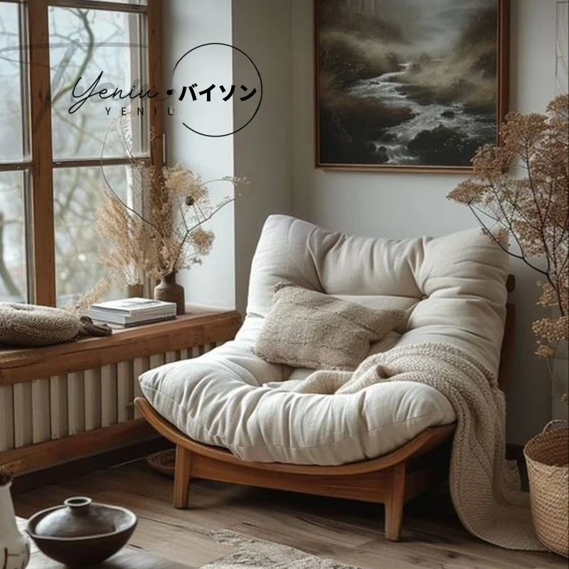 北欧風シンプルな日本式天然木とファブリックの一人掛けソファ - ホテルロビーや談話室に最適なリラックスチェア!バルコニーにもぴったりのスタイリッシュなデザイン!