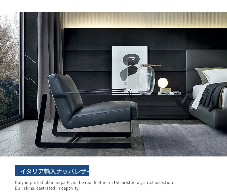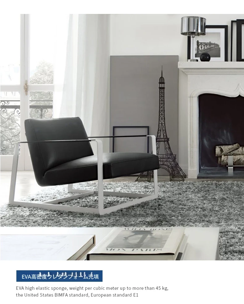 北欧モダンミニマリスト リラックスソファチェア 一人用ルームチェア バルコニー用 家庭用 ステンレススチールとアイアン製 本革チェア - シンプルでスタイリッシュなデザイン、快適な座り心地をお楽しみください!