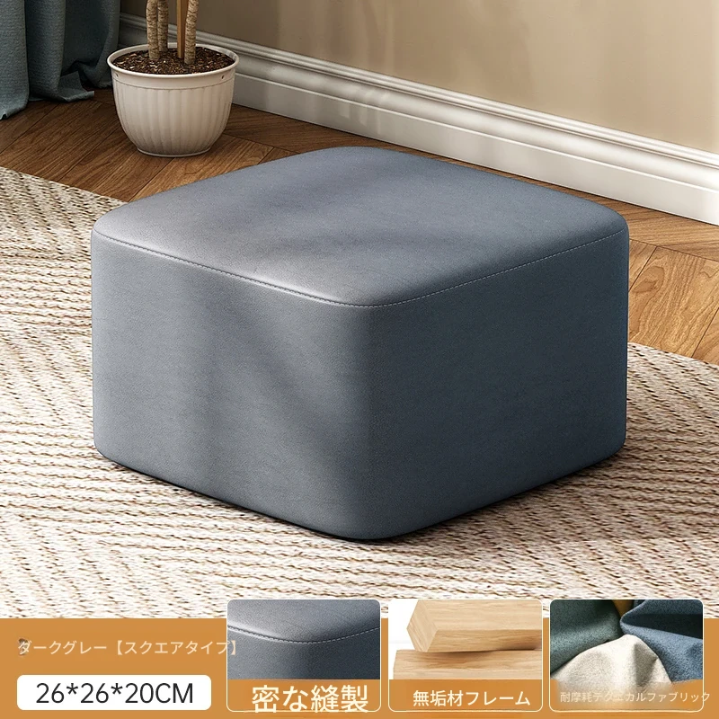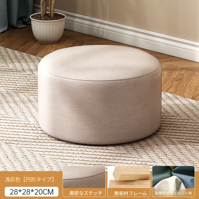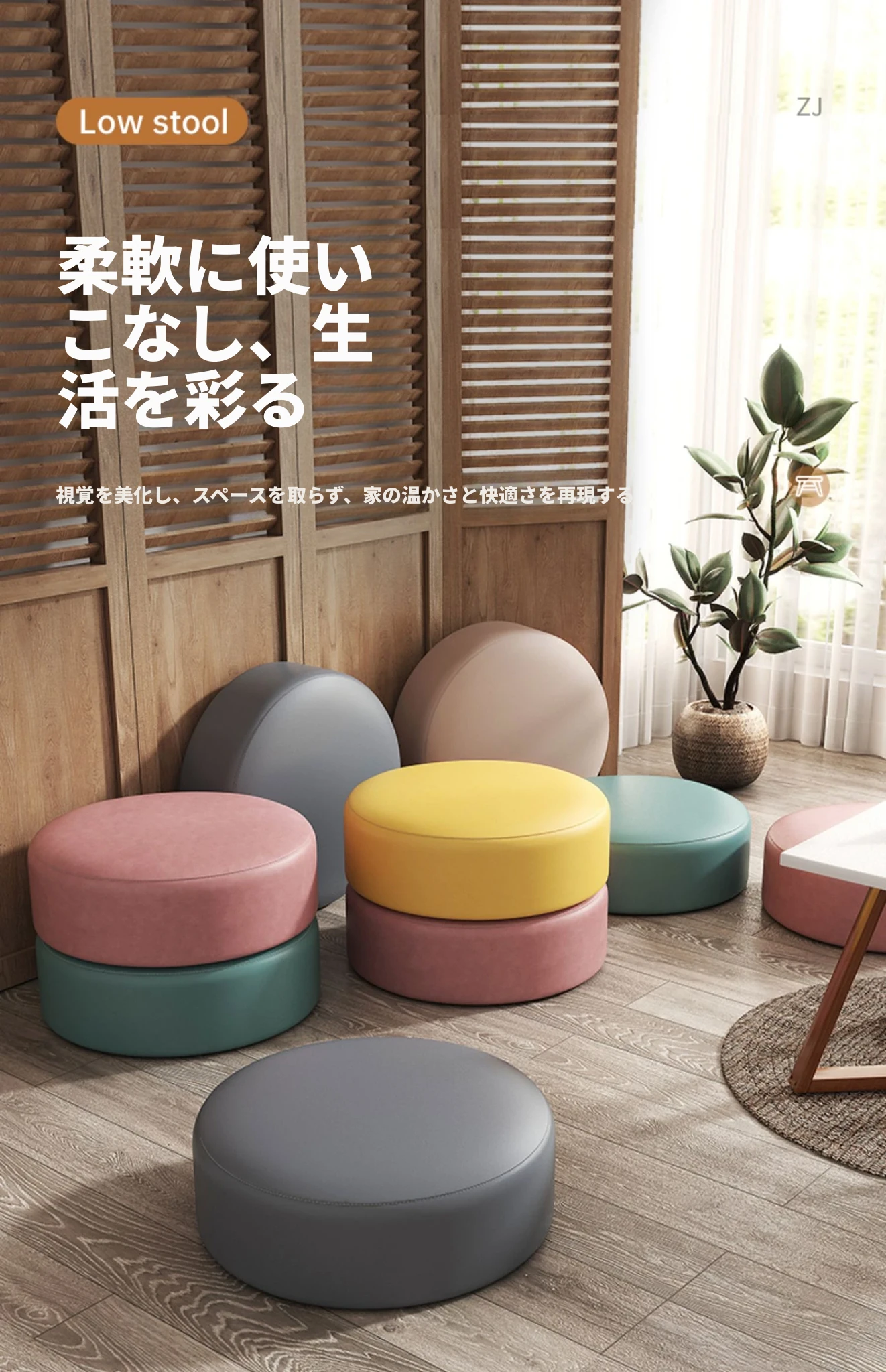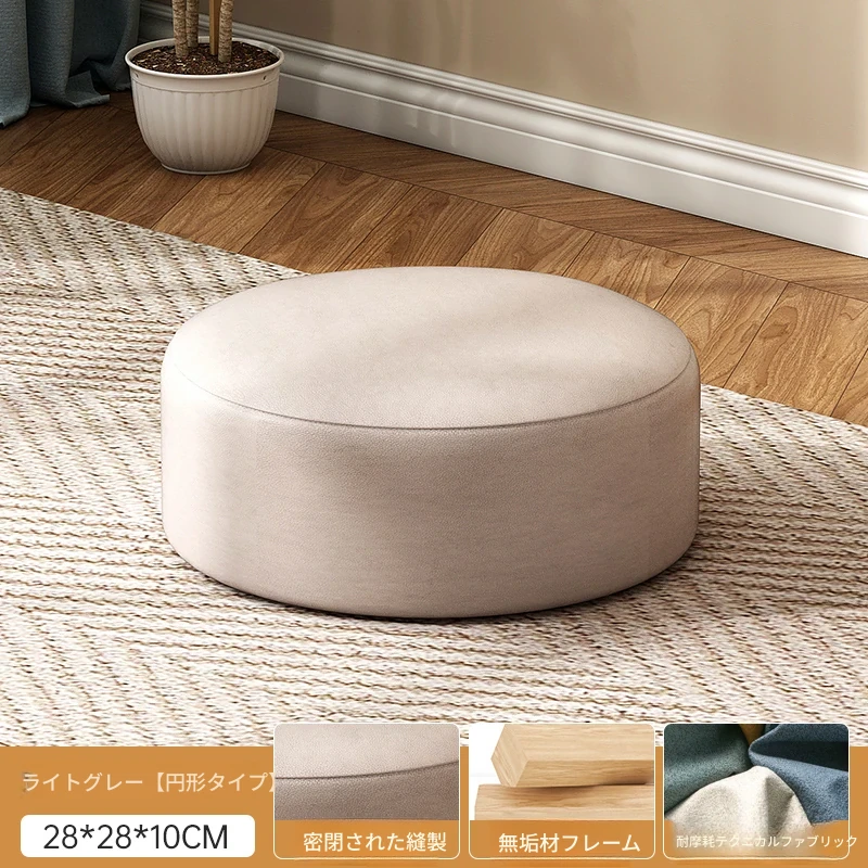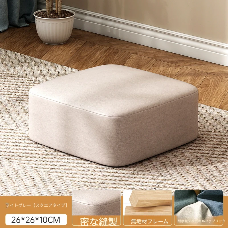 おしゃれな布製の低いスツール、シンプルなデザインでリビングや玄関にぴったり!靴を履き替える時に便利なソファスツールとしても大活躍。快適さとスタイルを兼ね備えた一品です。