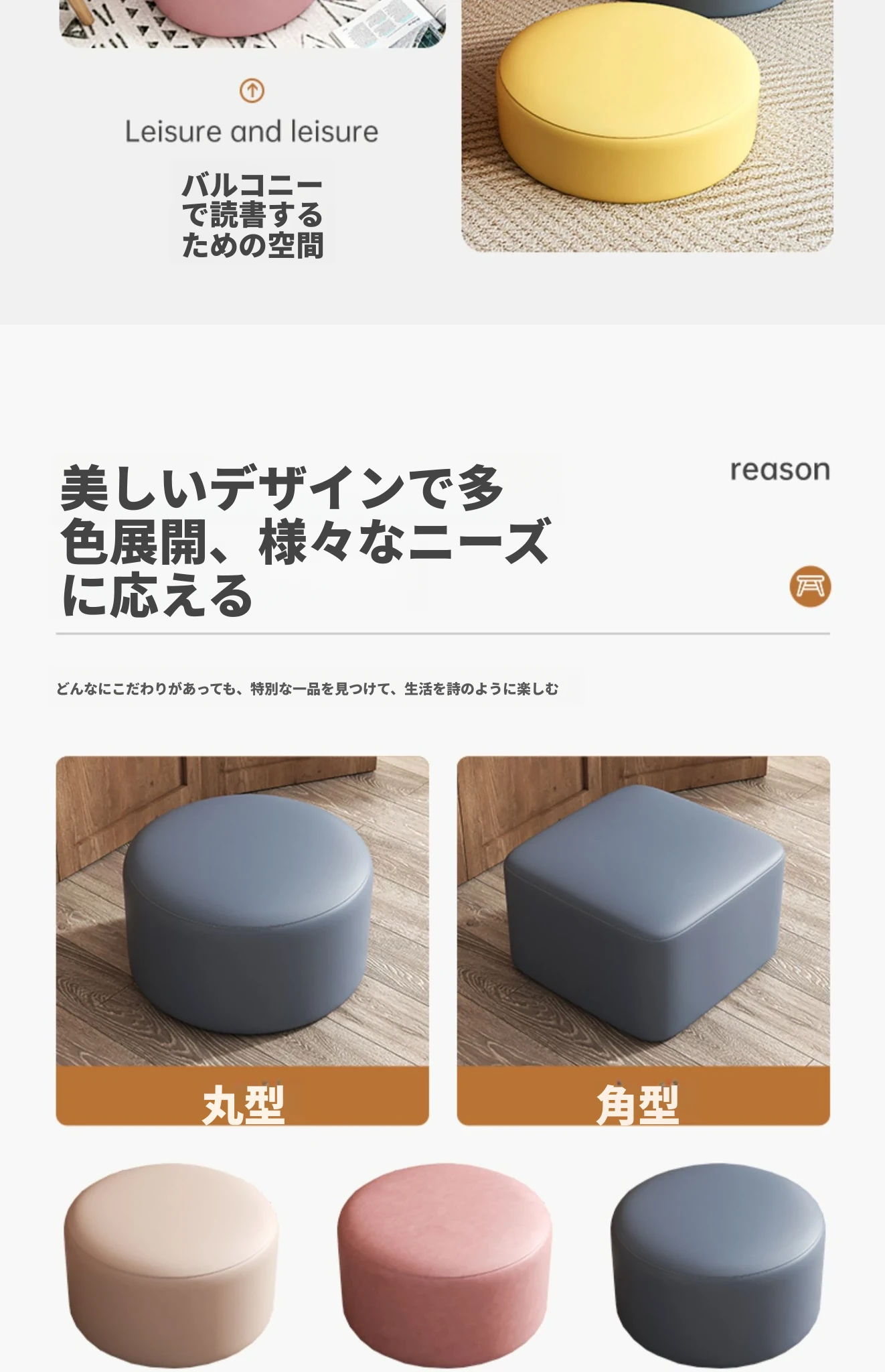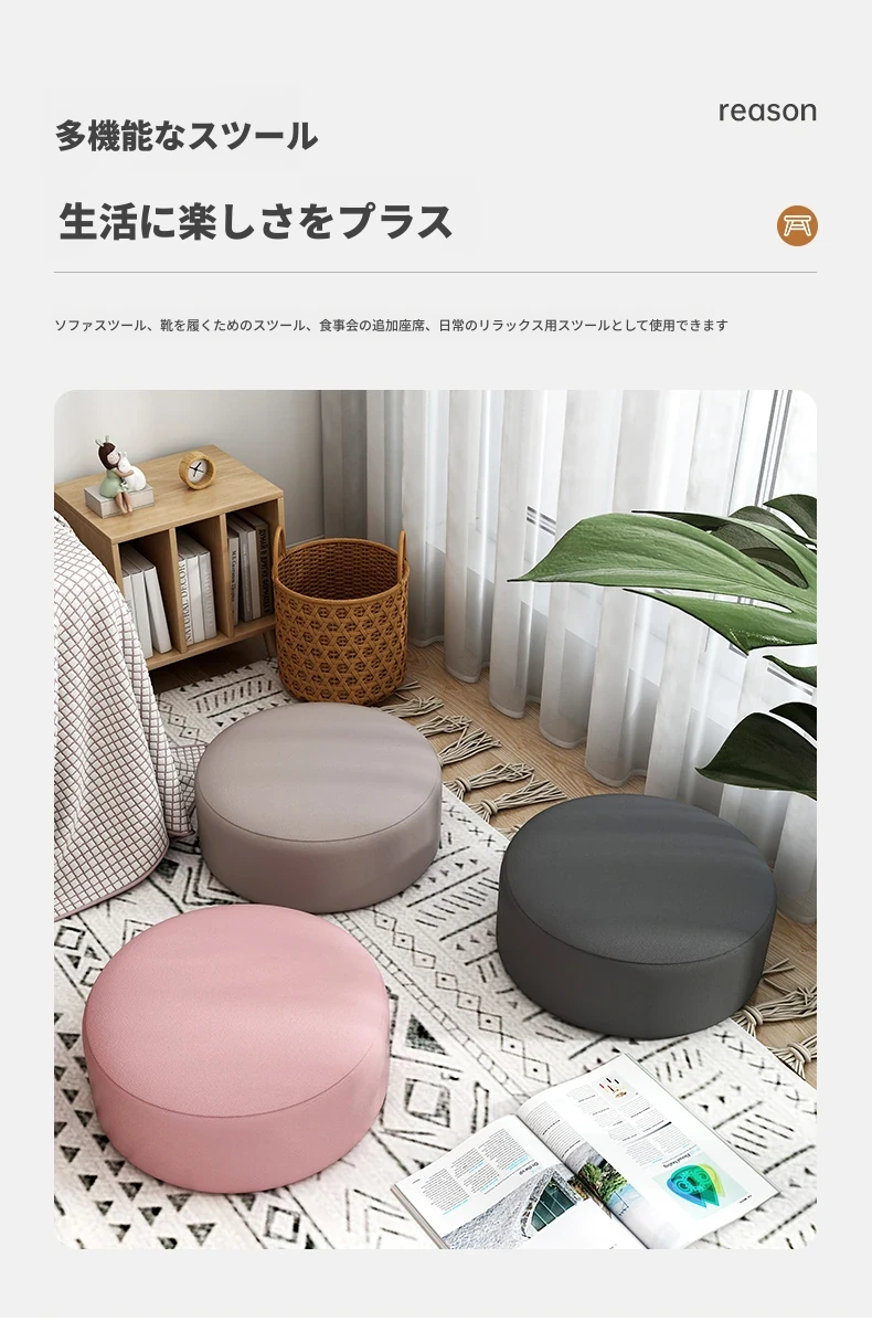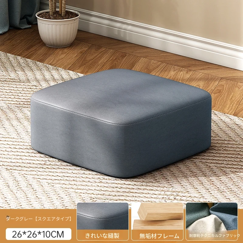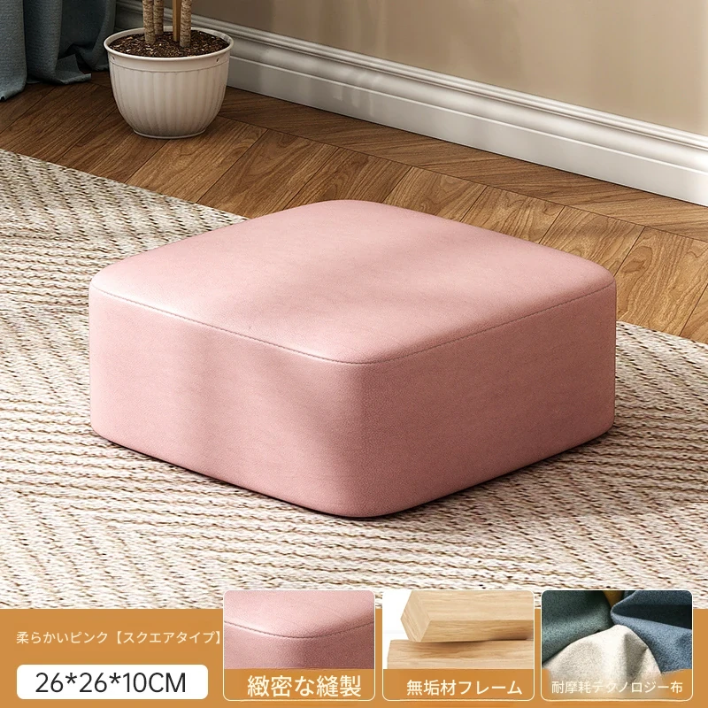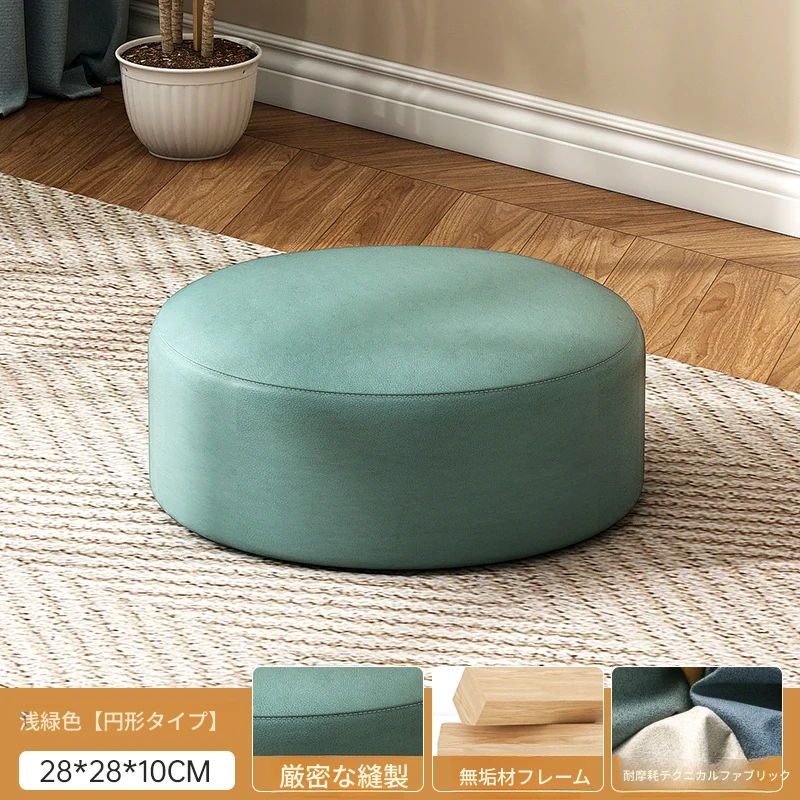 おしゃれな布製の低いスツール、シンプルなデザインでリビングや玄関にぴったり!靴を履き替える時に便利なソファスツールとしても大活躍。快適さとスタイルを兼ね備えた一品です。