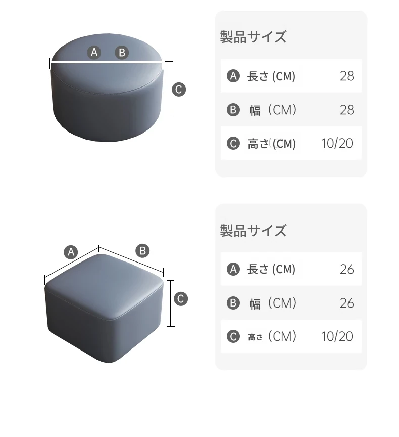 高くしてより快適【円形スツール-テクニカルファブリック】ライトグレー 高さ20cm