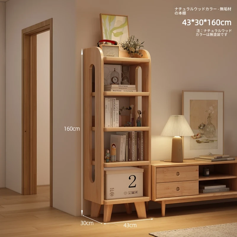 「シンプルスタイル丨簡単取り付け+15MMパイン材全無垢」ナチュラルウッドカラー五段43x30x160CM