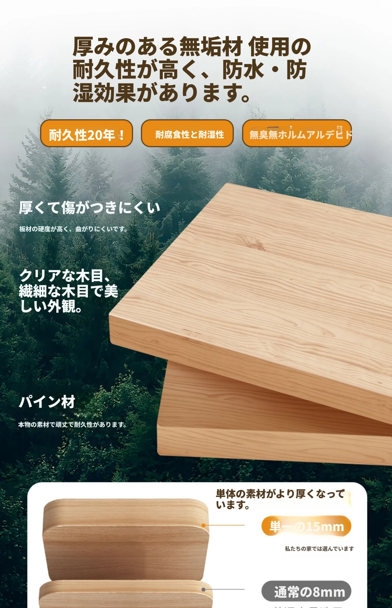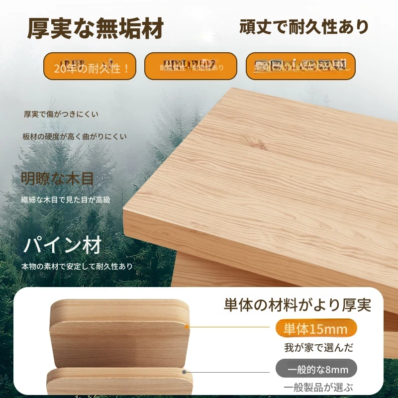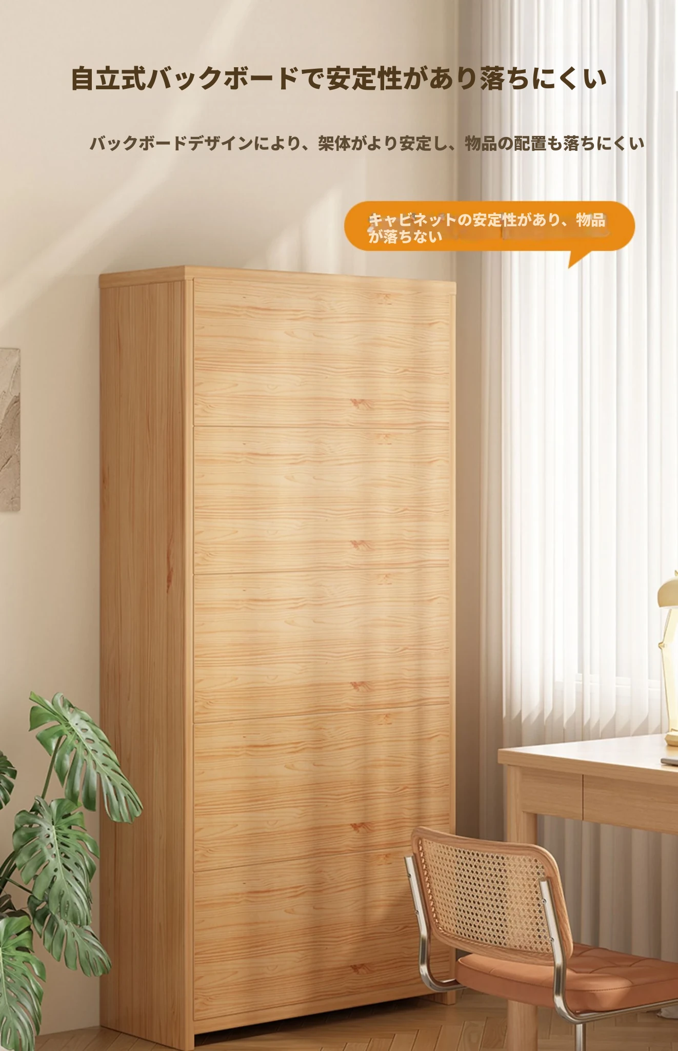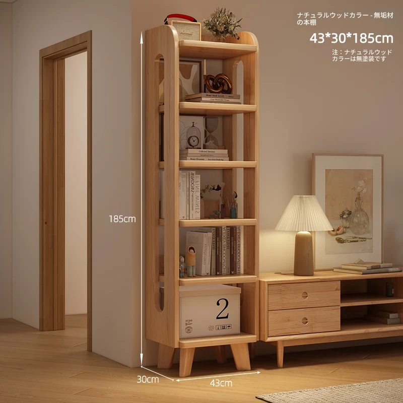 「シンプルスタイル丨簡単取り付け+15MMパイン材全無垢」ナチュラルウッドカラー六段43x30x185CM