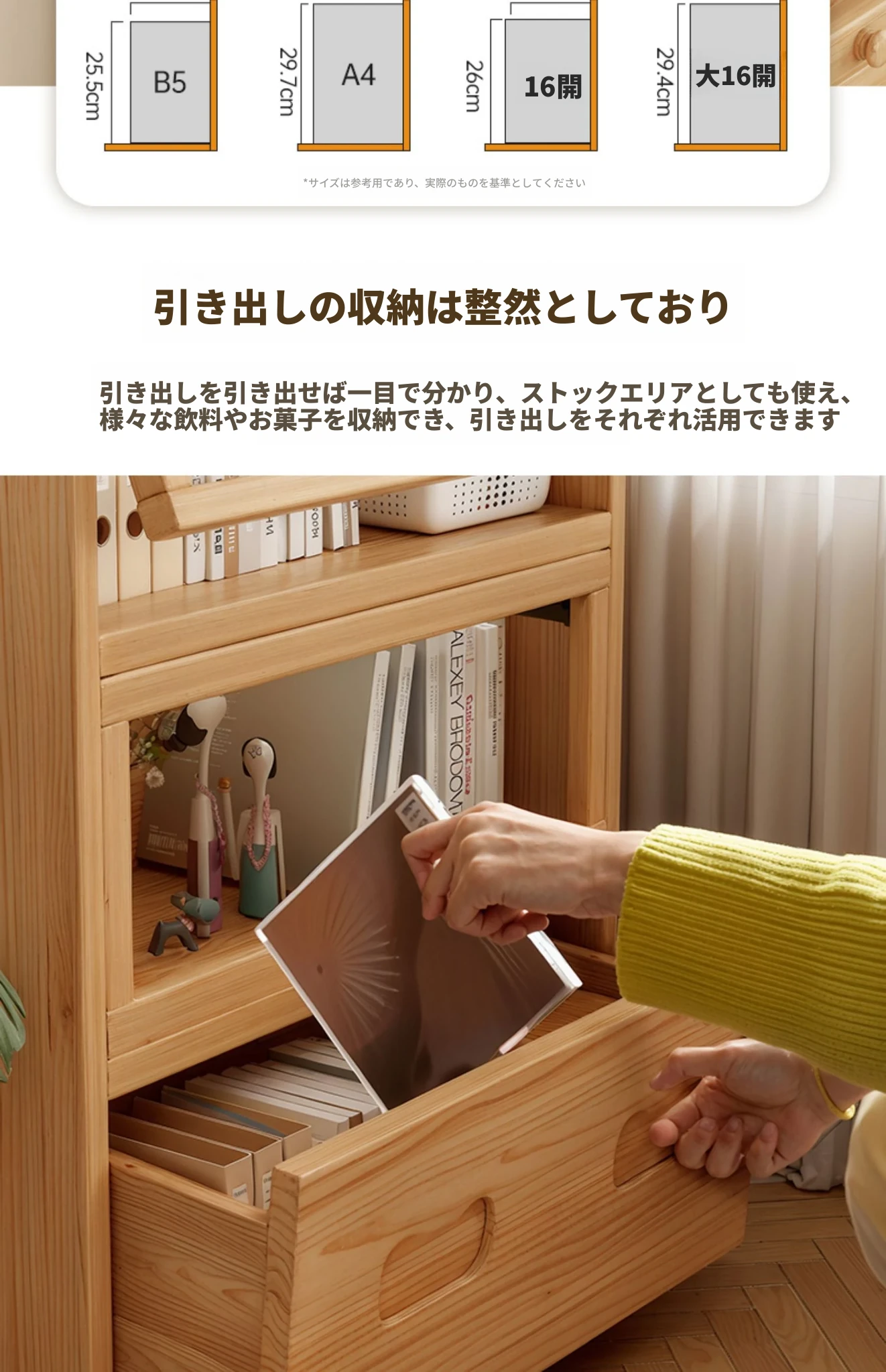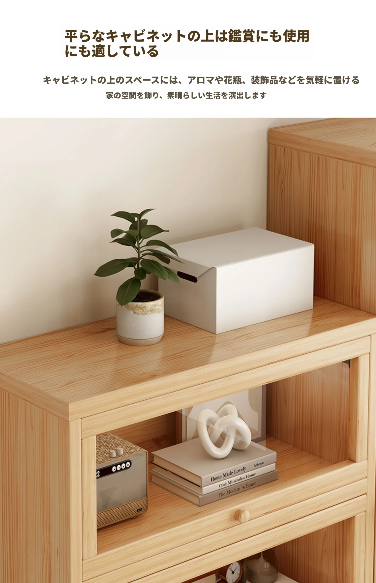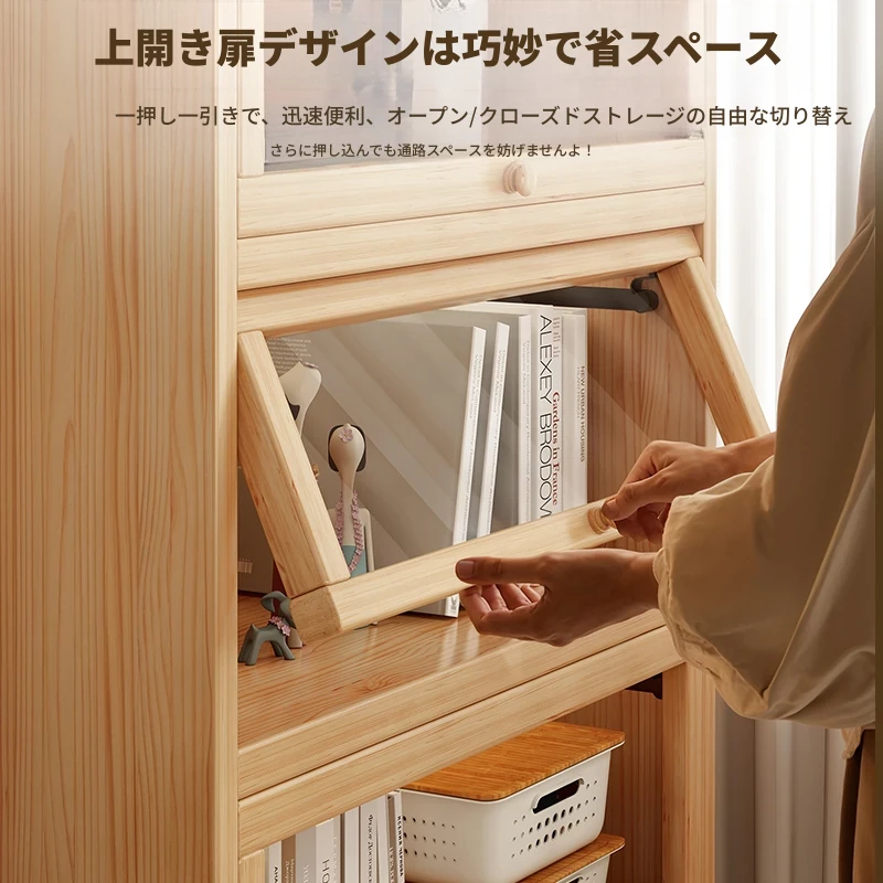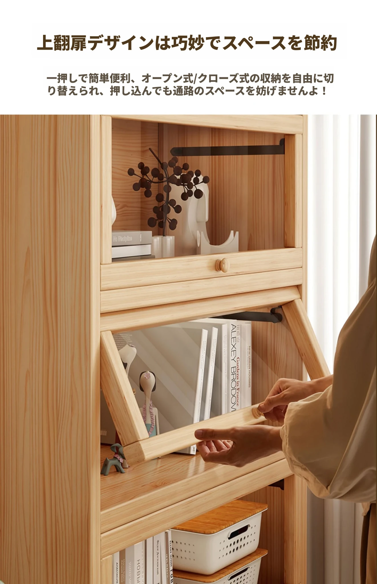 実木製の書棚!リビングにぴったりなスタイリッシュな展示キャビネット。壁に寄せて使える便利な収納棚。学生や家庭に最適!ドア付きで見た目もスッキリ。床置きタイプの収納家具で、あなたの空間を美しく整理整頓!