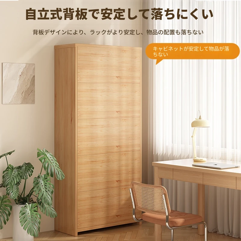 四段-ナチュラルウッドカラー-60×30×129CM■厚手の無塗装パイン材-引き出し付き