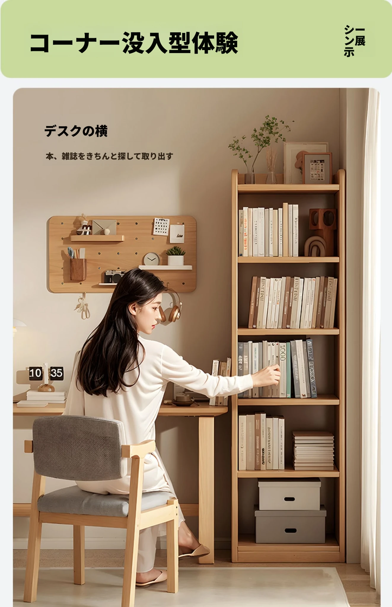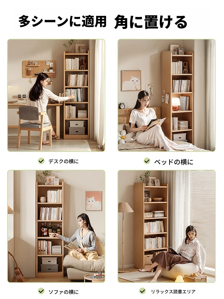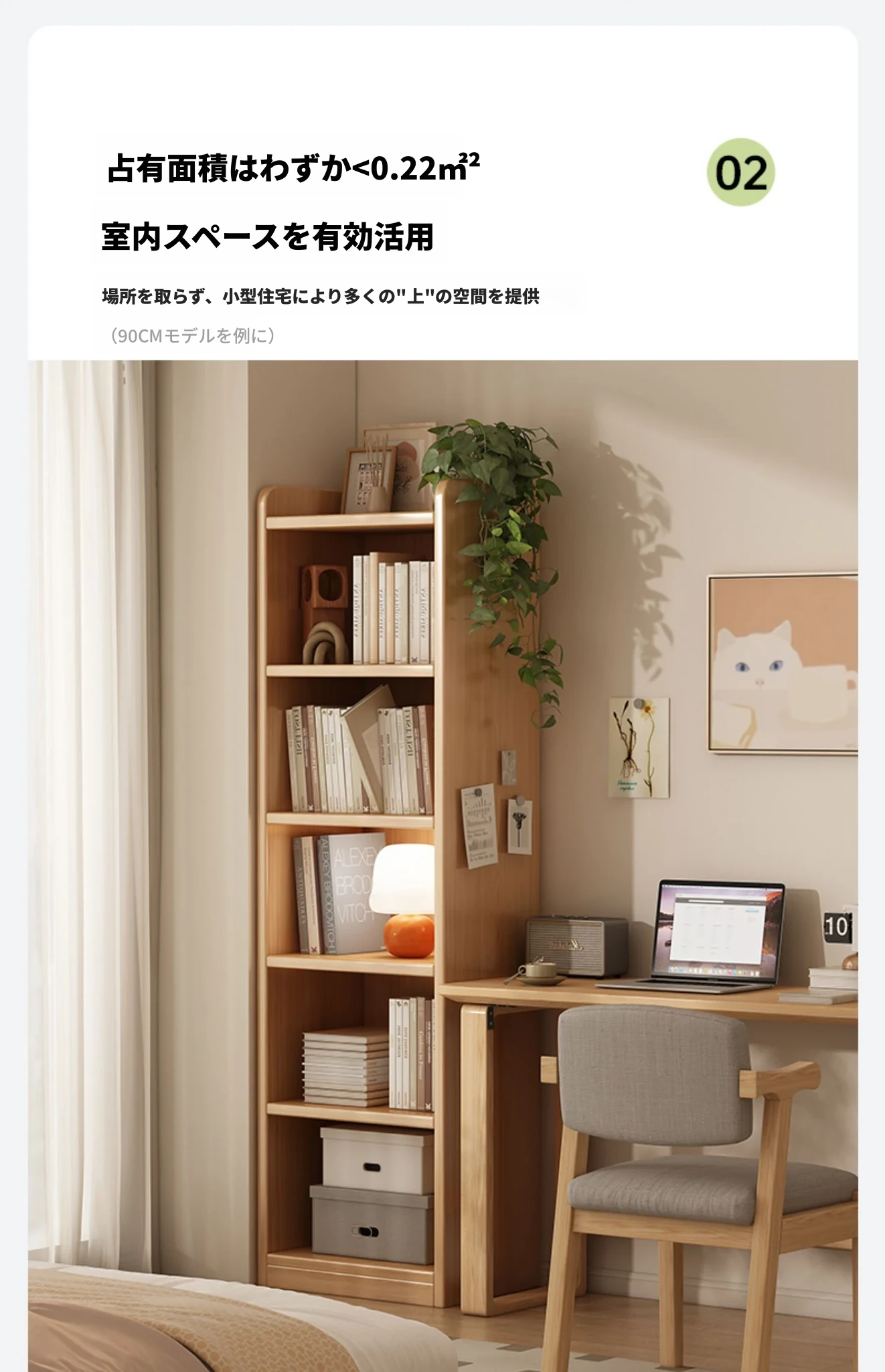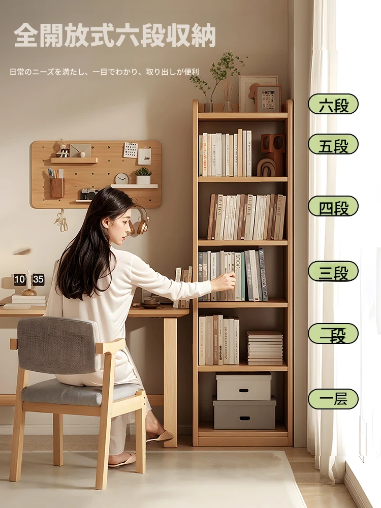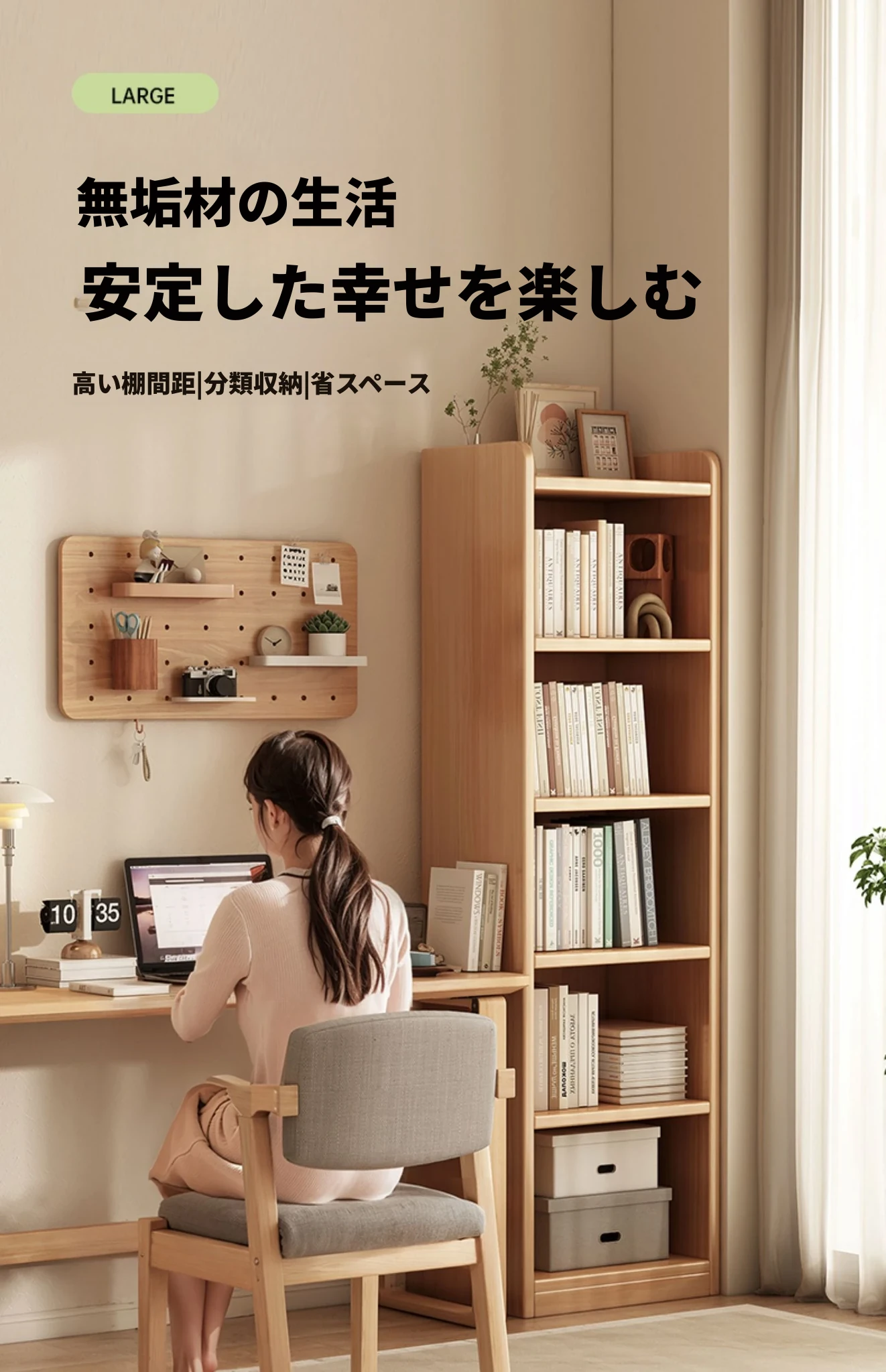 「省スペース!学生向けの実木製書棚 - 家庭用ストレージキャビネット、壁にぴったり寄せられるスリムデザインの簡易収納棚」
