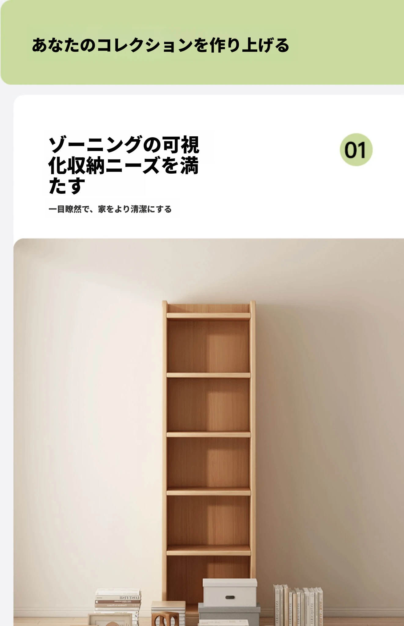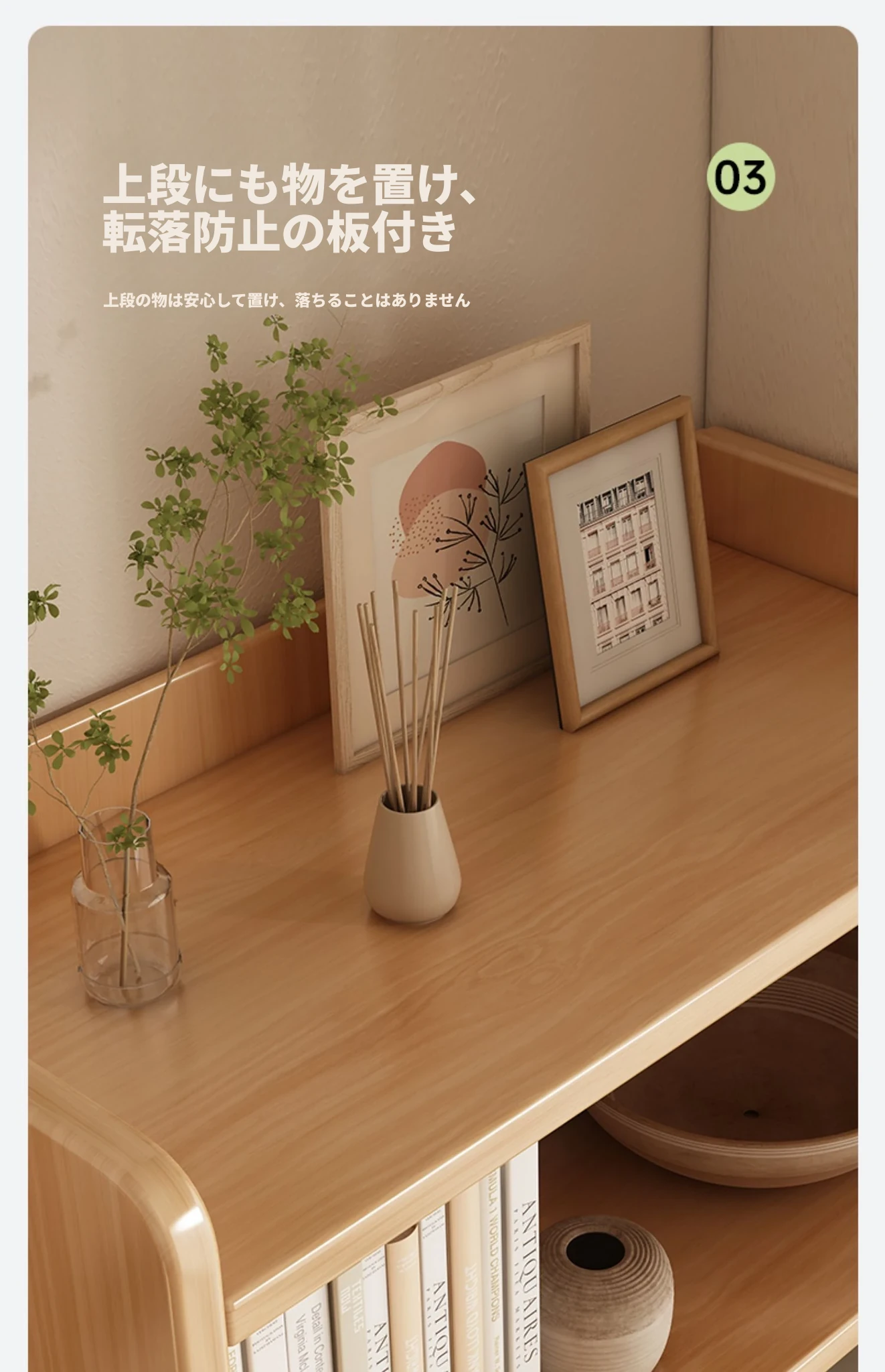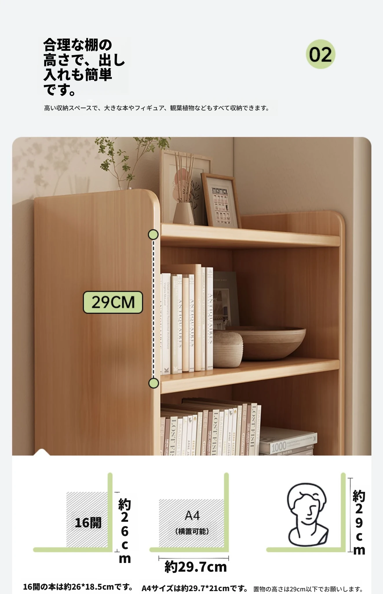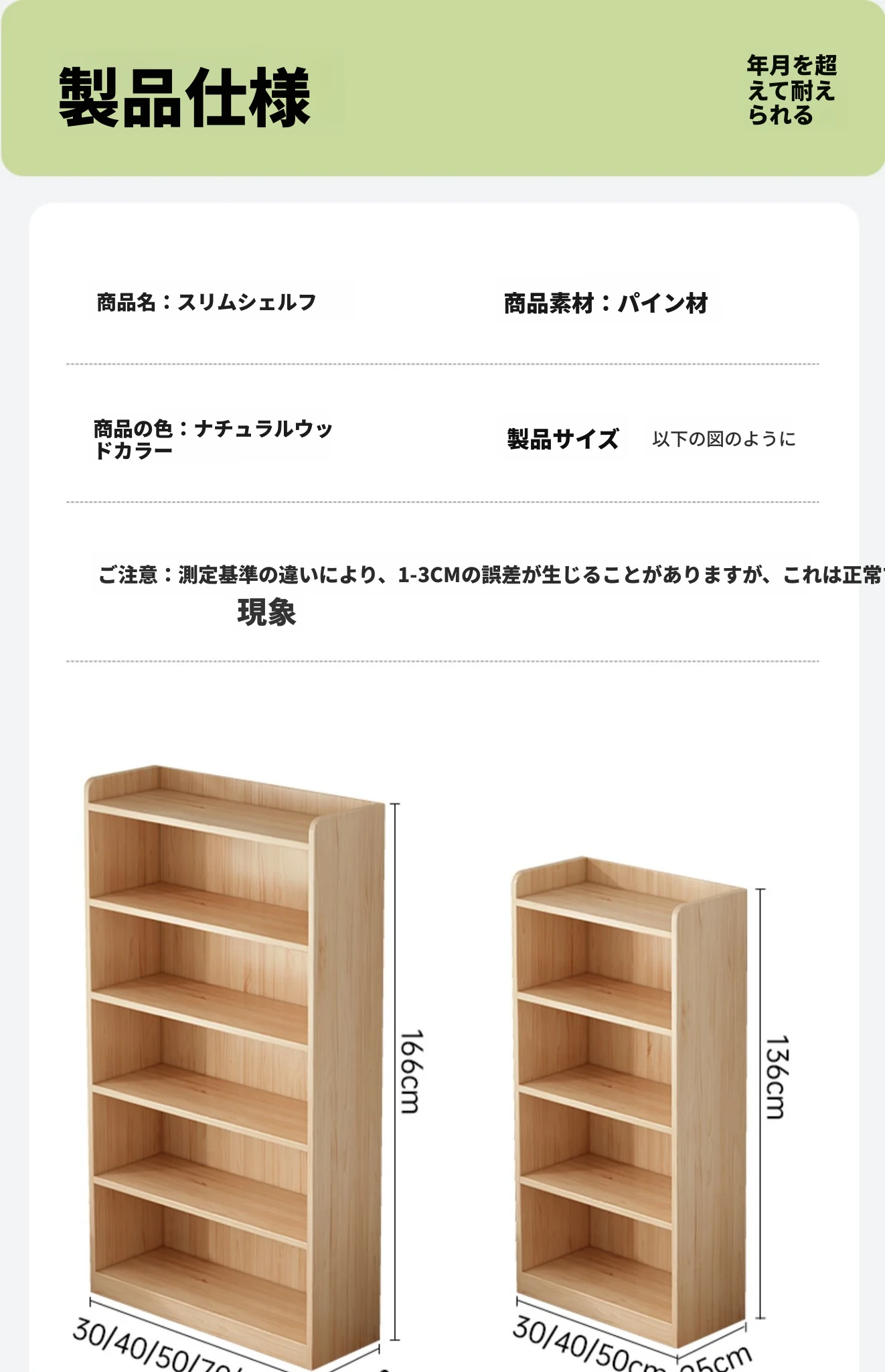 「省スペース!学生向けの実木製書棚 - 家庭用ストレージキャビネット、壁にぴったり寄せられるスリムデザインの簡易収納棚」