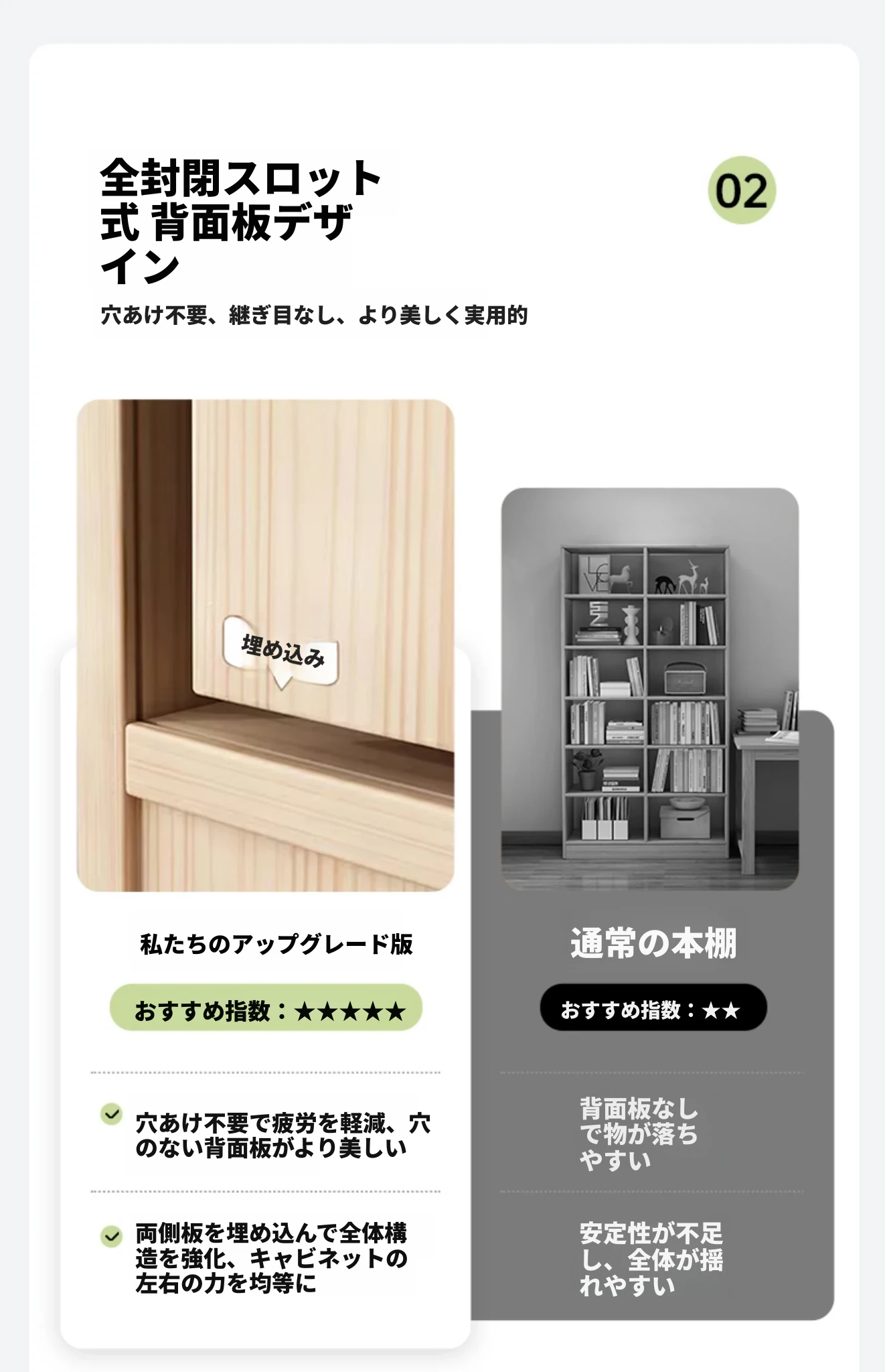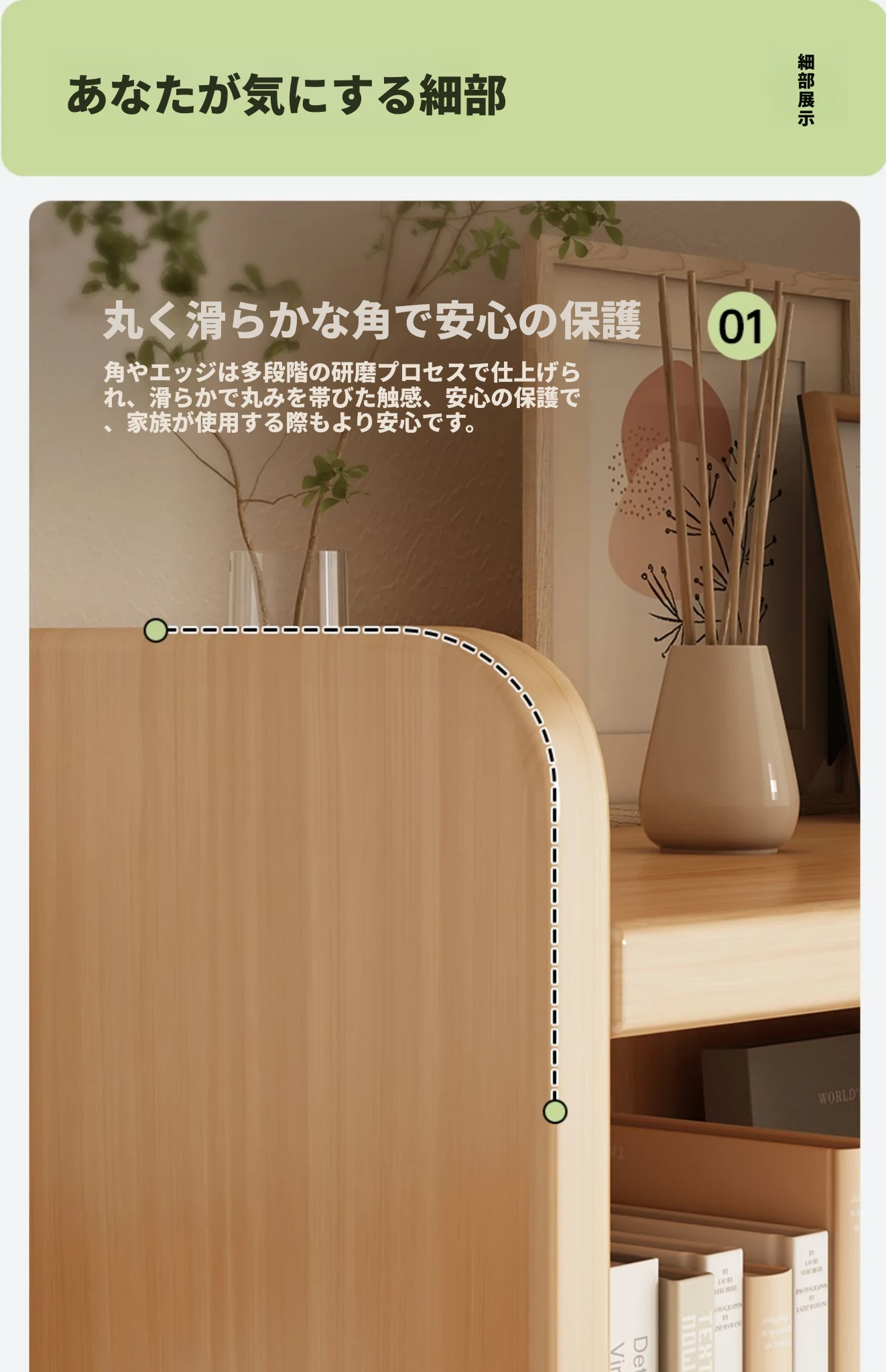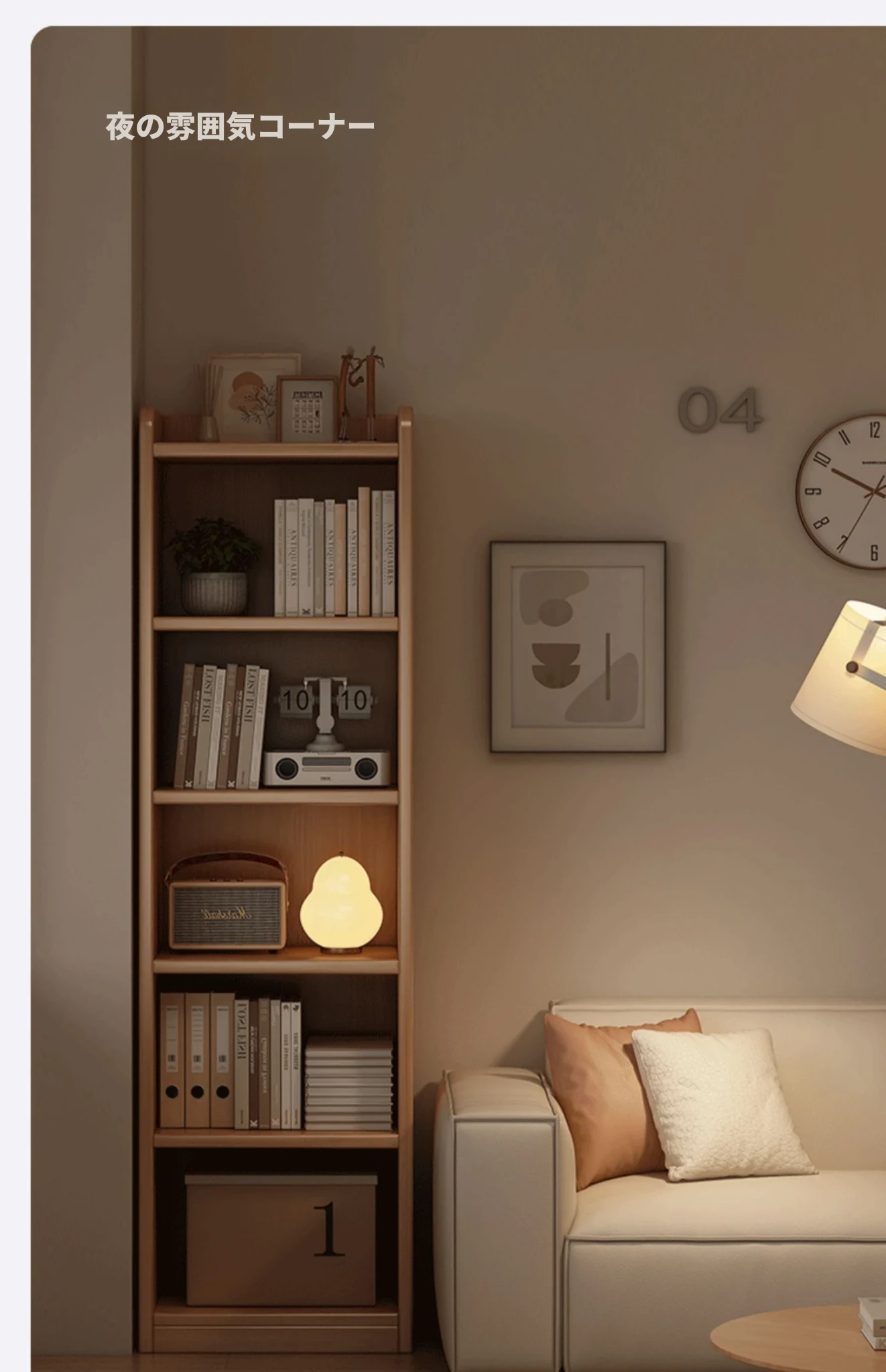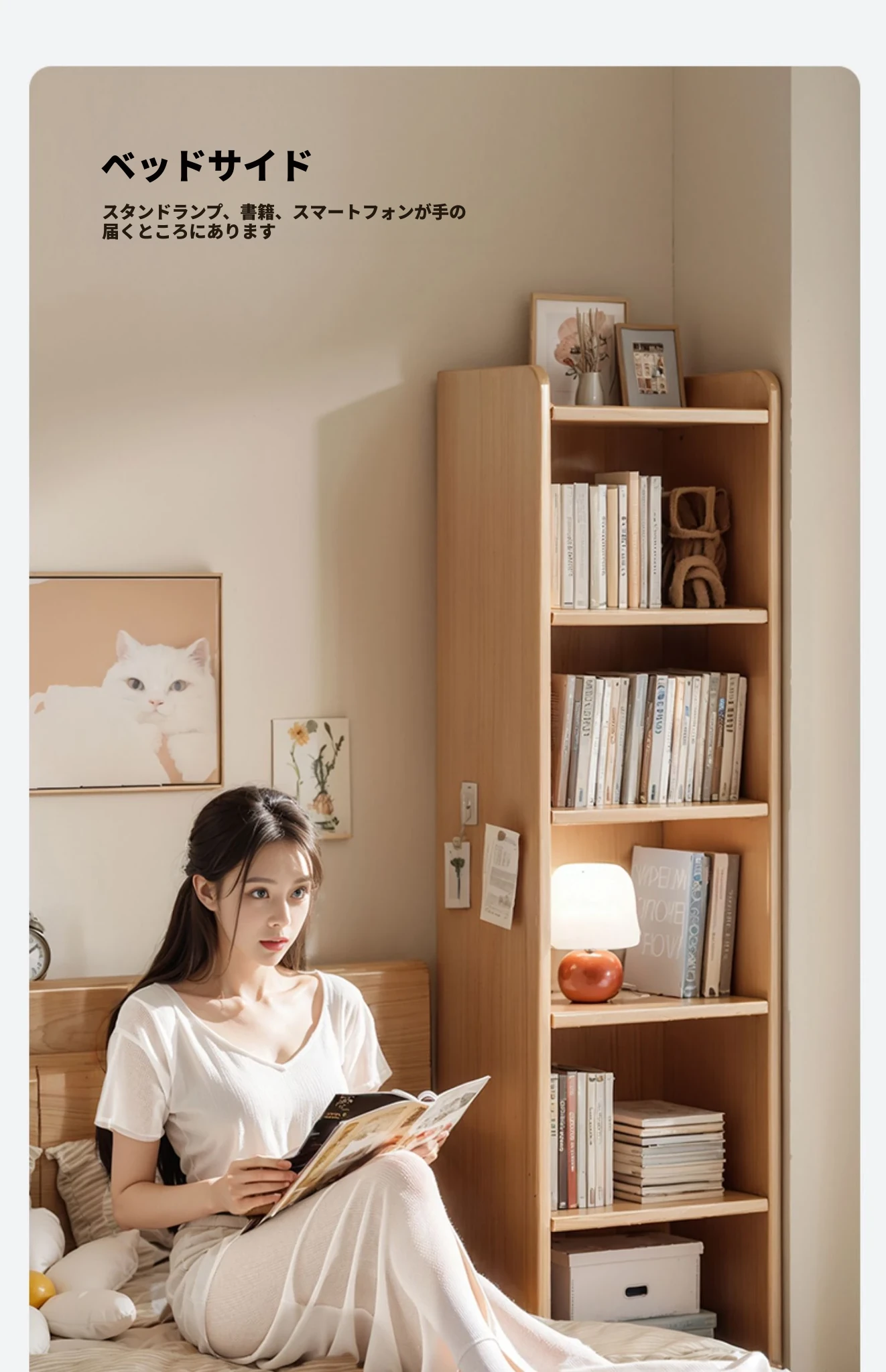 「省スペース!学生向けの実木製書棚 - 家庭用ストレージキャビネット、壁にぴったり寄せられるスリムデザインの簡易収納棚」