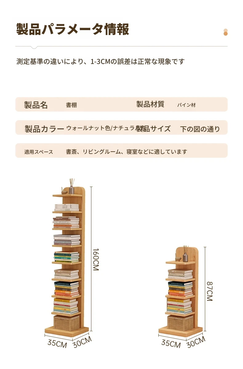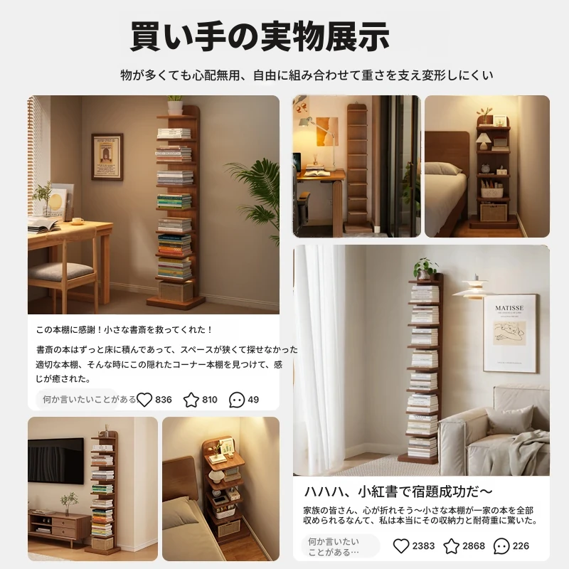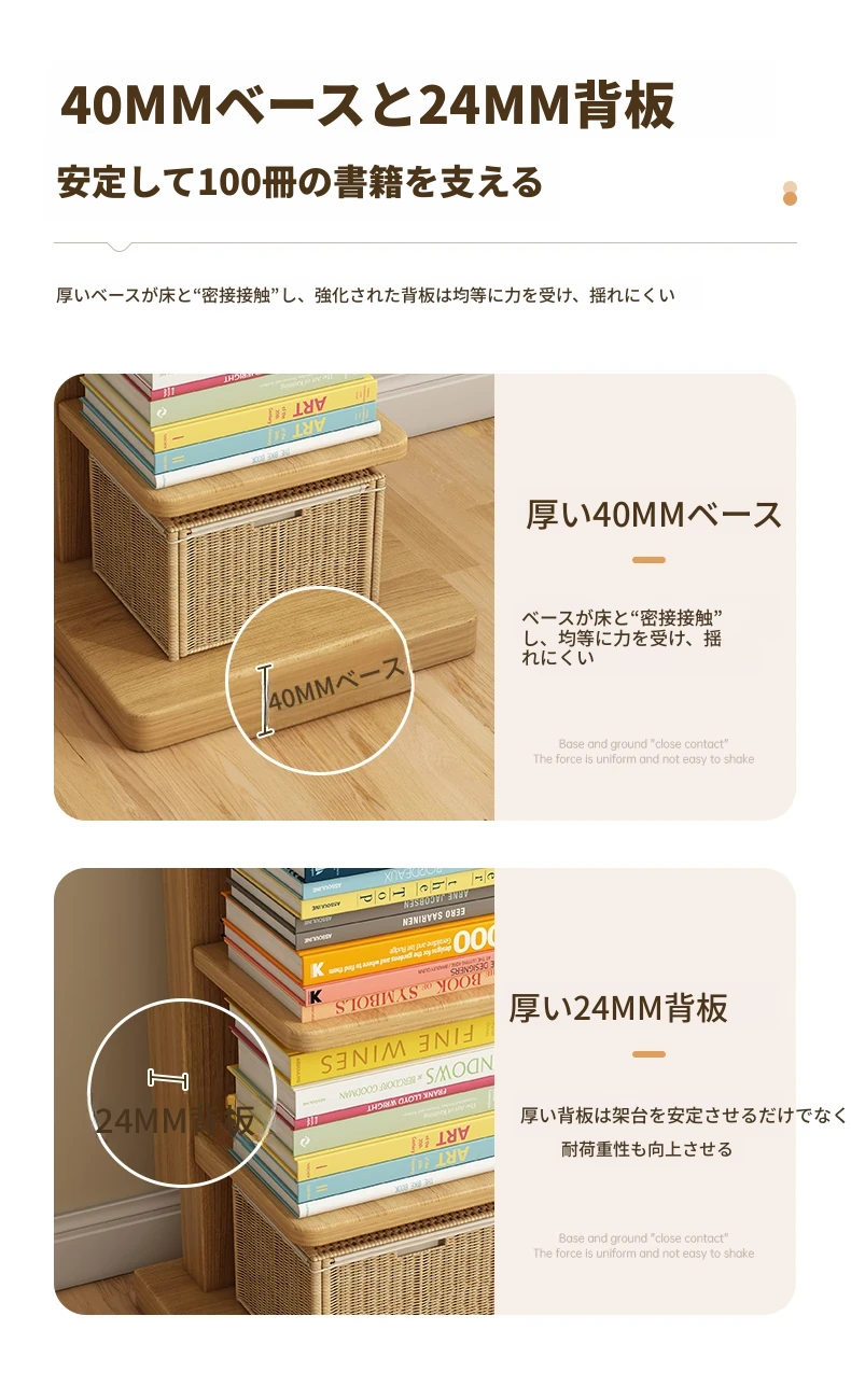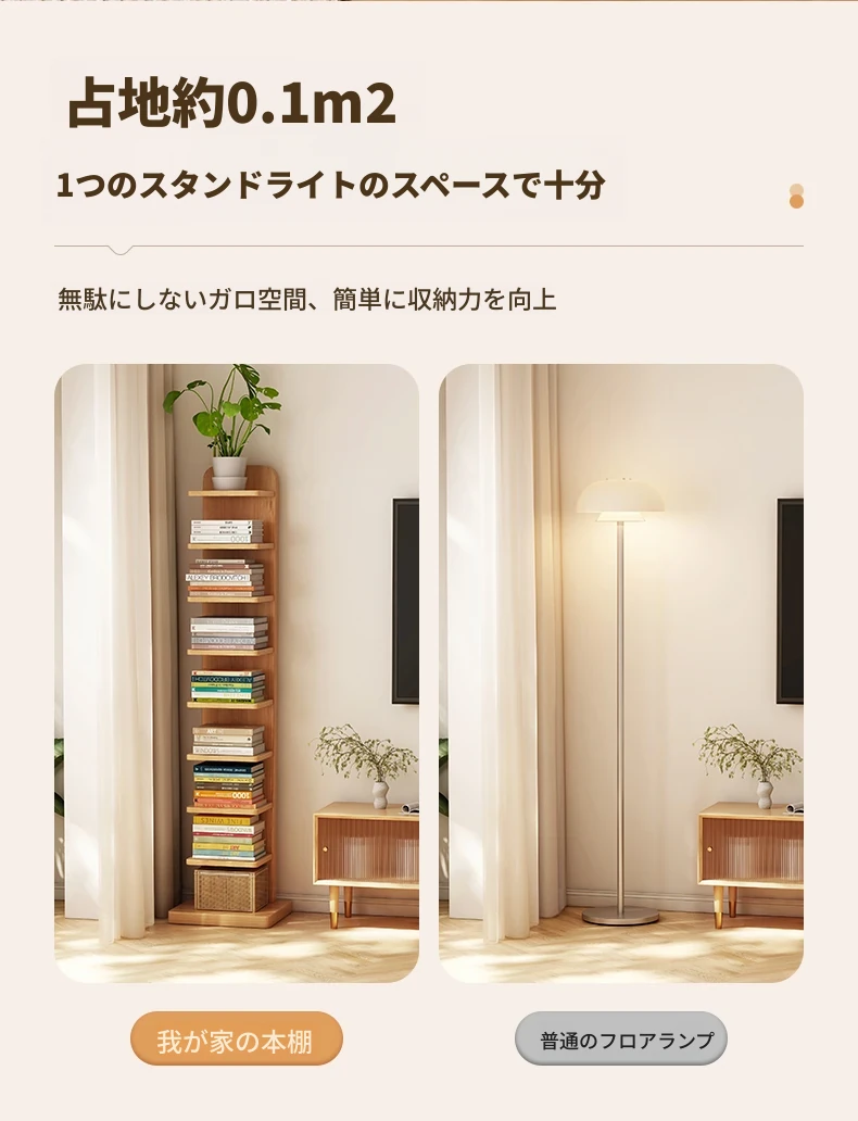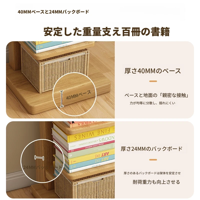実木製の倒れ防止フロアブックシェルフ、スリムなデザインで目立たない収納、リビングや学生部屋に最適なコーナーキャビネット!限られたスペースでもおしゃれに収納できます。