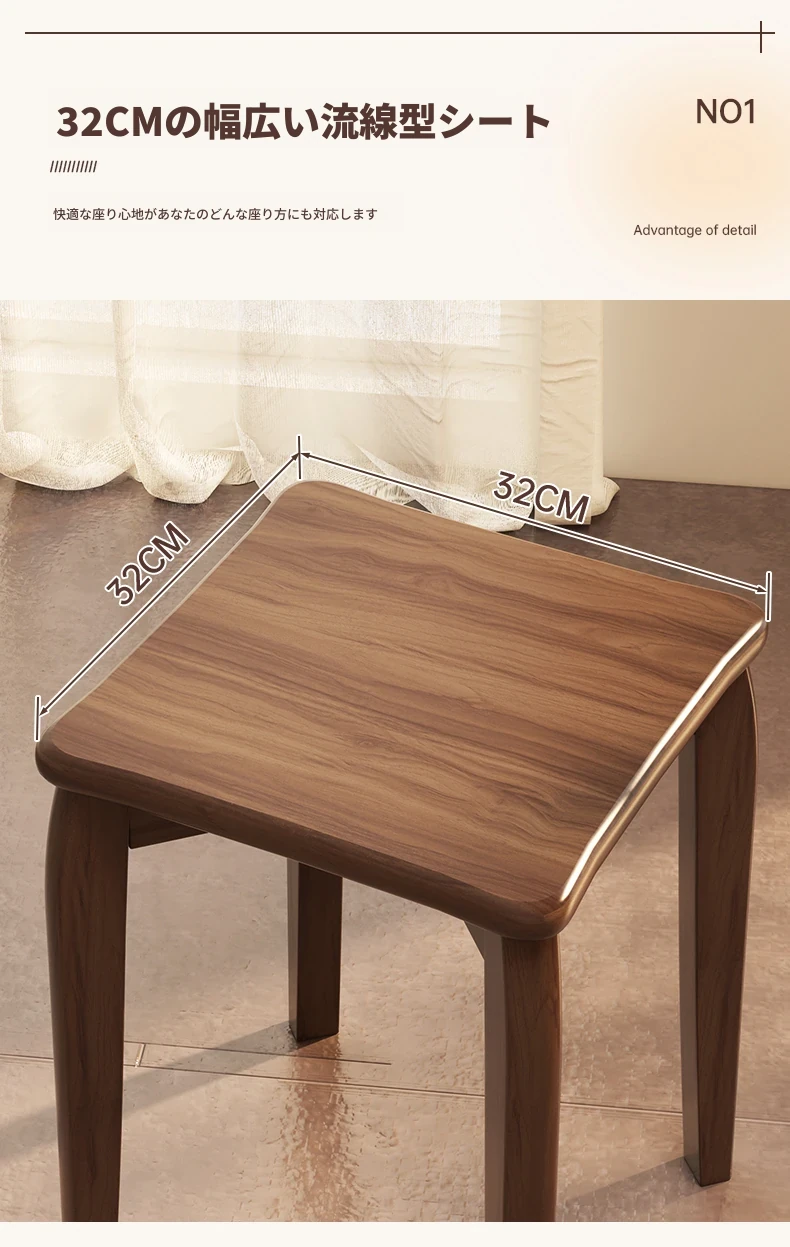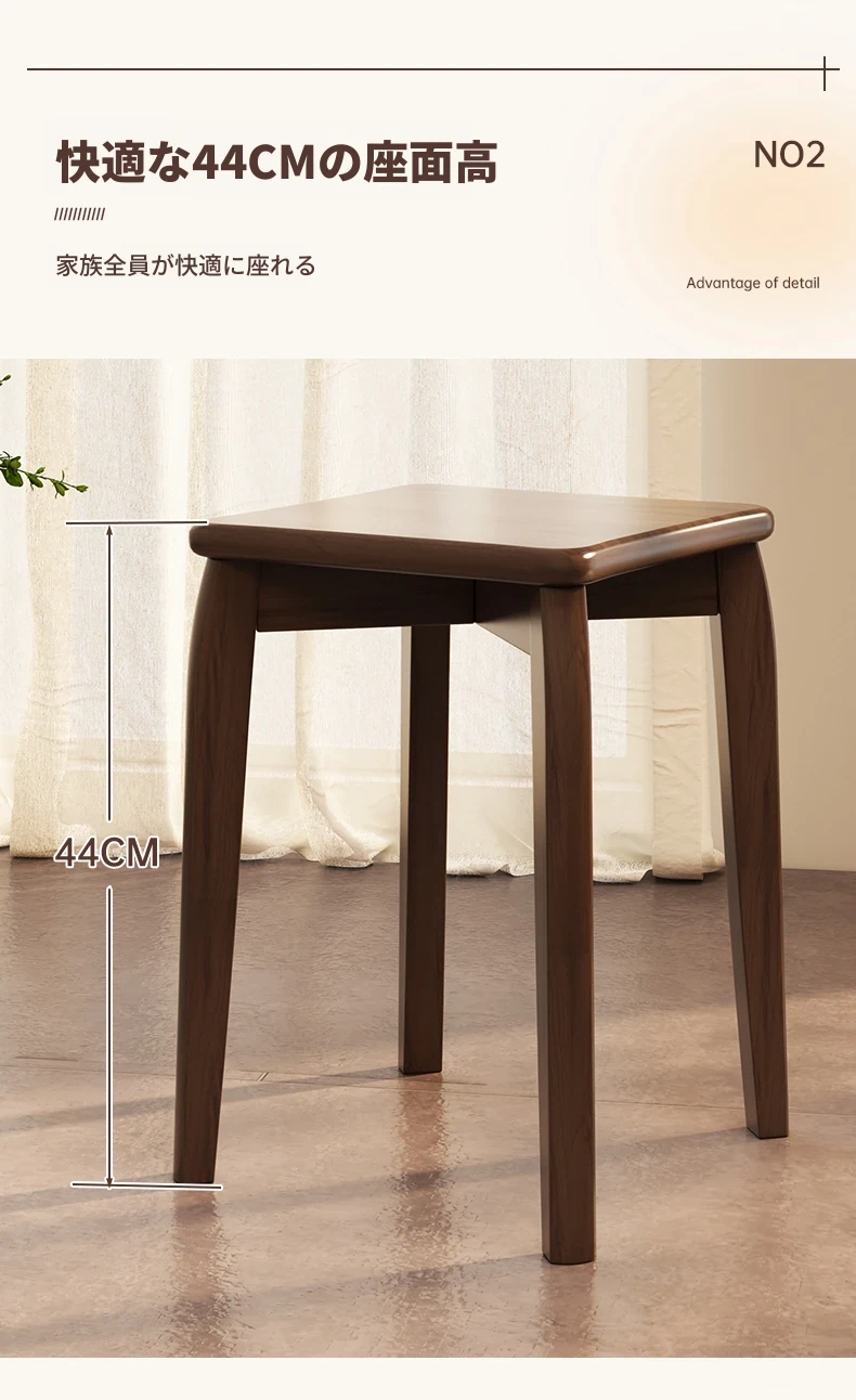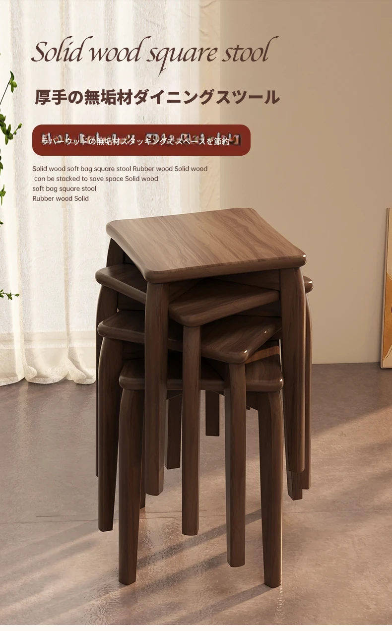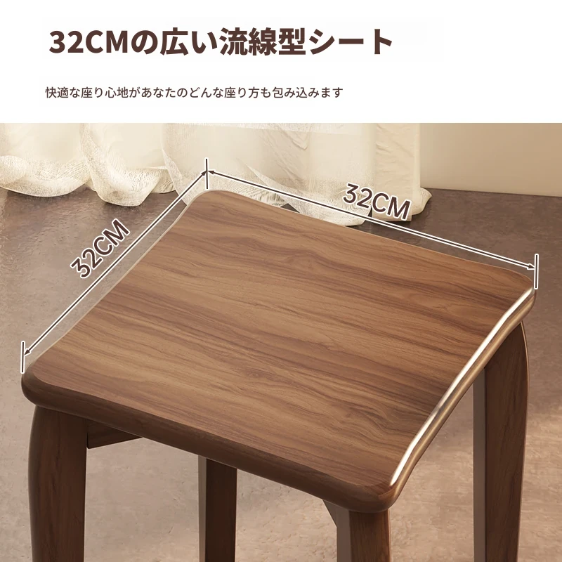 頑丈で耐久性抜群!実木製中式スツール - 家庭用・リビング・ダイニングに最適。待客用やサブスツールにも便利。スタッキング可能で収納も簡単!シンプルなデザインでどんなインテリアにもマッチします。