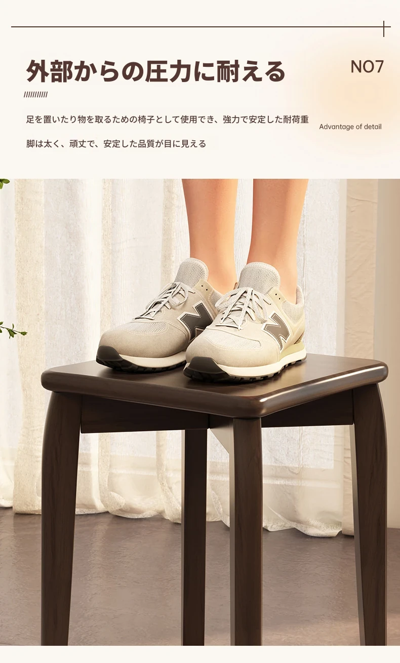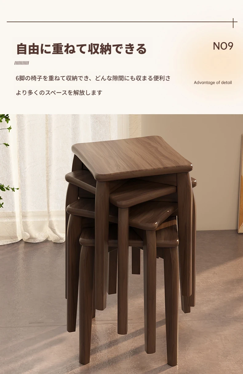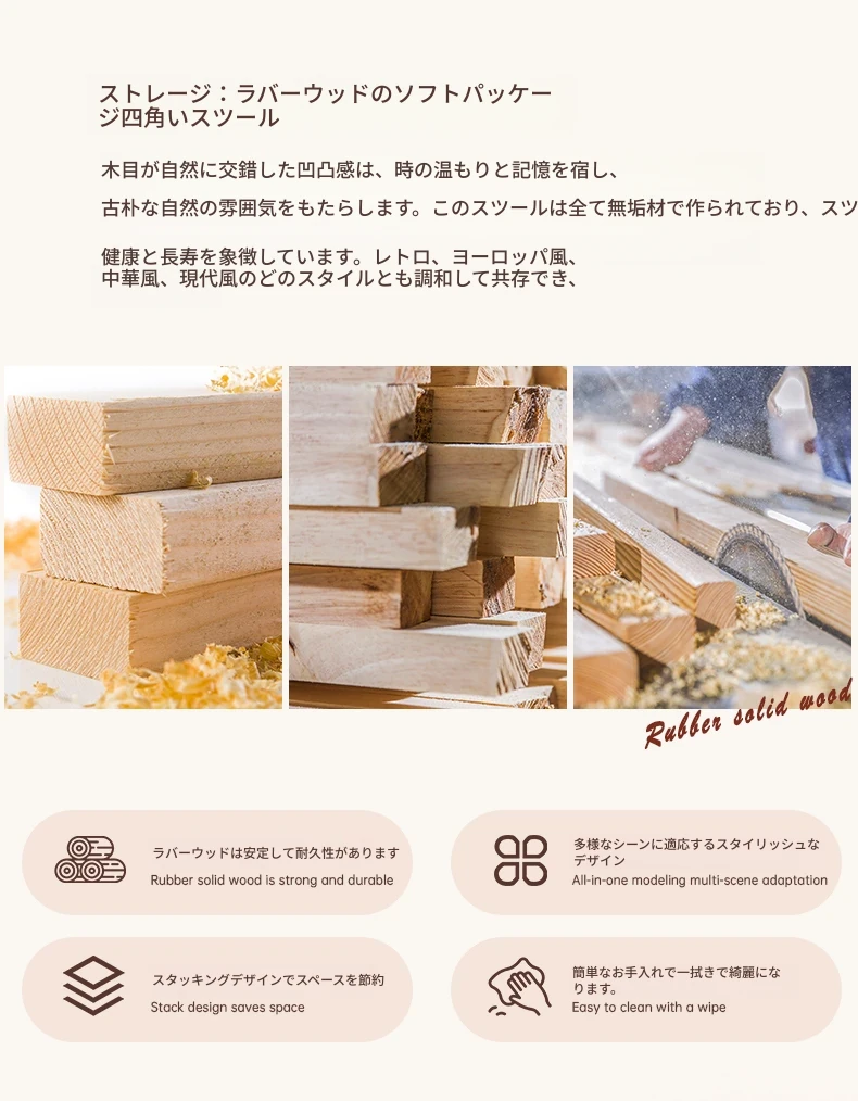 頑丈で耐久性抜群!実木製中式スツール - 家庭用・リビング・ダイニングに最適。待客用やサブスツールにも便利。スタッキング可能で収納も簡単!シンプルなデザインでどんなインテリアにもマッチします。
