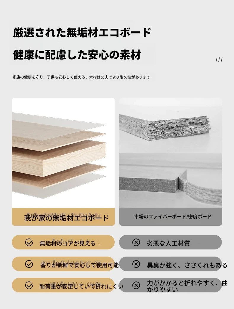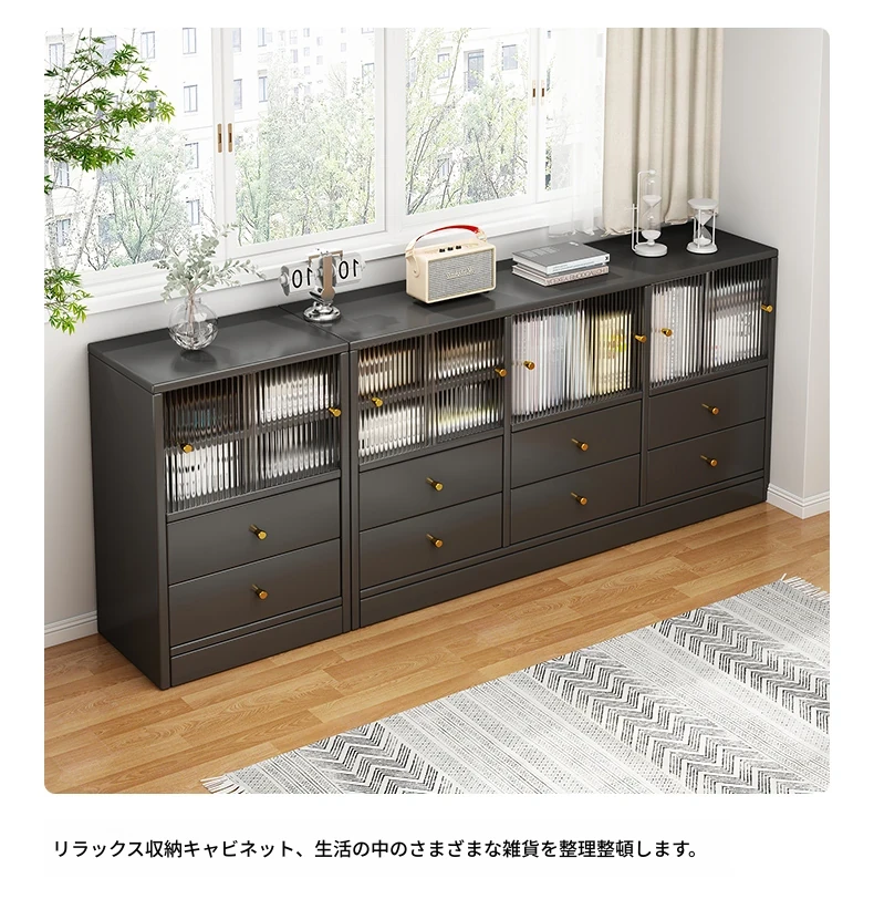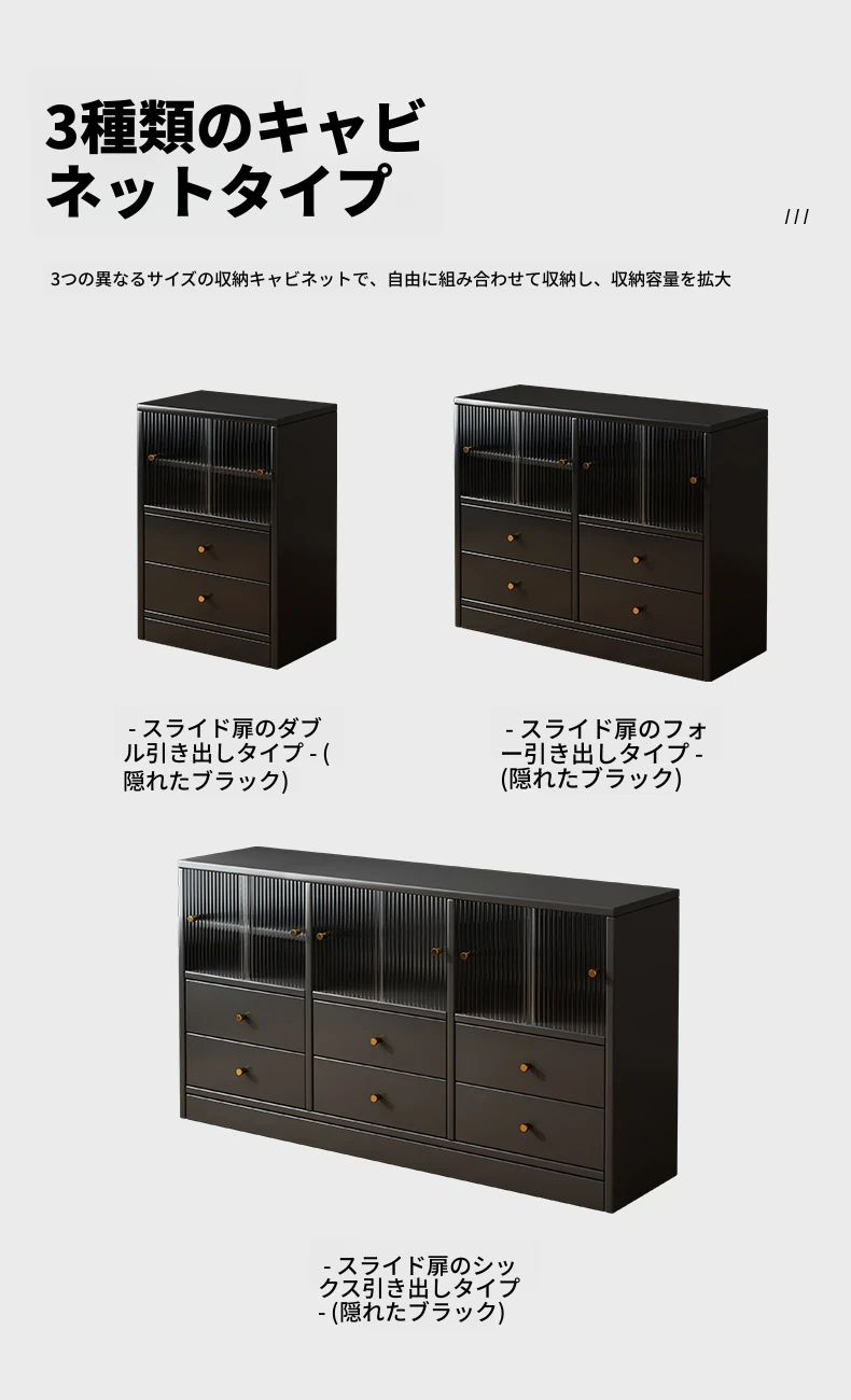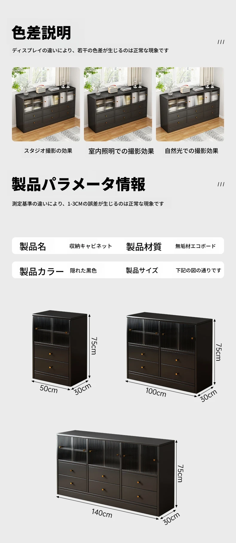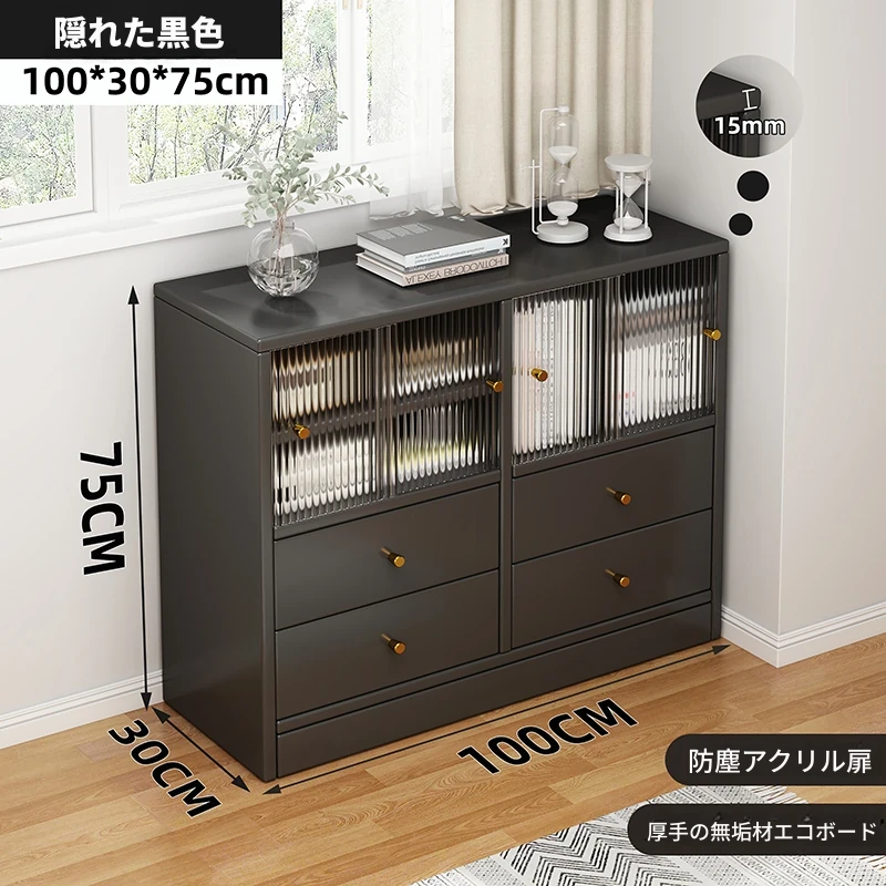 【4引き出し防塵キャビネットドア-15MM厚実木エコボード】隠れたブラック100*30*75CM