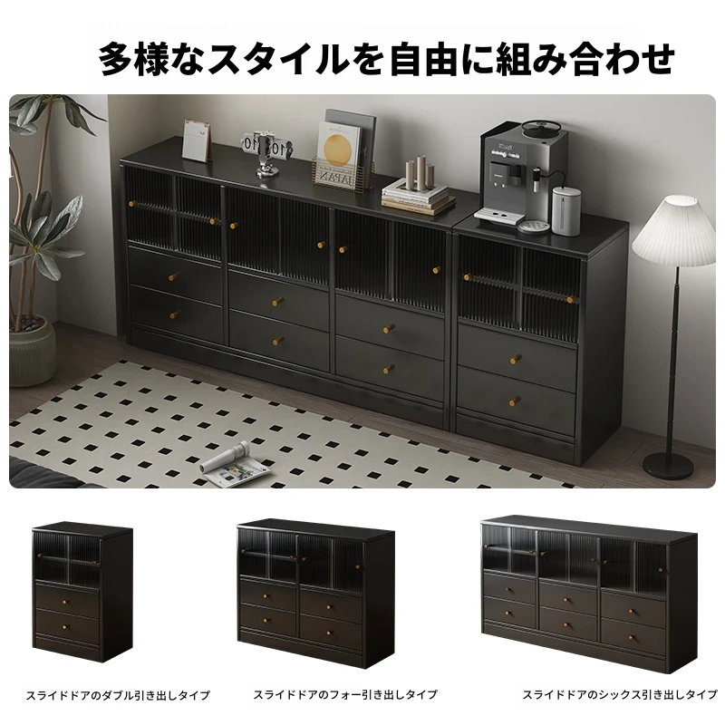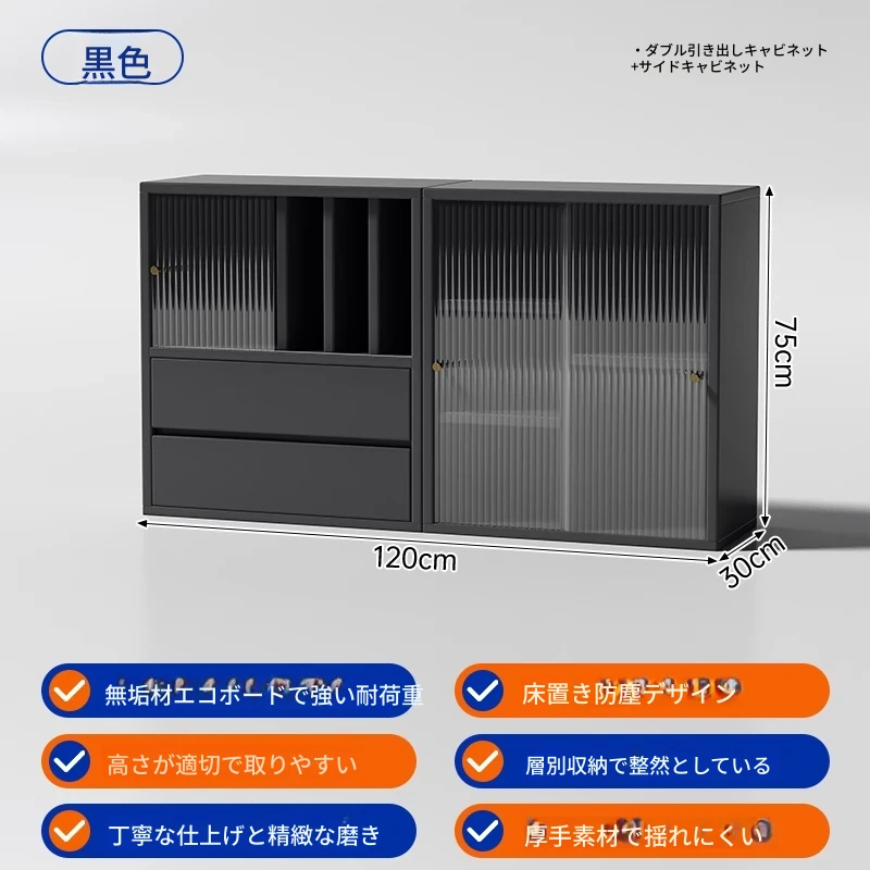 【組み合わせ天然木エコボード-高級ラグジュアリーブラック】ダブル引き出し+サイドキャビネット-120*30*75cm