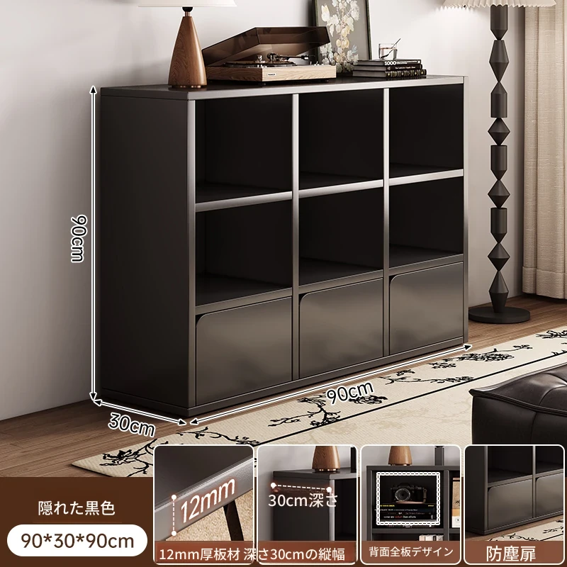 ★経済的厚板★6マスキャビネット★安定した耐荷重★90*30*75cm⭐ラグジュアリーブラック