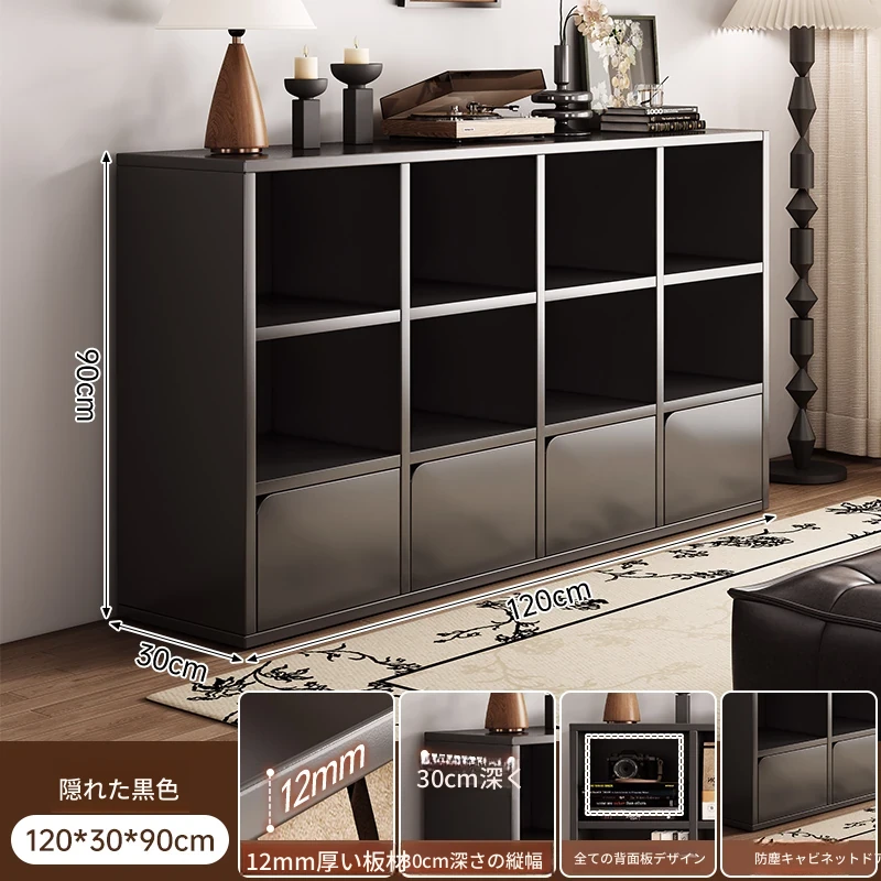 ★経済的厚板★8マスキャビネット★安定した耐荷重★120*30*75cm⭐ラグジュアリーブラック